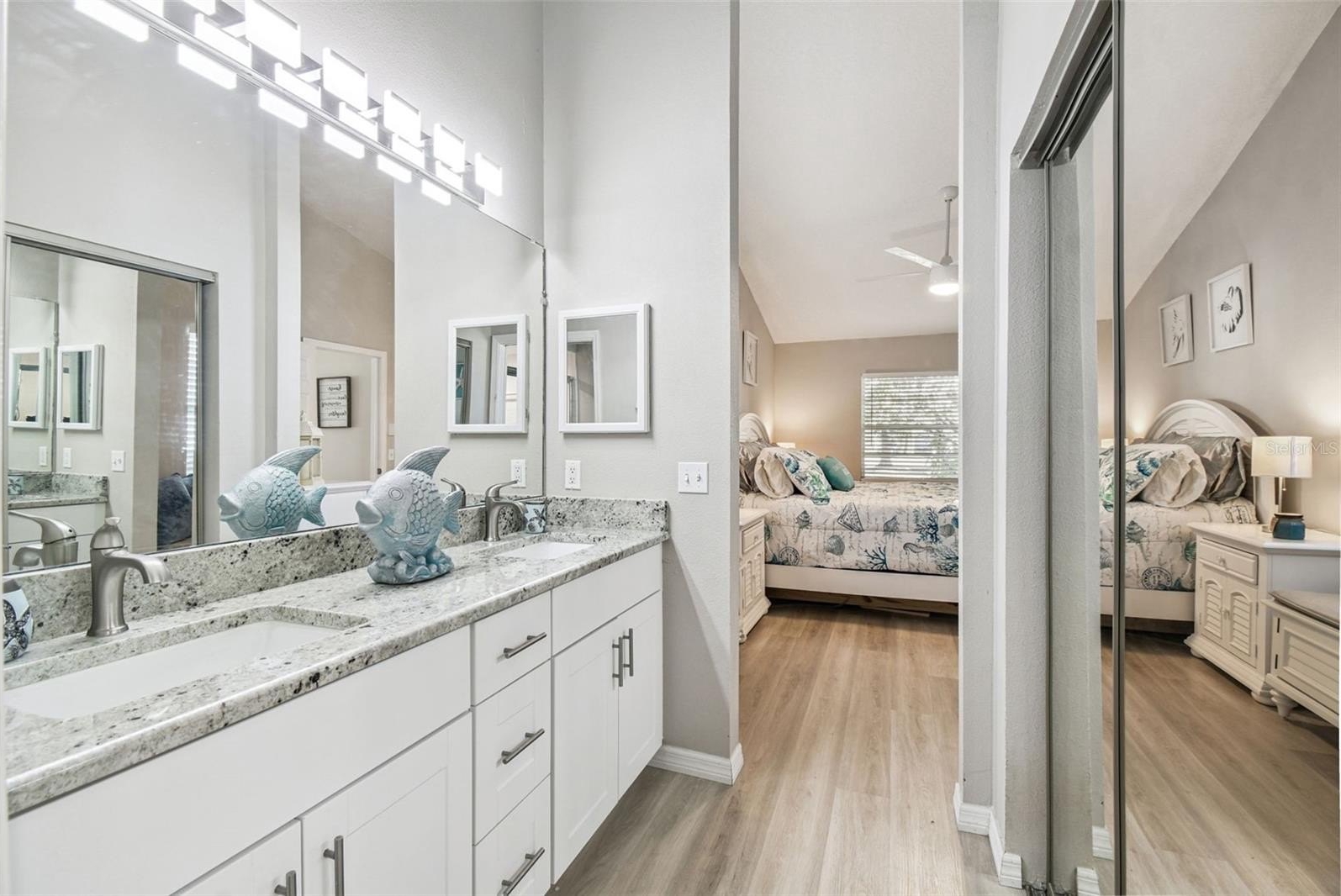 The bathrooms have been updated with granite surfaces and new vanities, and the primary suite includes a double vanity sink. Major updates include a new roof (2022) and fresh exterior paint (2022).