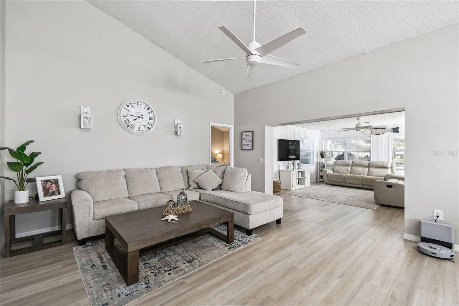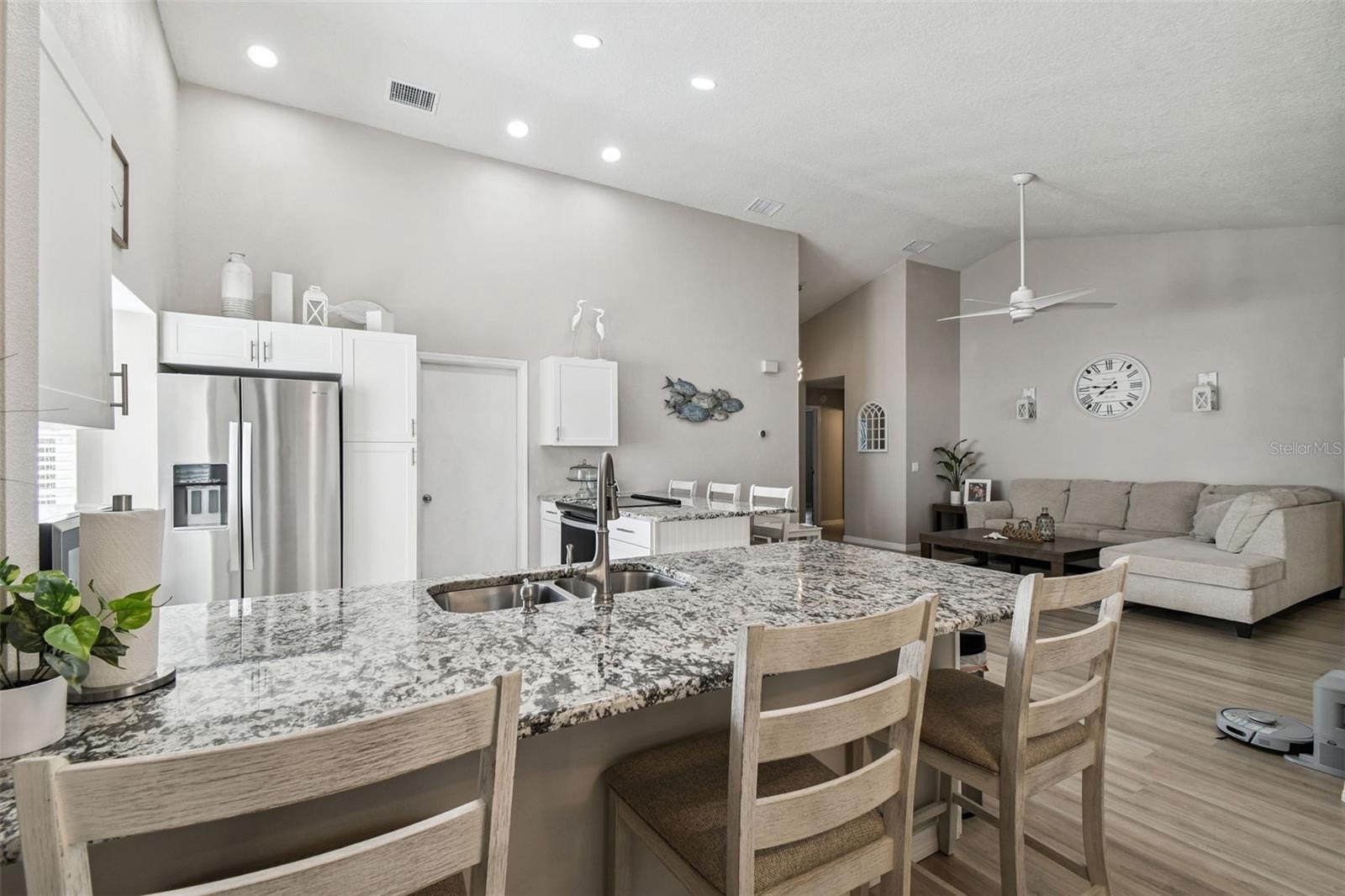 Welcome to this stunning, FULLY-REMODELED home on a quiet cul-de-sac in the Wood View at Meadow Oaks Golf Community! This beautifully updated residence features an open floor plan with high ceilings, recessed lighting, and matching luxury flooring throughout. The split-bedroom layout offers privacy and comfort, while the custom kitchen showcases granite countertops, two large islands, stainless steel appliances, and a charming window seat with built-in storage.