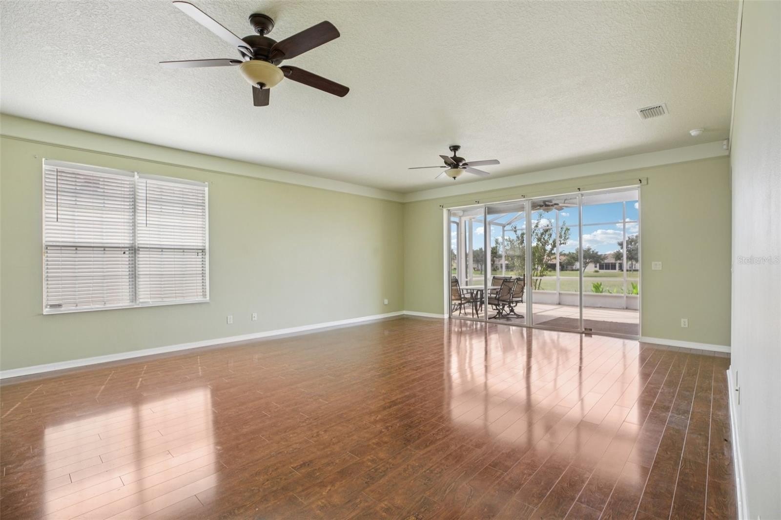 Enjoy peaceful pond views with no rear neighbors from the screened lanai, perfect for relaxing with morning coffee or evening sunsets. Inside, the home offers an easy-care layout with tile and beautiful engineered hardwood flooring, a spacious great room with a pass through bar counter to the kitchen, and a well-designed split floor plan for privacy and functionality.