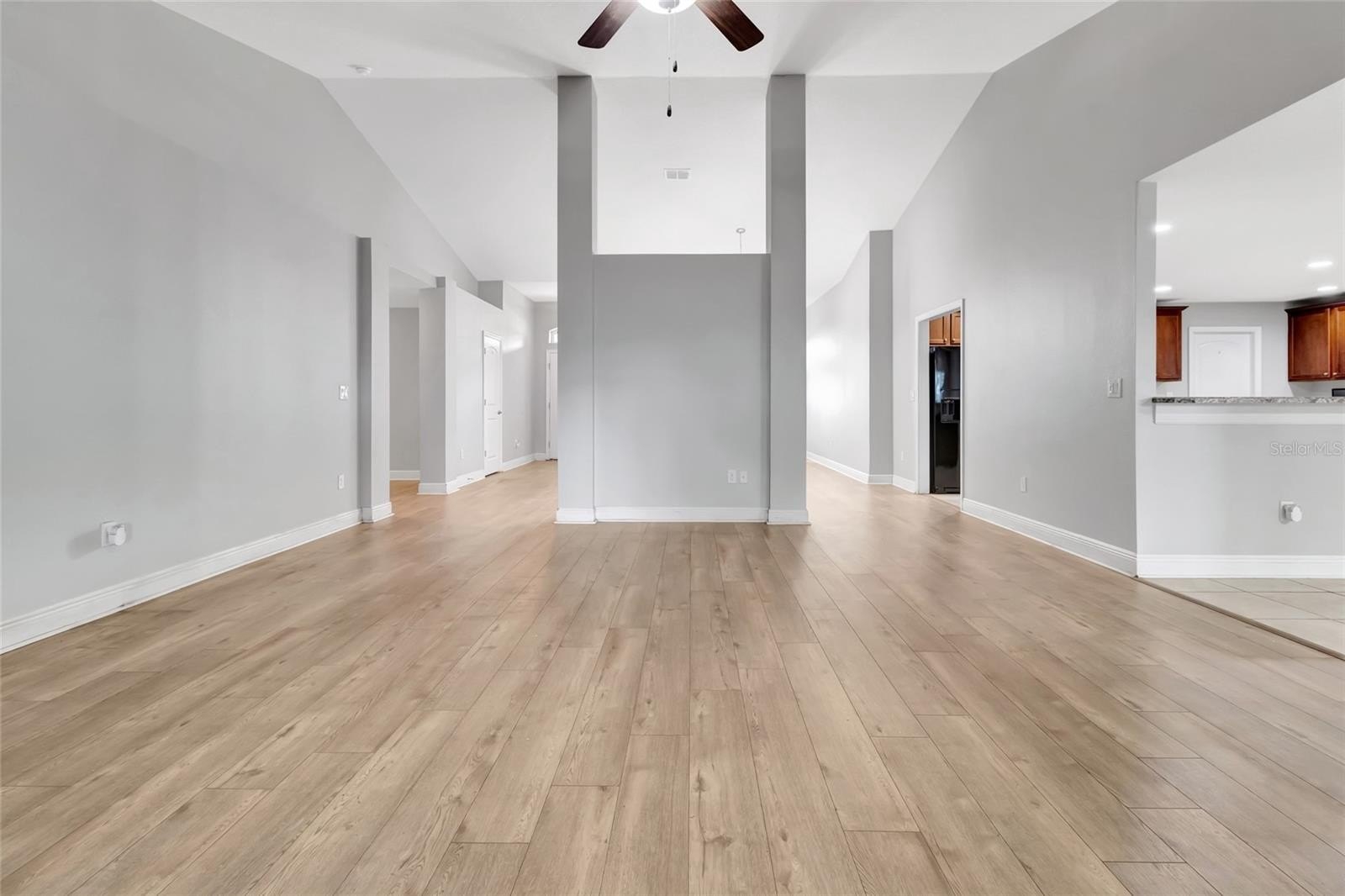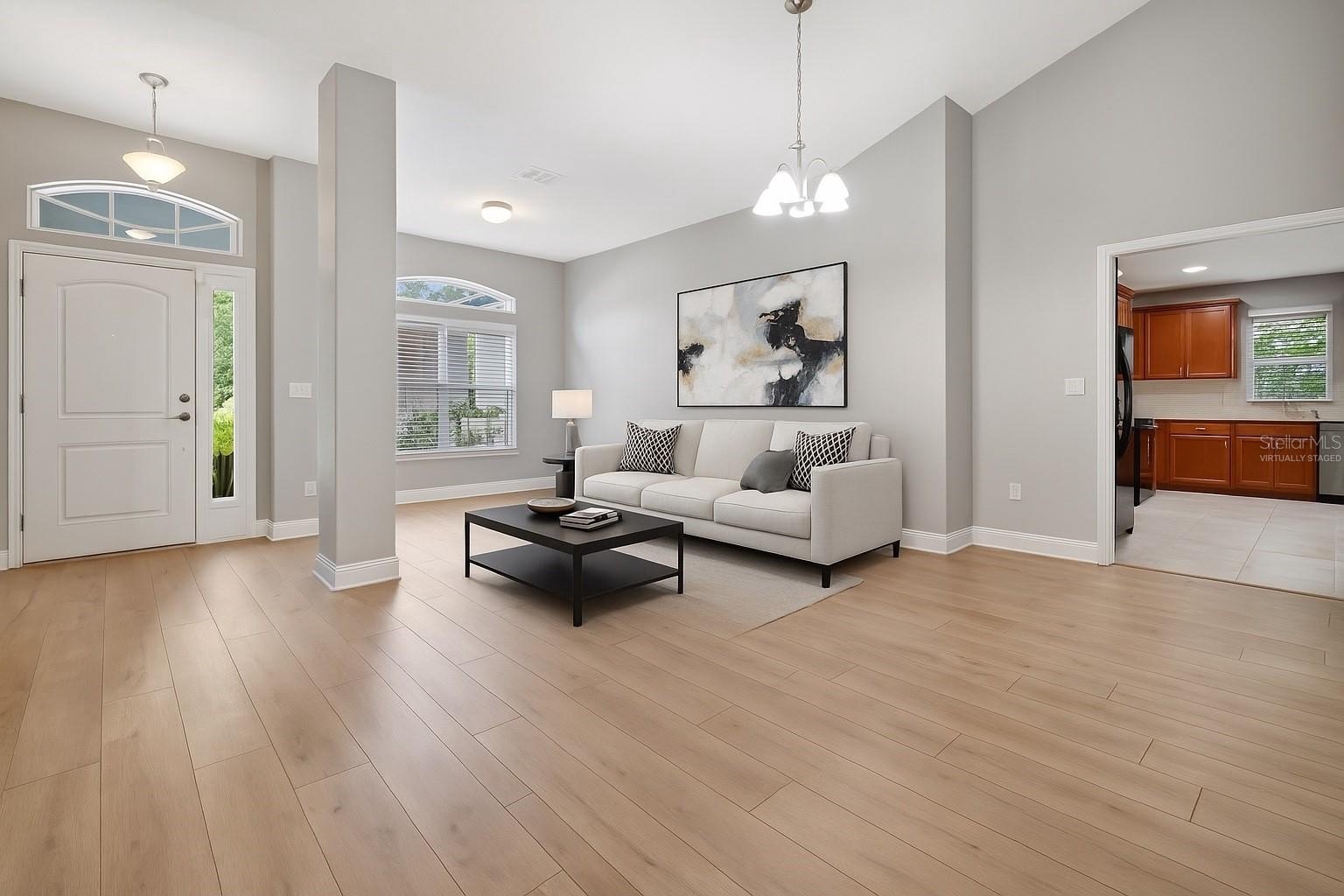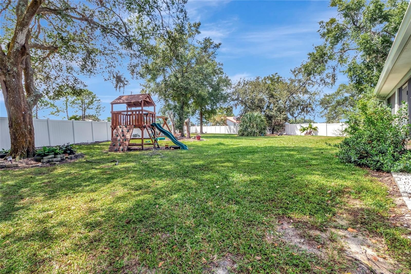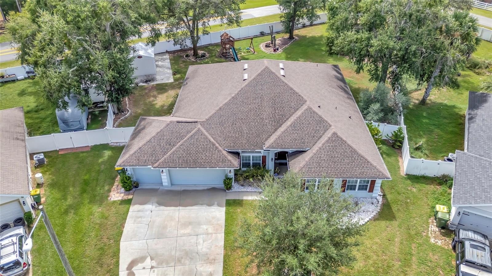 The modern kitchen and spacious great room flow effortlessly to a screened lanai overlooking a fully fenced backyard—perfect for relaxing or hosting family gatherings. With a 3-car garage, new 2024 roof, and almost half an acre of land, this property offers both style and substance.