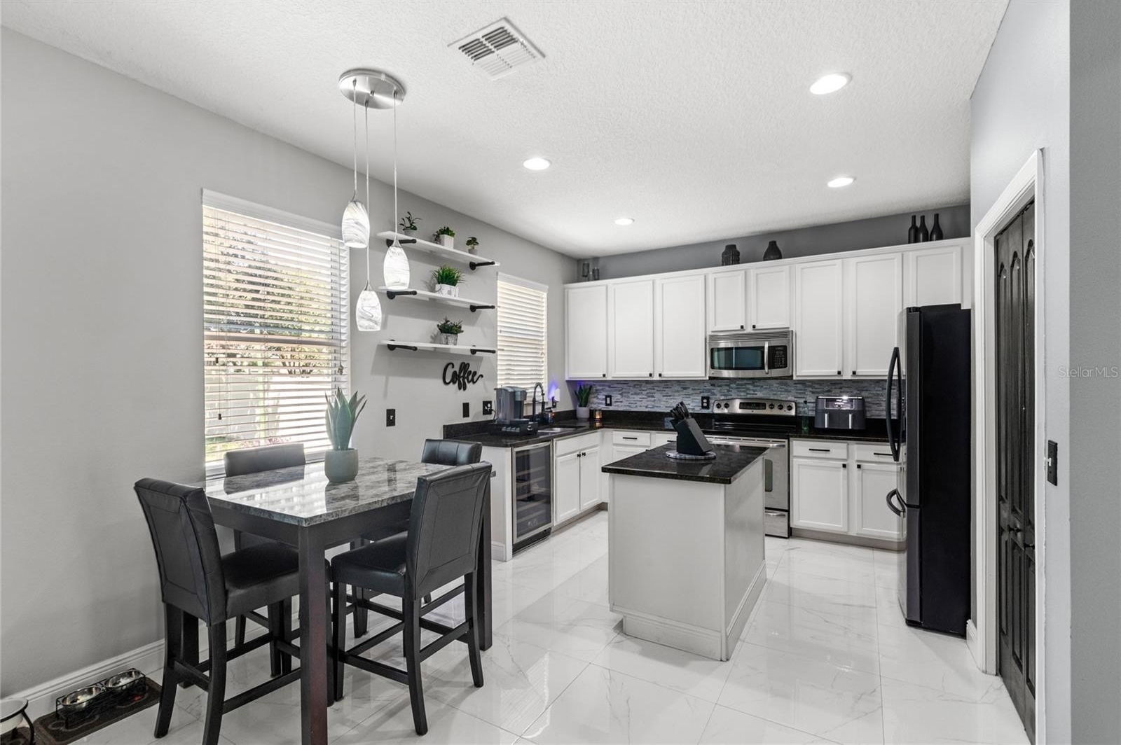 Inside, the layout is flexible with room downstairs for a home office, playroom, dining room, or anything in between. The spacious, fully fenced backyard is perfect for pets, entertaining, or a quiet morning coffee on the screened in patio. Inside, you'll also enjoy shiny marble flooring, updgraded kitchen appliances and stone coutnertops, double sinks in the primary bath, a spa tub, and a walk-in shower.