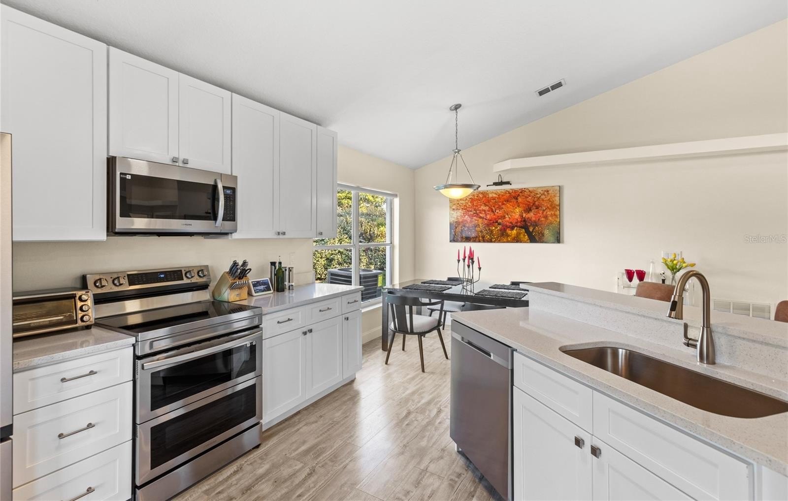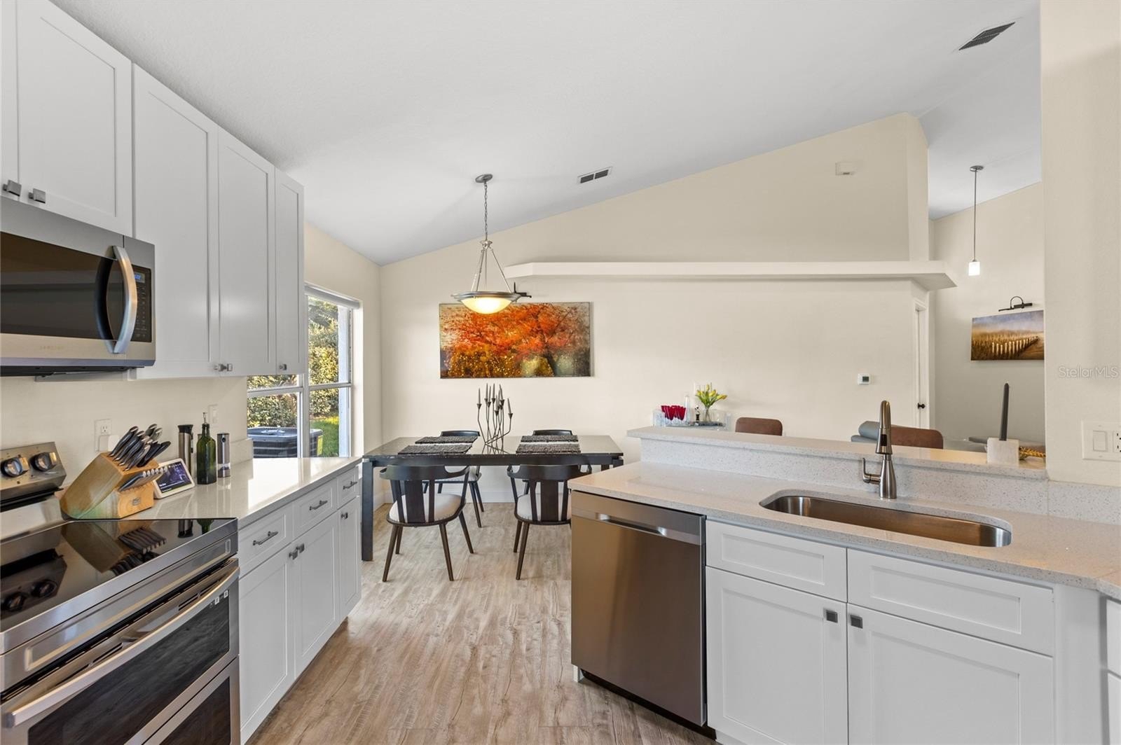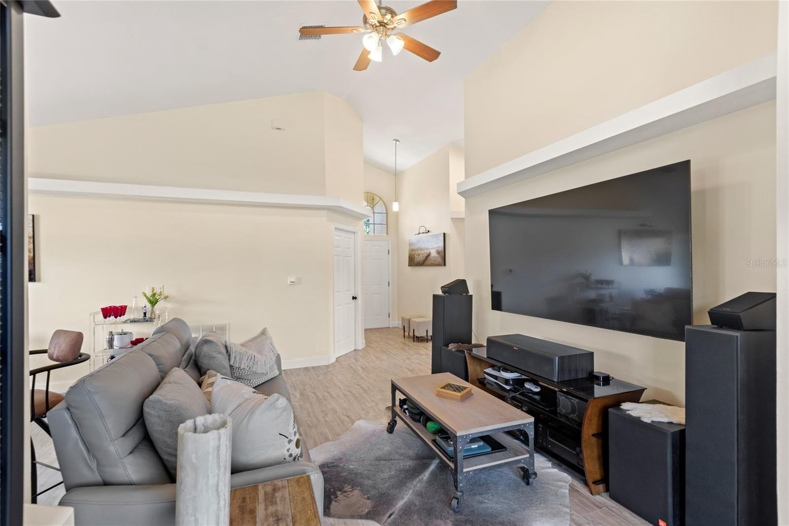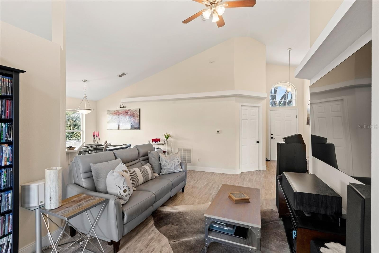 Come see your private lake house oasis in the heart of growing Clermont! This stunning 3-bedroom, 2-bath home sits on a spacious 0.84-acre lot with private lake access—perfect for building your own dock and embracing peaceful waterfront living. Step inside to soaring vaulted ceilings, an abundance of natural light, and a long list of thoughtful upgrades including new laminate flooring (no carpet), all-new Samsung appliances, custom closet built-ins, fresh interior paint, and more! Enjoy your morning coffee or take in golden-hour views from the brand-new screened-in back porch, perfectly positioned to soak up the serenity of the lake. ROOF (2022) and HVAC (2022). This home has a style that effortlessly blends comfort and serenity with modern updates, this home checks every box.