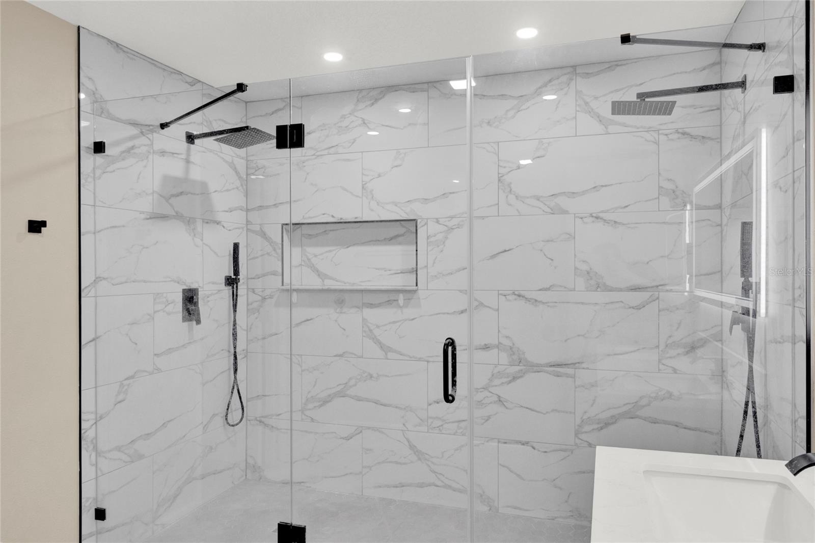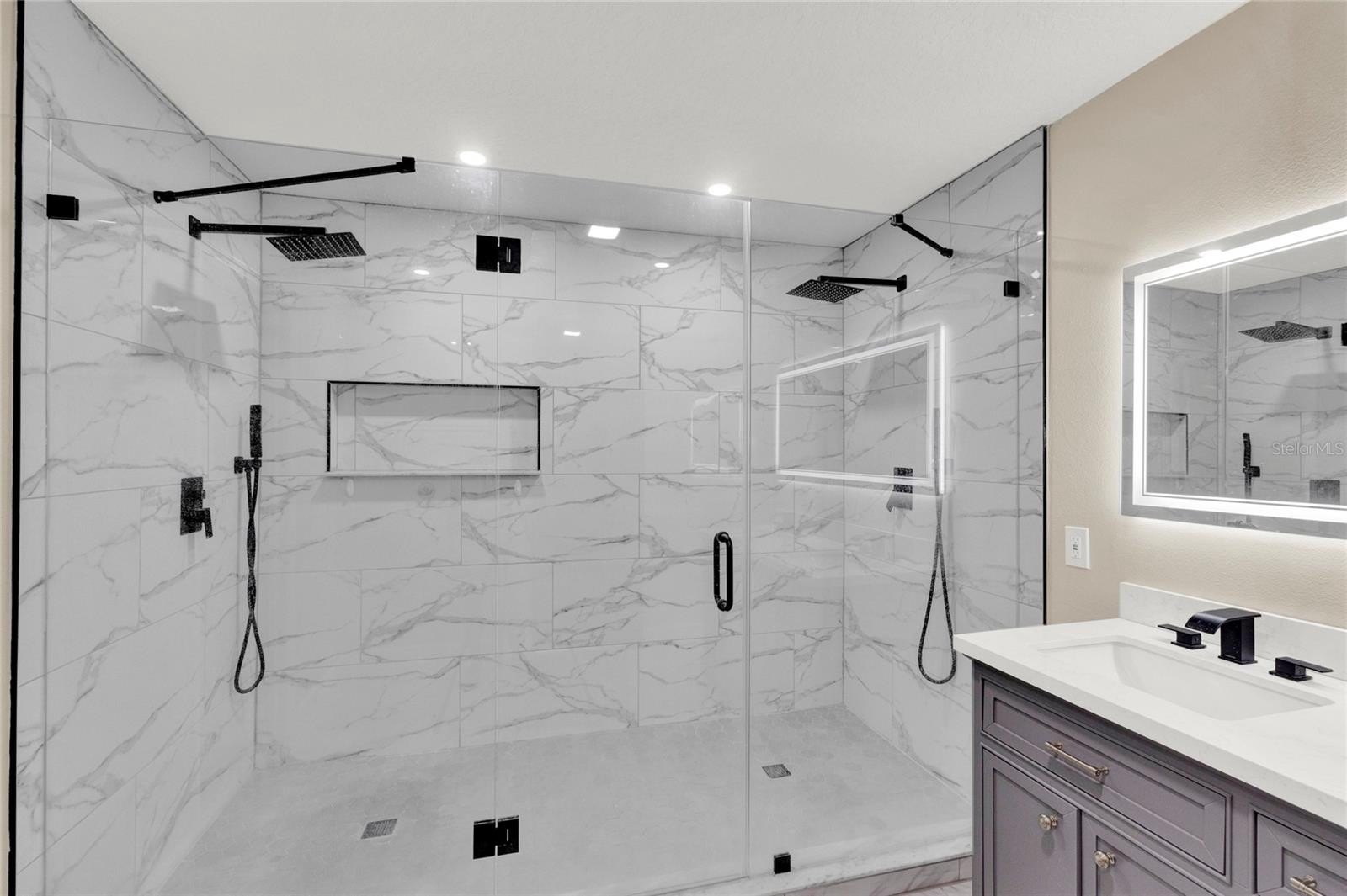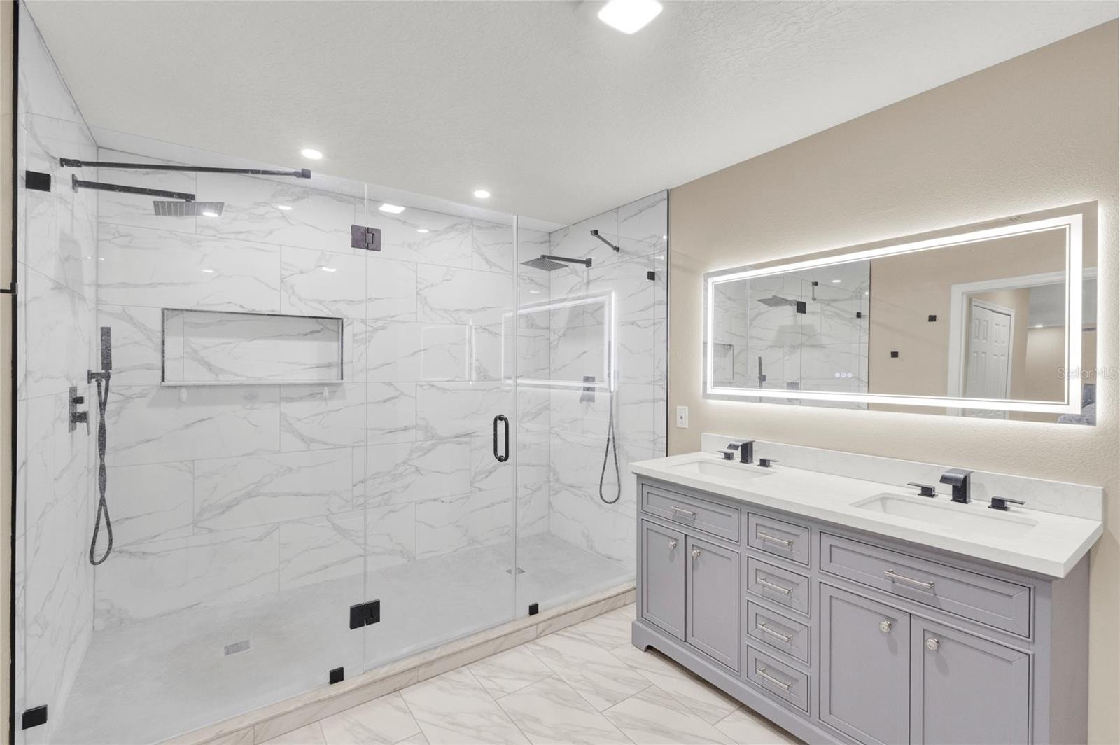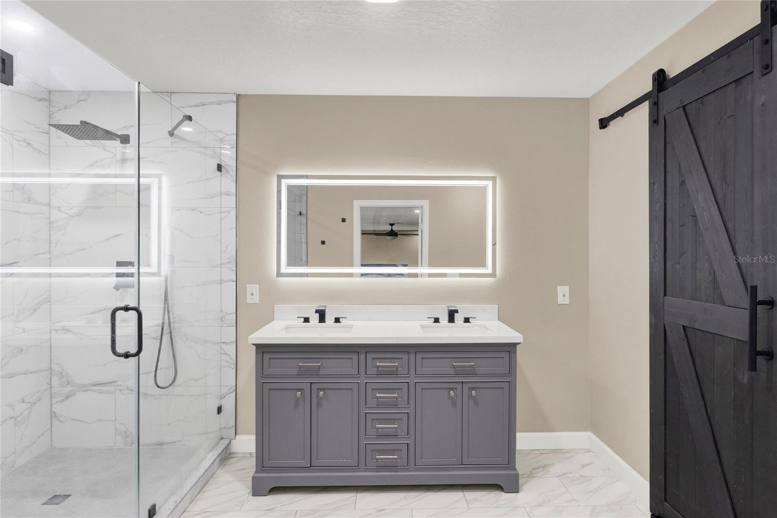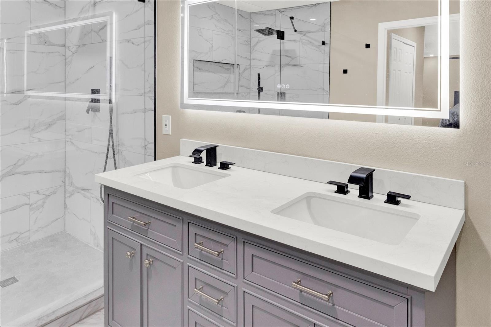 -Luxurious Master Suite: Upstairs master bedroom boasts a beautifully renovated oversized shower and upgraded flooring throughout the second level.
