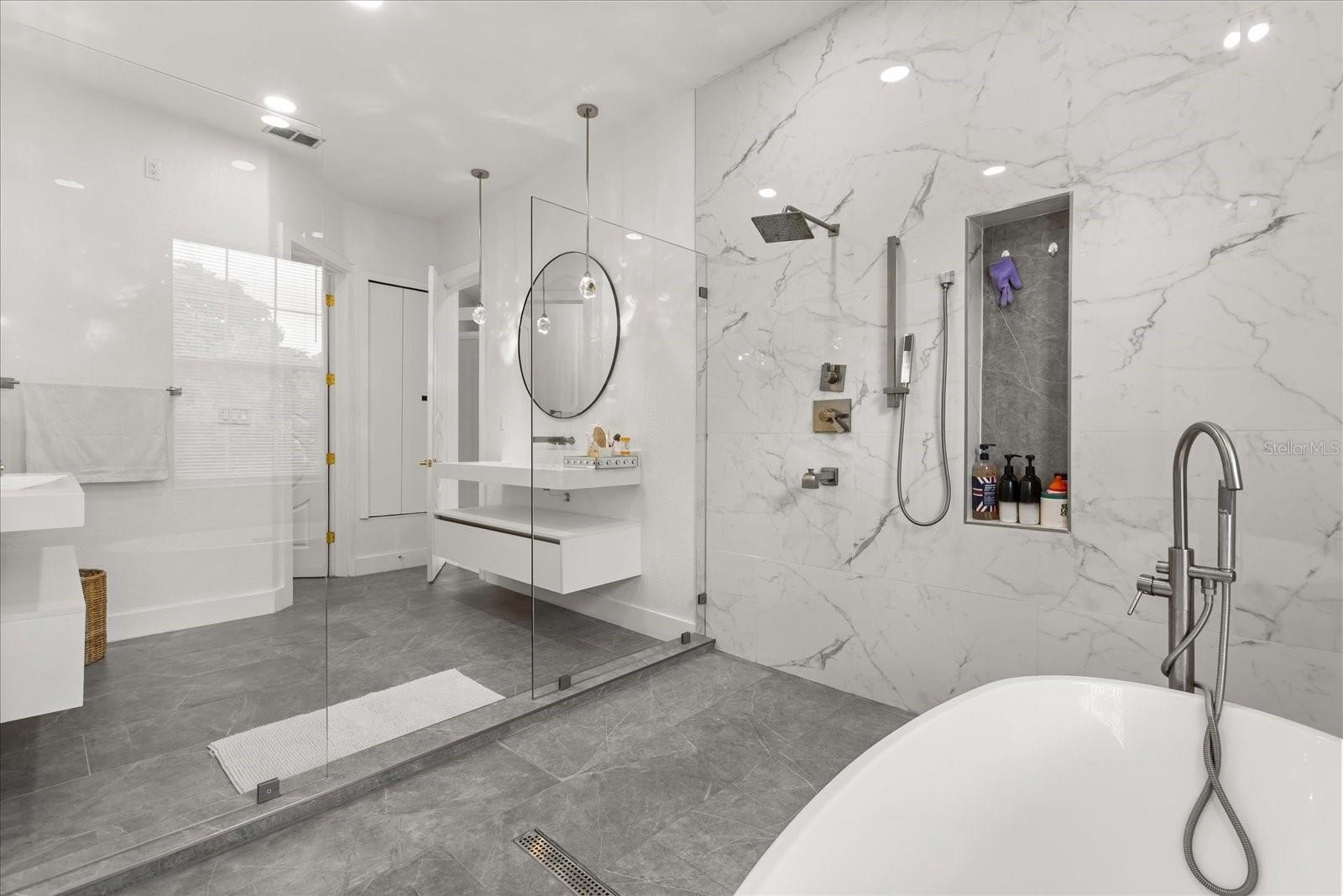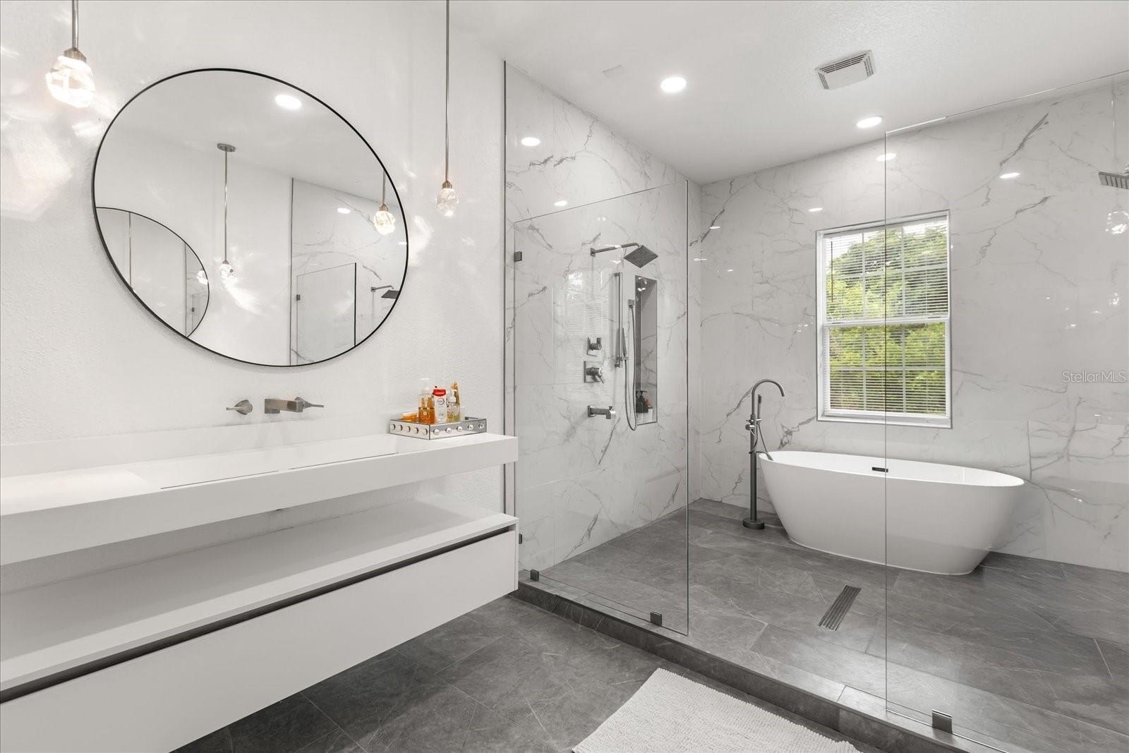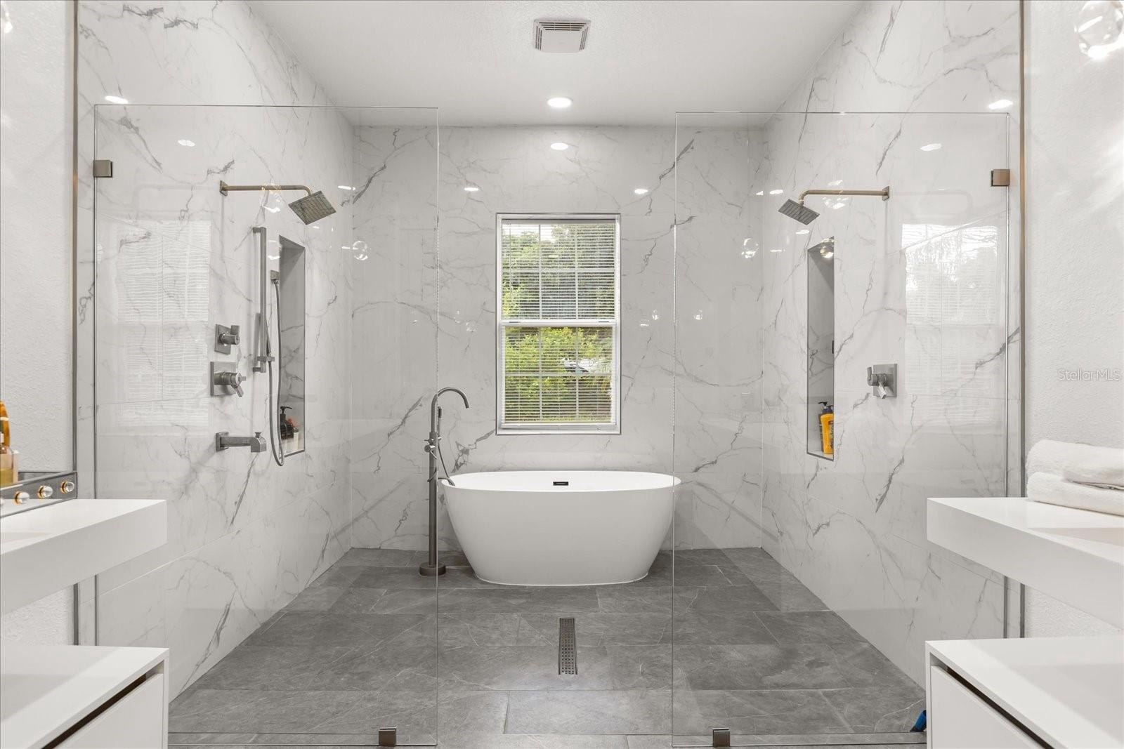 The oversized primary suite feels like a retreat with its spa-inspired bath, oversized walk-in closet, and serene views of the pool and canal. Four additional bedrooms provide comfort for family or guests.
