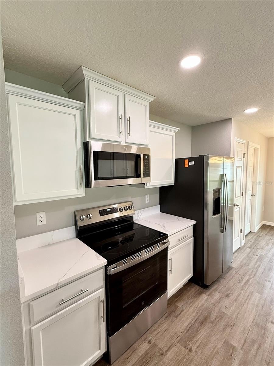 Welcome to this stunning 3-bedroom, 2-bath home located in the desirable Sherman Hills golf course community in Brooksville, Florida. This residence offers a perfect blend of modern updates, thoughtful design, and serene surroundings. Step inside to discover an open floor plan enhanced by luxury vinyl flooring throughout all living spaces and bedrooms, providing a seamless look that’s both stylish and easy to maintain. Fresh interior paint and newly installed quartz countertops in the kitchen and both bathrooms add a crisp, contemporary feel. The spacious kitchen centers the home and features brand-new stainless steel appliances, quartz counters, a breakfast bar, and an eat-in dining area. It overlooks the generously sized living room, where sliding glass doors open to a covered paver patio with peaceful views of the golf course, perfect for relaxing or entertaining. A standout feature of this home is the large formal dining room, enhanced by a sliding barn door to create a flexible space that can easily be transformed into a home office, bonus room, playroom, or whatever suits your lifestyle. The home’s split floor plan offers privacy, with two bedrooms located on one side and the primary suite on the other. The primary bathroom exudes a spa-like ambiance with marble-design ceramic tile flooring, an oversized quartz vanity, and updated fixtures and lighting. The guest bathroom mirrors these elegant finishes and includes a shower/tub combo. Throughout the home, you’ll find new modern lighting and ceiling fans, adding both style and comfort to every room. An interior laundry room provides convenient access to the garage and comes complete with a washer and dryer. Sherman Hills is a quiet residential neighborhood centered around the Sherman Hills Golf and Country Club, an 18-hole course known for its rolling landscape and quality experience for players of all skill levels. Resident amenities include a club house, community pool, fitness center and tennis courts. Enjoy easy access to I-75 as well as shopping, dining and local amenities. Whether you're looking for a peaceful retreat or a stylish home in a vibrant golf community, this property offers the best of both worlds.