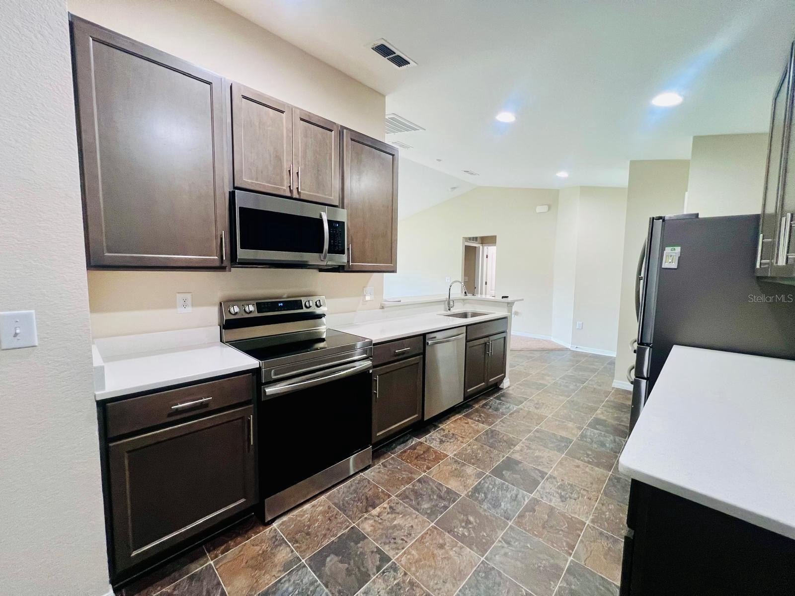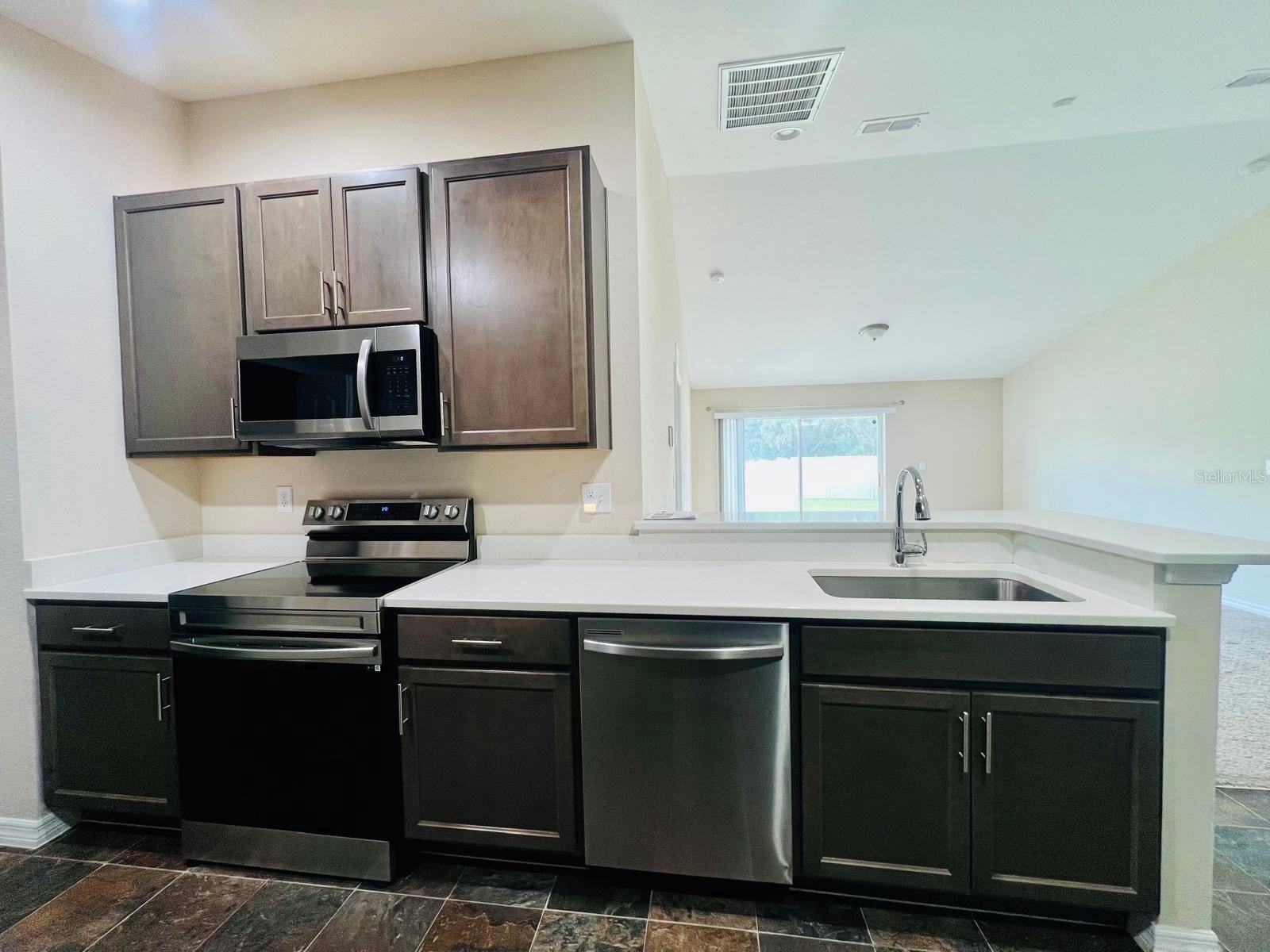 Welcome to this beautifully upgraded 3-bedroom, 2-bathroom home in the desirable gated community of Sanctuary by the Lake in Winter Haven. Nestled along the shores of Lake Rochelle, part of the renowned Chain of Lakes, this property offers the perfect blend of comfort, style, and lakeside living. The semi-open-concept layout includes a bright living and dining area with glass sliders overlooking the large, fully fenced backyard, with plenty of space to add a pool. The double garage provides ample parking and storage. The kitchen is both stylish and functional, boasting quartz countertops, stainless steel appliances, 42” wood cabinetry, and a spacious pantry. There is also a laundry closet that includes a washer and dryer. The primary suite offers a relaxing retreat with a walk-in tiled shower and an oversized walk-in closet. Residents enjoy exclusive access to Lake Rochelle for kayaking and water sports, along with scenic walking trails, private docks, and a playground—all with low HOA fees and no CDD. The property’s convenient location offers easy access to shopping, medical centers, dining, and major attractions such as LEGOLAND, Disney World, and Universal Studios. Don’t miss this opportunity to live in a beautiful, move-in-ready home within a sought-after lakefront community!