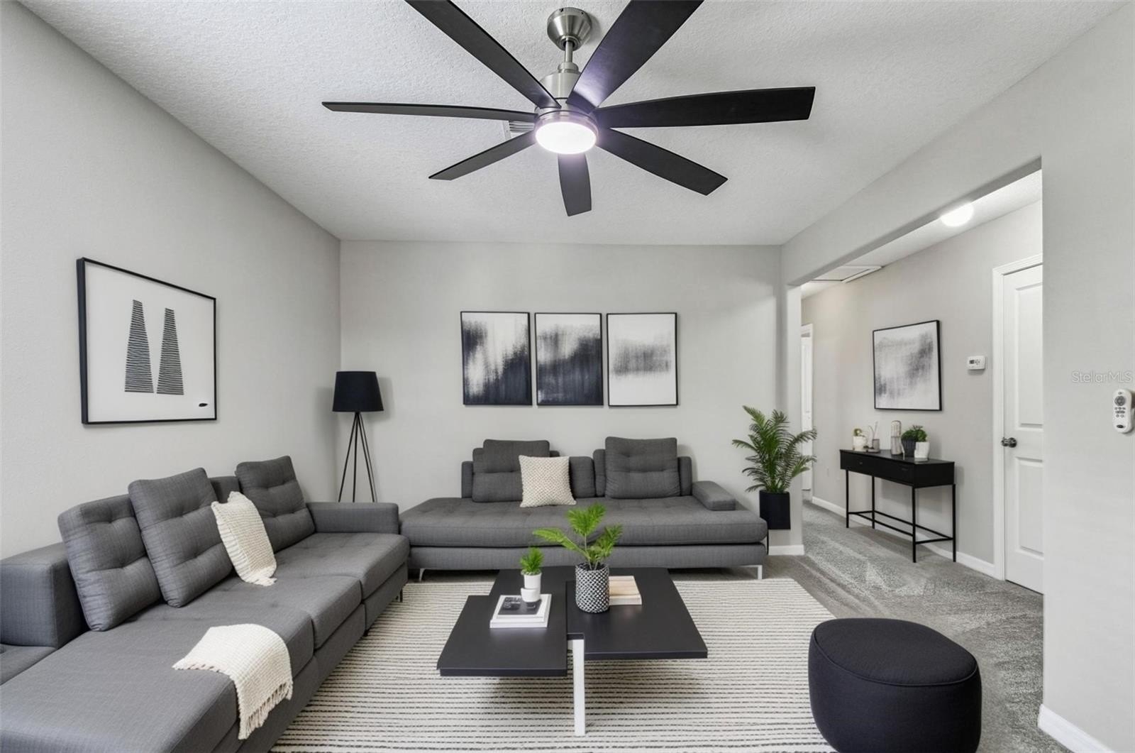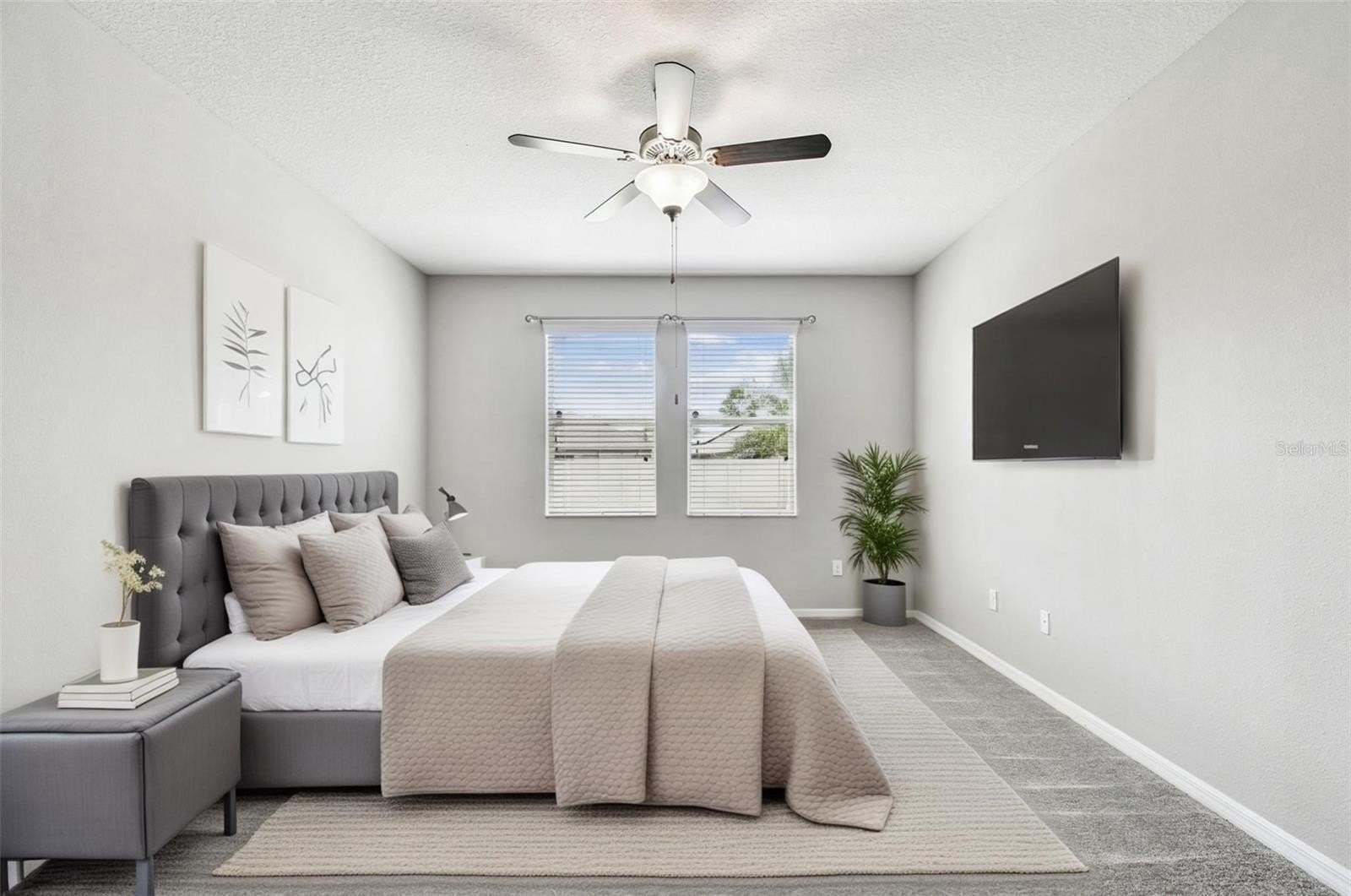 One or more photo(s) has been virtually staged. **Motivated Seller**PRICE DROP**. Now's the time to purchase this home. Get in before the Holiday's!!! This spacious 5-bedroom, 3.5-bath home is move-in ready with brand new high-quality carpet throughout, water softener, new kitchen backsplash, new sprinkler system, freshly cleaned and sealed tile, and fresh premium paint inside and out. The open-concept layout features high ceilings, a fenced backyard, and a desirable first-floor primary suite. Upstairs, you’ll find a large loft area, four additional bedrooms, and two full bathrooms — perfect for family, guests, or a home office setup. Enjoy brand new ceiling fans in the living room and loft for added comfort. Located in the highly sought-after and established community of Connerton, where amenities abound: scenic walking trails, tennis courts, basketball courts, a clubhouse, fitness center, heated lap pool, and a resort-style main pool complete with its own café. And by the way, a second clubhouse is coming! Estimated completion is the end of 2025. Schedule your showing today
