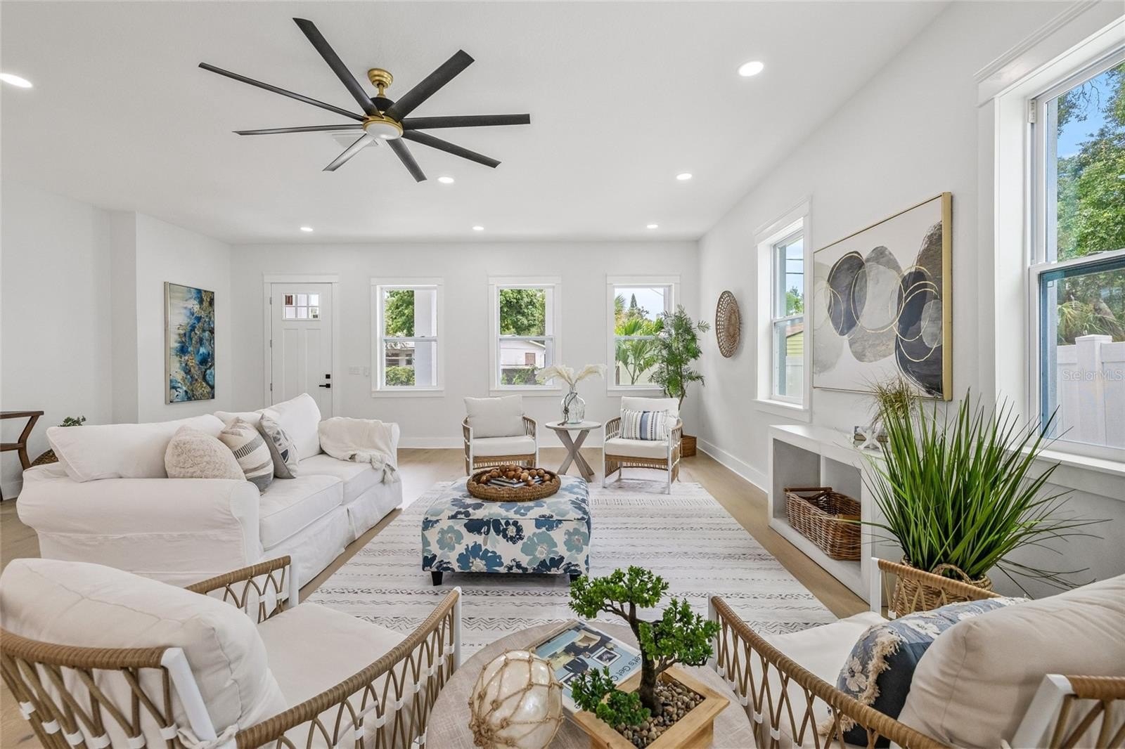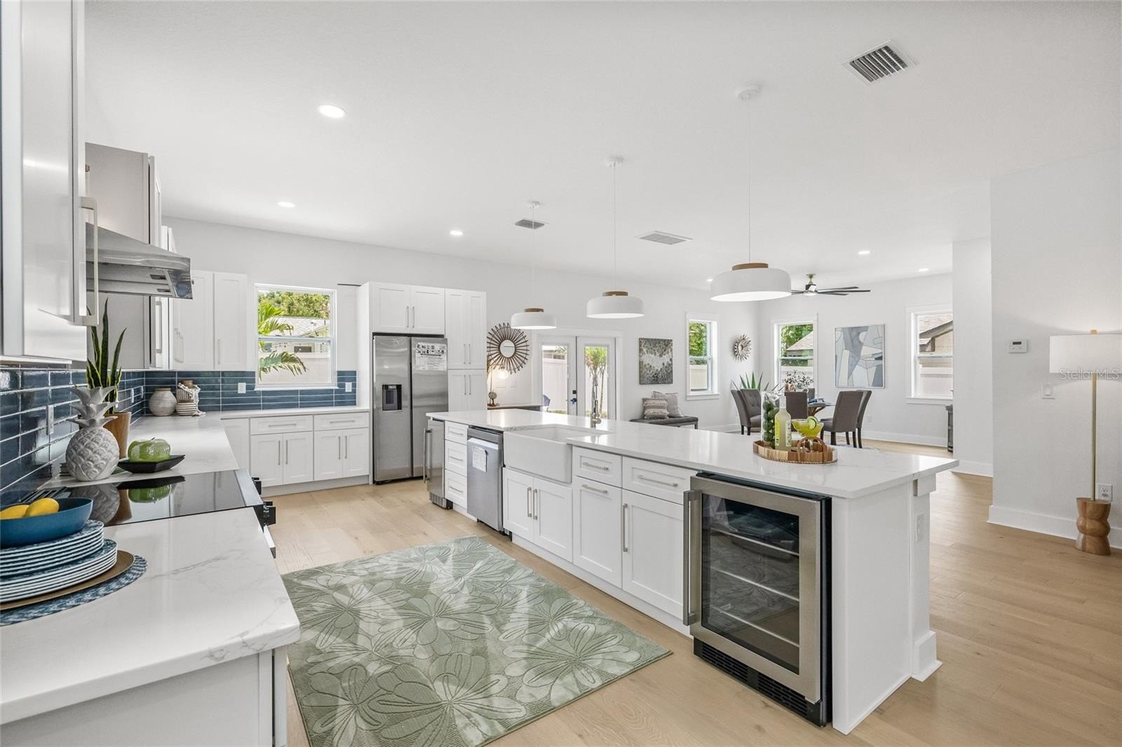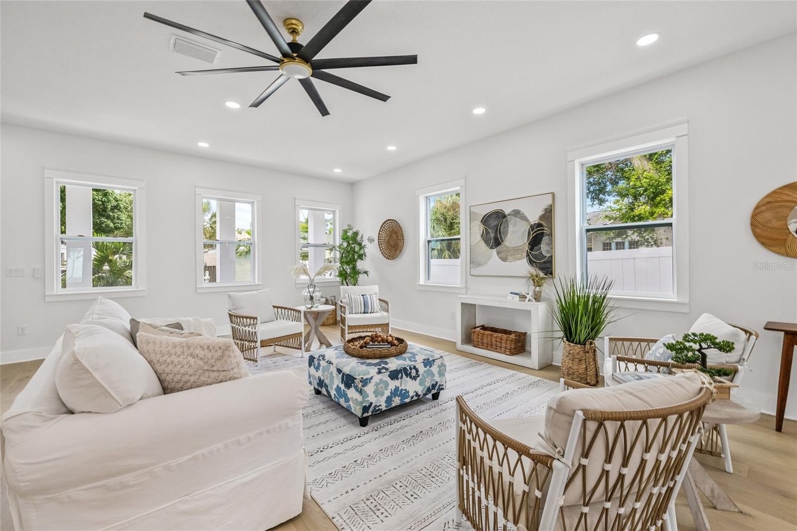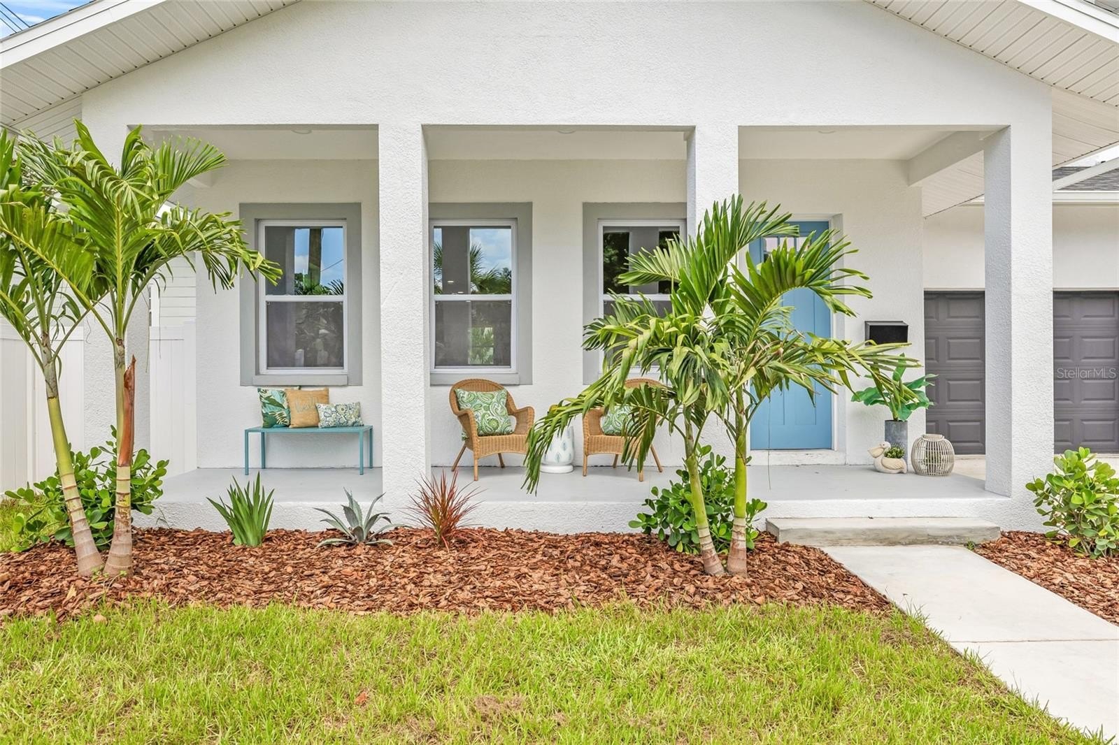 Brand-New Construction in Northeast St. Petersburg by Coastline Homes! Situated on a quiet street in the Greater Allendale neighborhood of Five Points, this stunning new-construction home offers refined living at an affordable price in one of St. Petersburg’s most sought-after areas. Fully completed and move-in ready, this thoughtfully designed residence features 4 bedrooms, 2.5 bathrooms, and an attached 1-car garage with driveway access. Inside, you'll find 10’ ceilings, a spacious great room, rich engineered hardwood flooring, 8’ interior doors, and high-end designer finishes throughout. Elegant trim work, oversized baseboards, and cased windows add to the home’s timeless charm. The custom kitchen is a chef’s dream with abundant cabinetry, wine fridge, ice maker and stylish finishes, seamlessly connecting the dining & family room spaces into one large great room. The Master Suite is a private retreat with a luxurious en-suite bathroom featuring an oversized double-sink vanity and a spa-like walk-in shower with soaking tub. Step outside to enjoy the covered front porch, and a fully fenced backyard with white vinyl fencing—perfectly private and offering ample space to add a future cocktail pool or over-sized spa. Whether you're entertaining guests or enjoying a quiet evening at home, this outdoor space is ready to grow with your vision. Located just minutes from vibrant Downtown St. Pete, Gulf beaches, parks, and top-rated schools, this home blends luxury, comfort, and convenience in a location you’ll love. Don’t miss your chance to own this exceptional new home—schedule your private tour today! **Rendering of pool is included for reference purposes only, and new pool is not included with purchase.**