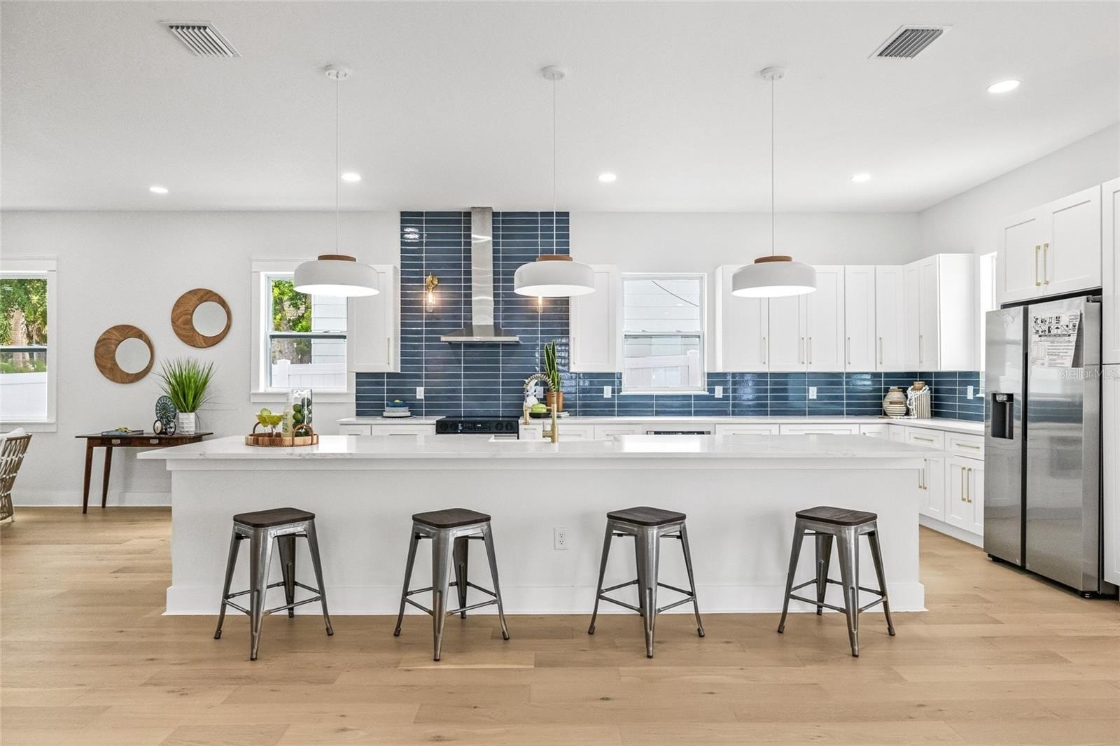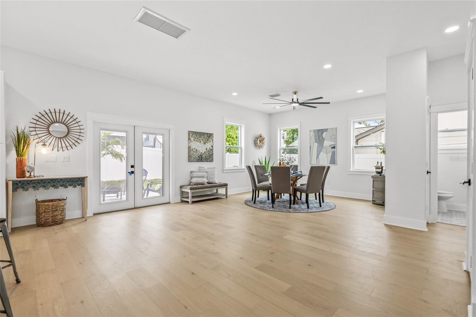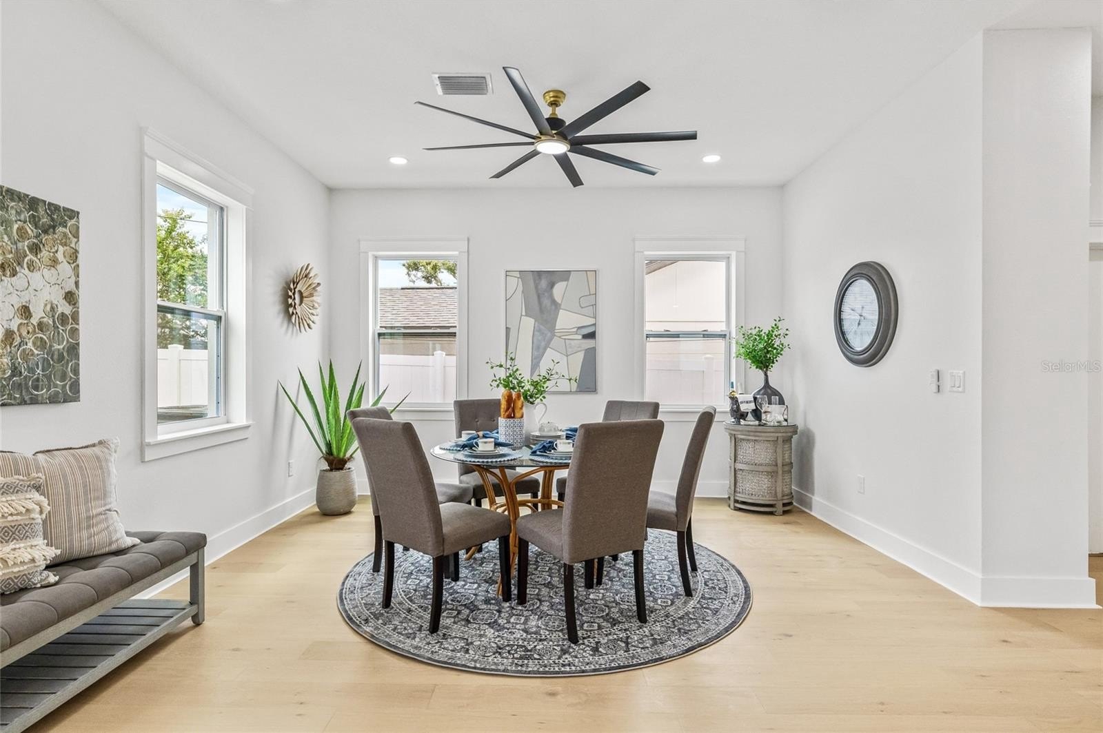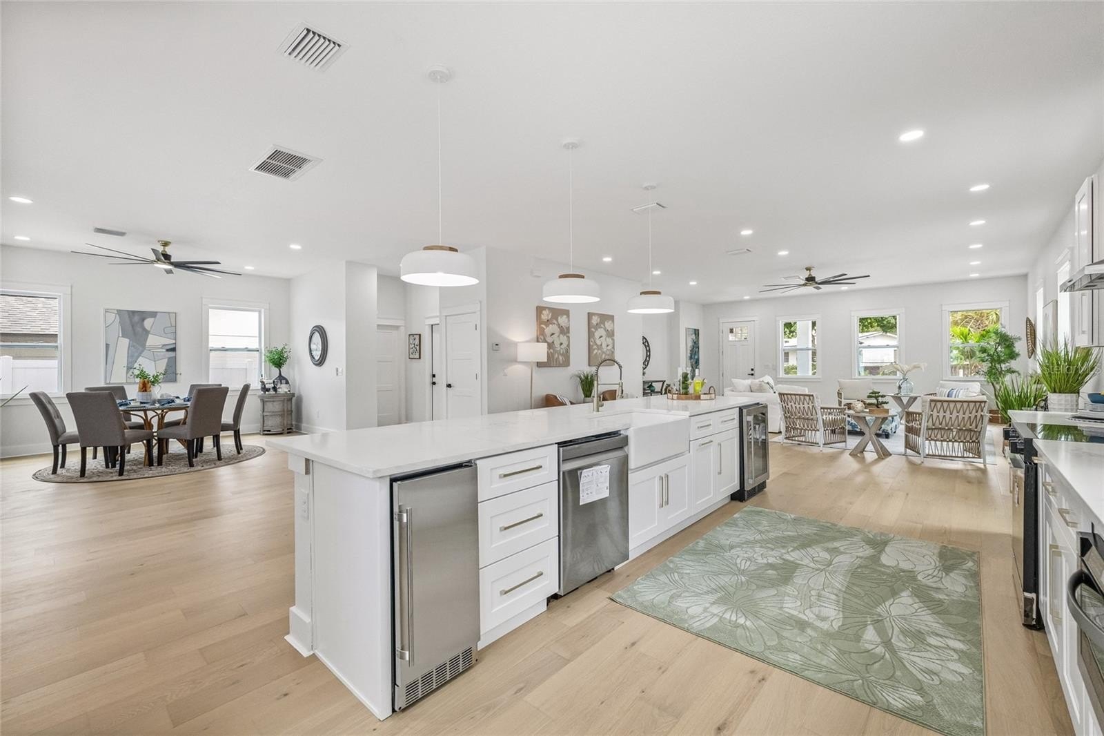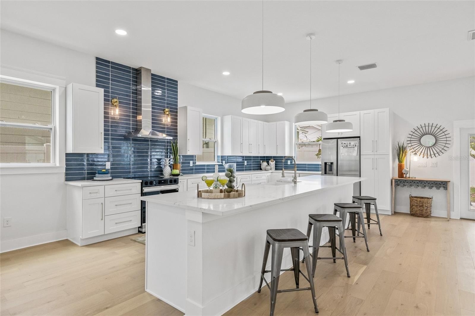 Brand-New Construction in Northeast St. Petersburg by Coastline Homes! Situated on a quiet street in the Greater Allendale neighborhood of Five Points, this stunning new-construction home offers refined living at an affordable price in one of St. Petersburg’s most sought-after areas. Fully completed and move-in ready, this thoughtfully designed residence features 4 bedrooms, 2.5 bathrooms, and an attached 1-car garage with driveway access. Inside, you'll find 10’ ceilings, a spacious great room, rich engineered hardwood flooring, 8’ interior doors, and high-end designer finishes throughout. Elegant trim work, oversized baseboards, and cased windows add to the home’s timeless charm. The custom kitchen is a chef’s dream with abundant cabinetry, wine fridge, ice maker and stylish finishes, seamlessly connecting the dining & family room spaces into one large great room. The Master Suite is a private retreat with a luxurious en-suite bathroom featuring an oversized double-sink vanity and a spa-like walk-in shower with soaking tub. Step outside to enjoy the covered front porch, and a fully fenced backyard with white vinyl fencing—perfectly private and offering ample space to add a future cocktail pool or over-sized spa. Whether you're entertaining guests or enjoying a quiet evening at home, this outdoor space is ready to grow with your vision. Located just minutes from vibrant Downtown St. Pete, Gulf beaches, parks, and top-rated schools, this home blends luxury, comfort, and convenience in a location you’ll love. Don’t miss your chance to own this exceptional new home—schedule your private tour today! **Rendering of pool is included for reference purposes only, and new pool is not included with purchase.**