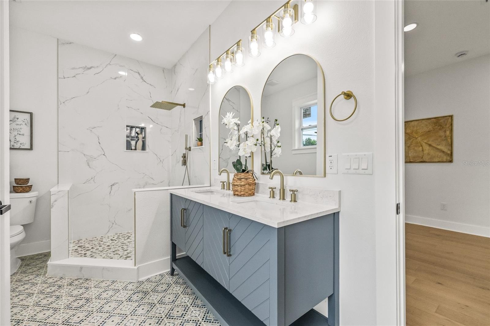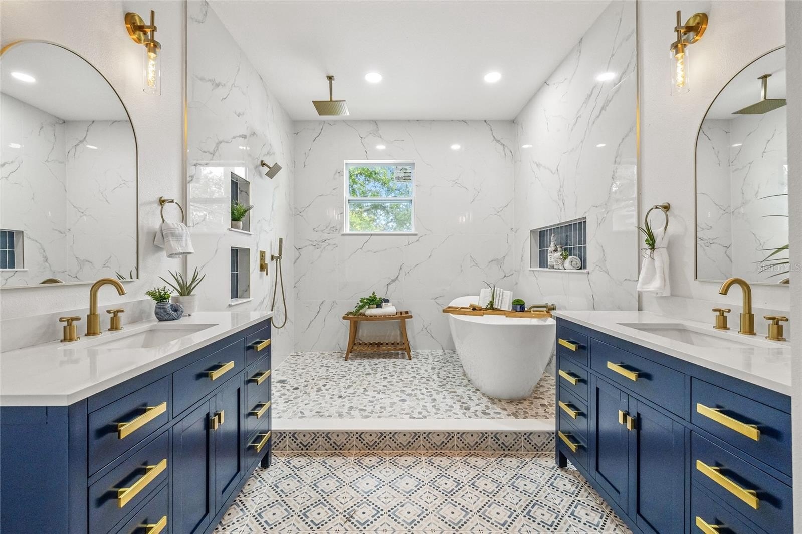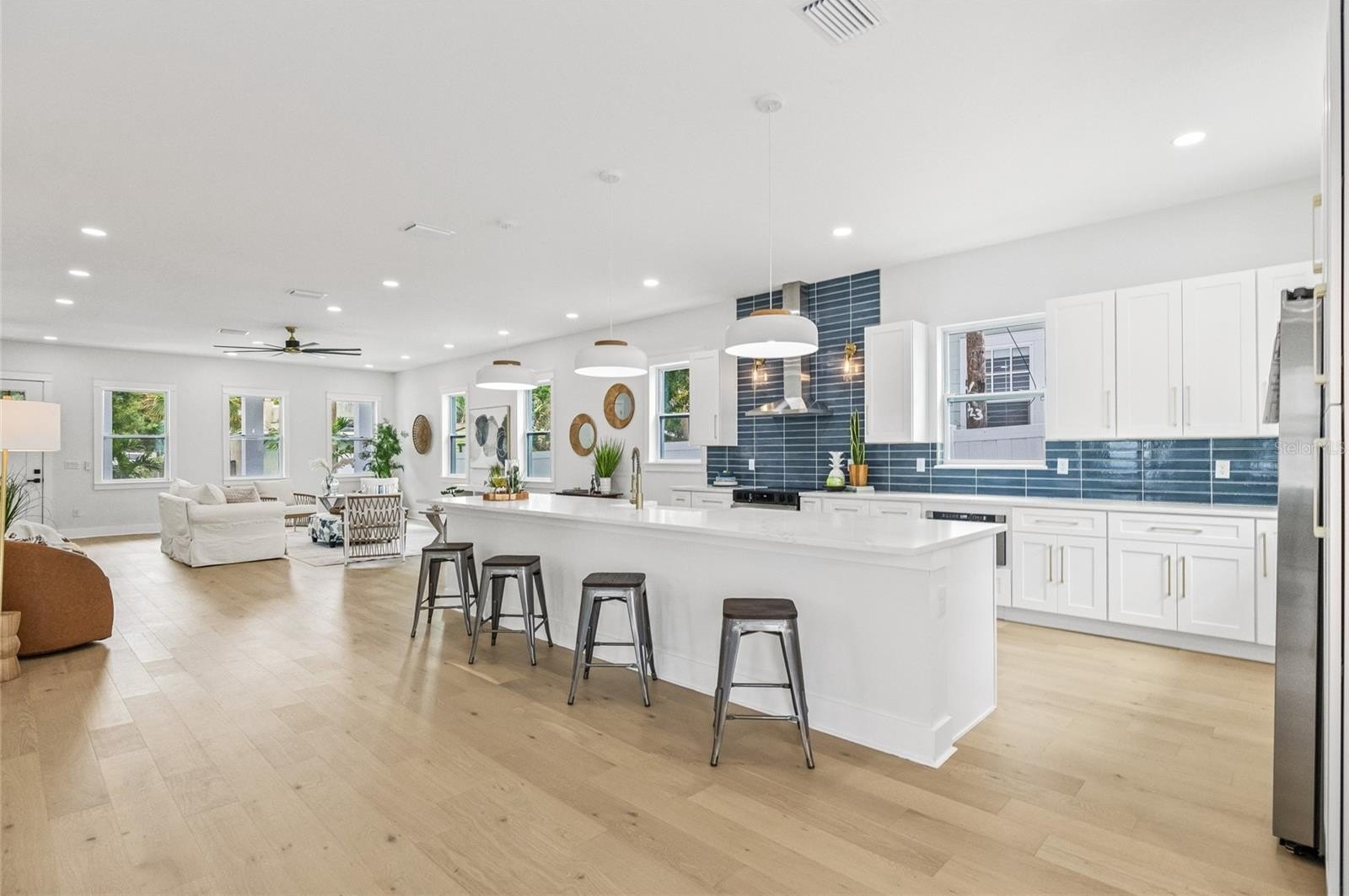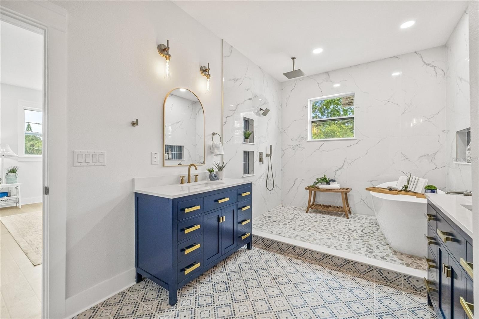 Brand-New Construction in Northeast St. Petersburg by Coastline Homes! Situated on a quiet street in the Greater Allendale neighborhood of Five Points, this stunning new-construction home offers refined living at an affordable price in one of St. Petersburg’s most sought-after areas. Fully completed and move-in ready, this thoughtfully designed residence features 4 bedrooms, 2.5 bathrooms, and an attached 1-car garage with driveway access. Inside, you'll find 10’ ceilings, a spacious great room, rich engineered hardwood flooring, 8’ interior doors, and high-end designer finishes throughout. Elegant trim work, oversized baseboards, and cased windows add to the home’s timeless charm. The custom kitchen is a chef’s dream with abundant cabinetry, wine fridge, ice maker and stylish finishes, seamlessly connecting the dining & family room spaces into one large great room. The Master Suite is a private retreat with a luxurious en-suite bathroom featuring an oversized double-sink vanity and a spa-like walk-in shower with soaking tub. Step outside to enjoy the covered front porch, and a fully fenced backyard with white vinyl fencing—perfectly private and offering ample space to add a future cocktail pool or over-sized spa. Whether you're entertaining guests or enjoying a quiet evening at home, this outdoor space is ready to grow with your vision. Located just minutes from vibrant Downtown St. Pete, Gulf beaches, parks, and top-rated schools, this home blends luxury, comfort, and convenience in a location you’ll love. Don’t miss your chance to own this exceptional new home—schedule your private tour today! **Rendering of pool is included for reference purposes only, and new pool is not included with purchase.**