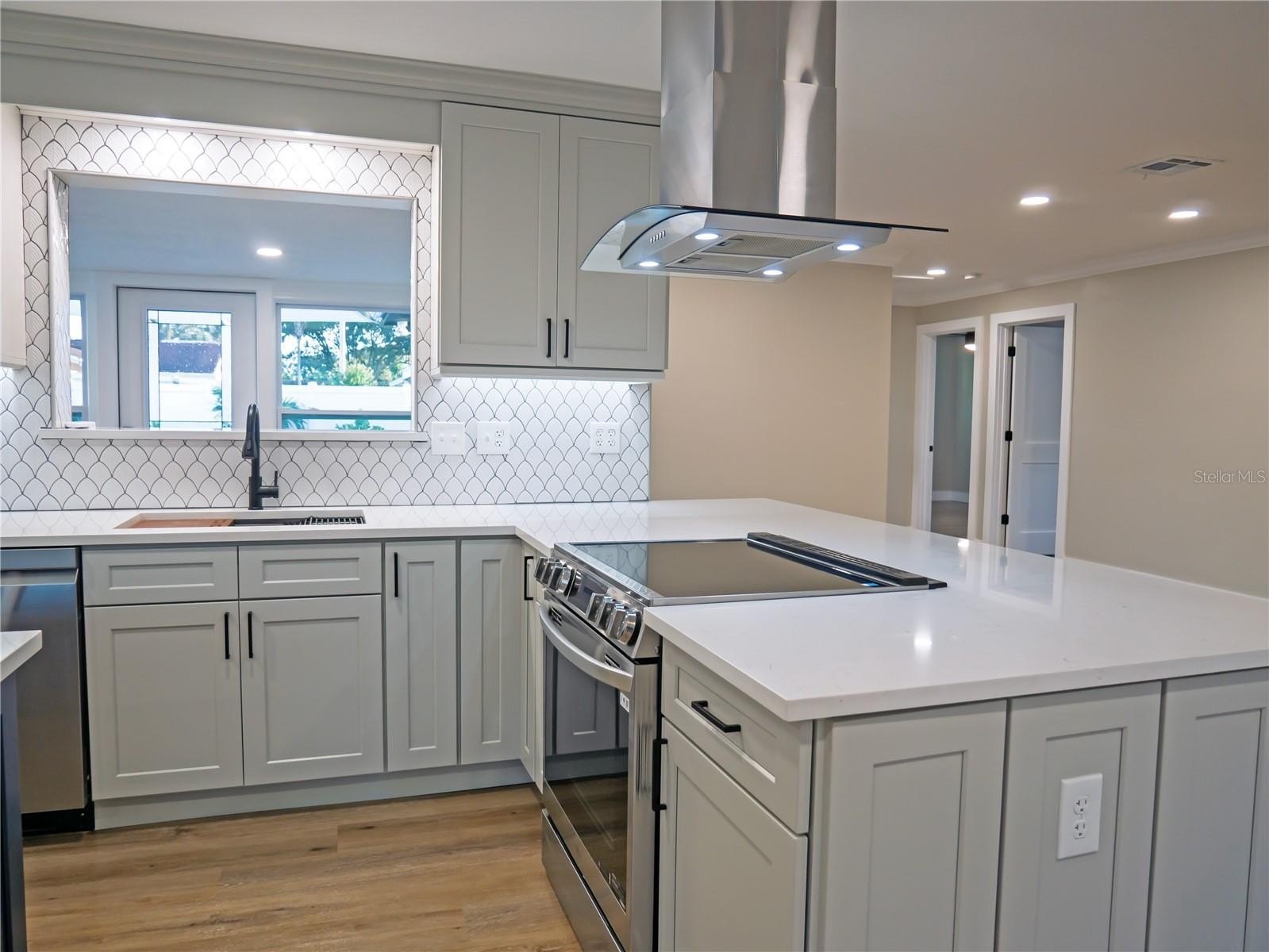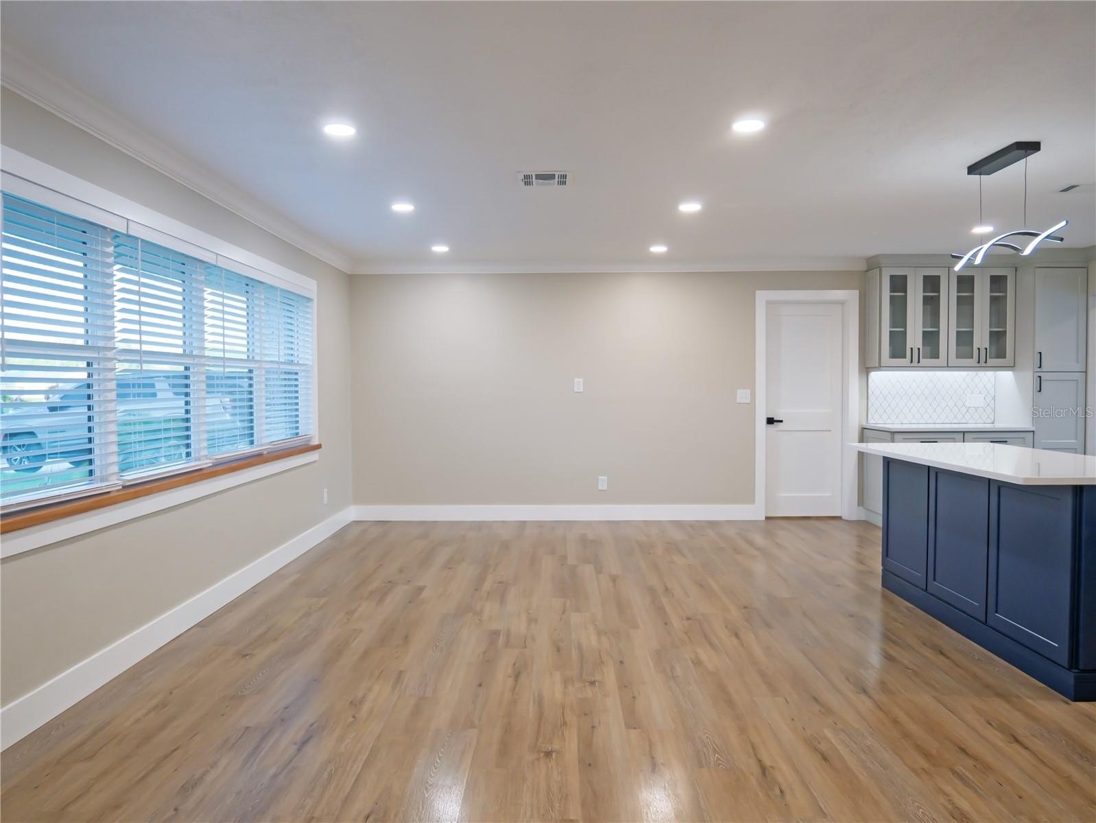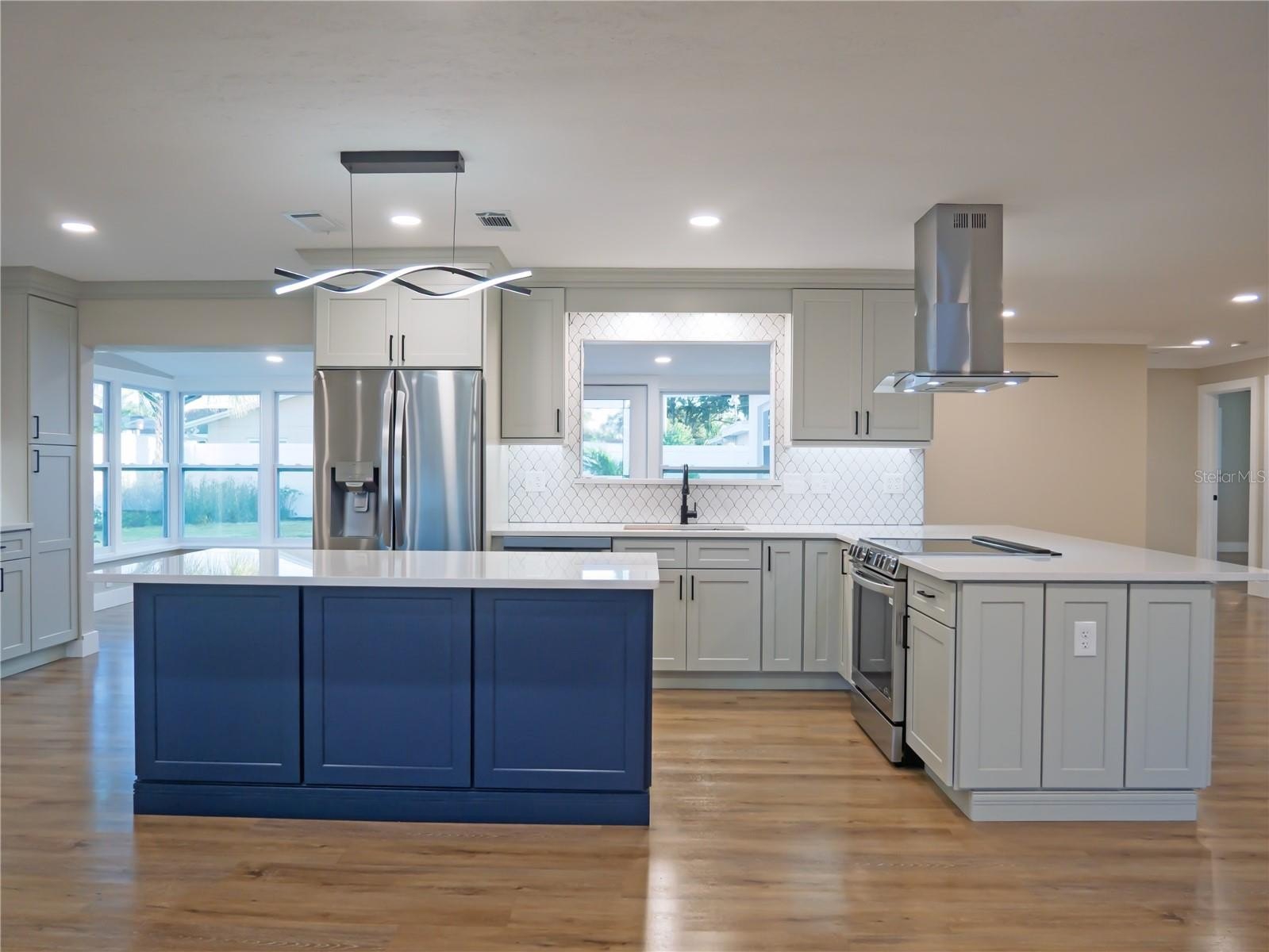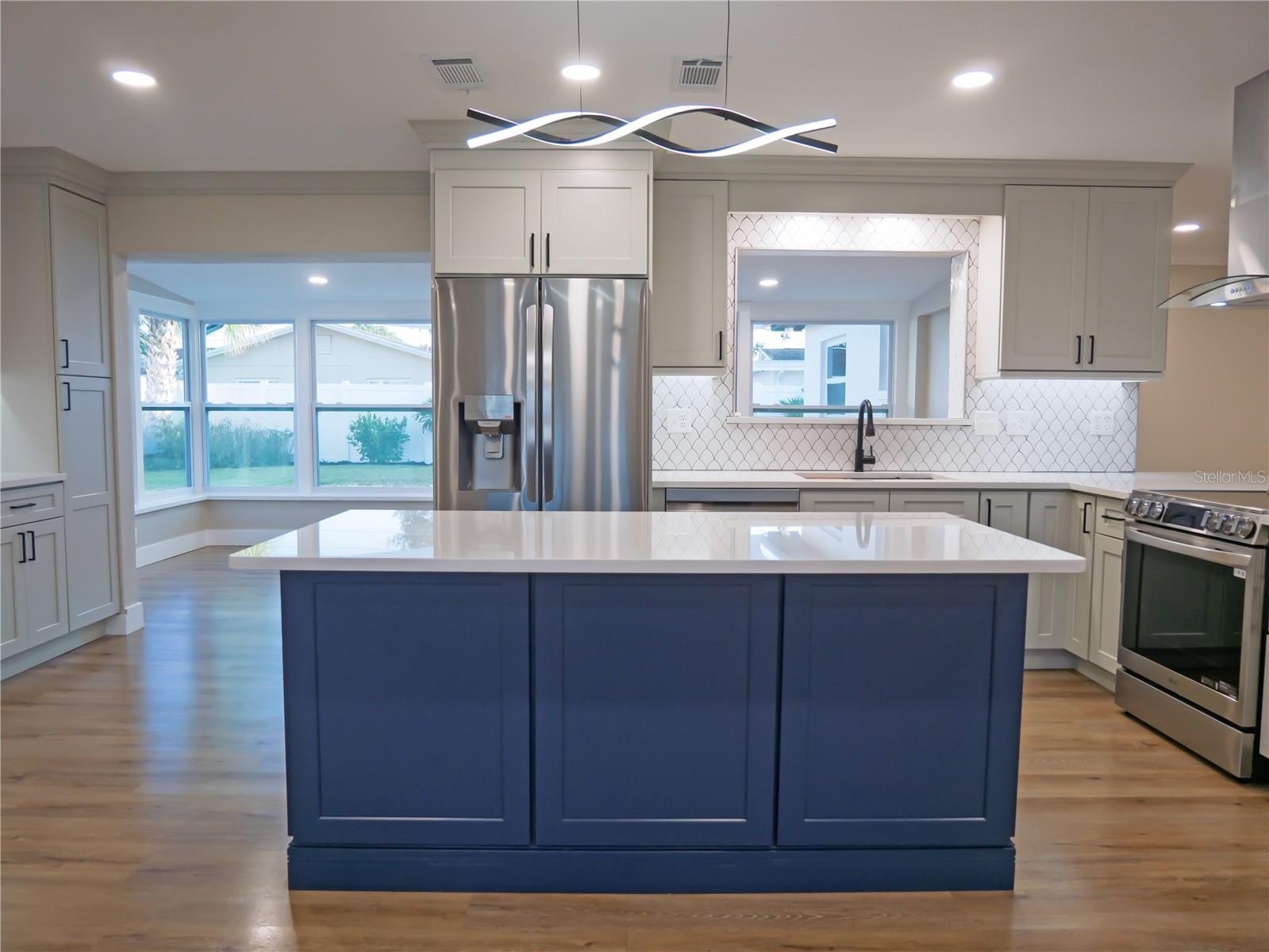 Discover this beautifully renovated home in one of St. Pete’s most desirable neighborhoods, Holiday Park. Every detail has been professionally redone for modern living, comfort, and peace of mind. The open floor plan features luxury waterproof vinyl flooring, LED lighting, and crown molding. A brand-new kitchen offers quartz countertops, shaker cabinetry, LG Smart appliances, under-cabinet lighting, a large island with seating, and a coffee bar perfect for everyday living or entertaining. The primary suite includes a walk-in closet and custom tile shower, while the other three bedrooms are spacious and bright. Both bathrooms are fully updated with modern finishes and fixtures. Built for efficiency and security, this home includes impact-rated windows and doors, a new AC system, solar panels PAID in full keeping electric bills under $100 on average. Step outside to a travertine patio, new landscaping, and a finished two-car garage with AC and storage. Just a short drive to Tyrone Mall, great restaurants, and 4 miles to the Gulf famous beaches, this home delivers modern comfort, style, and savings in a prime St. Pete location.