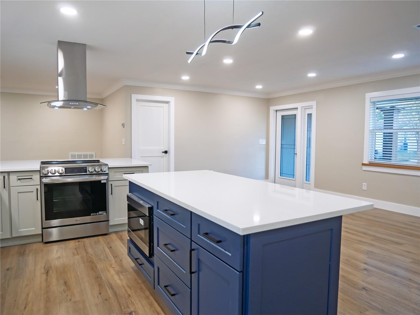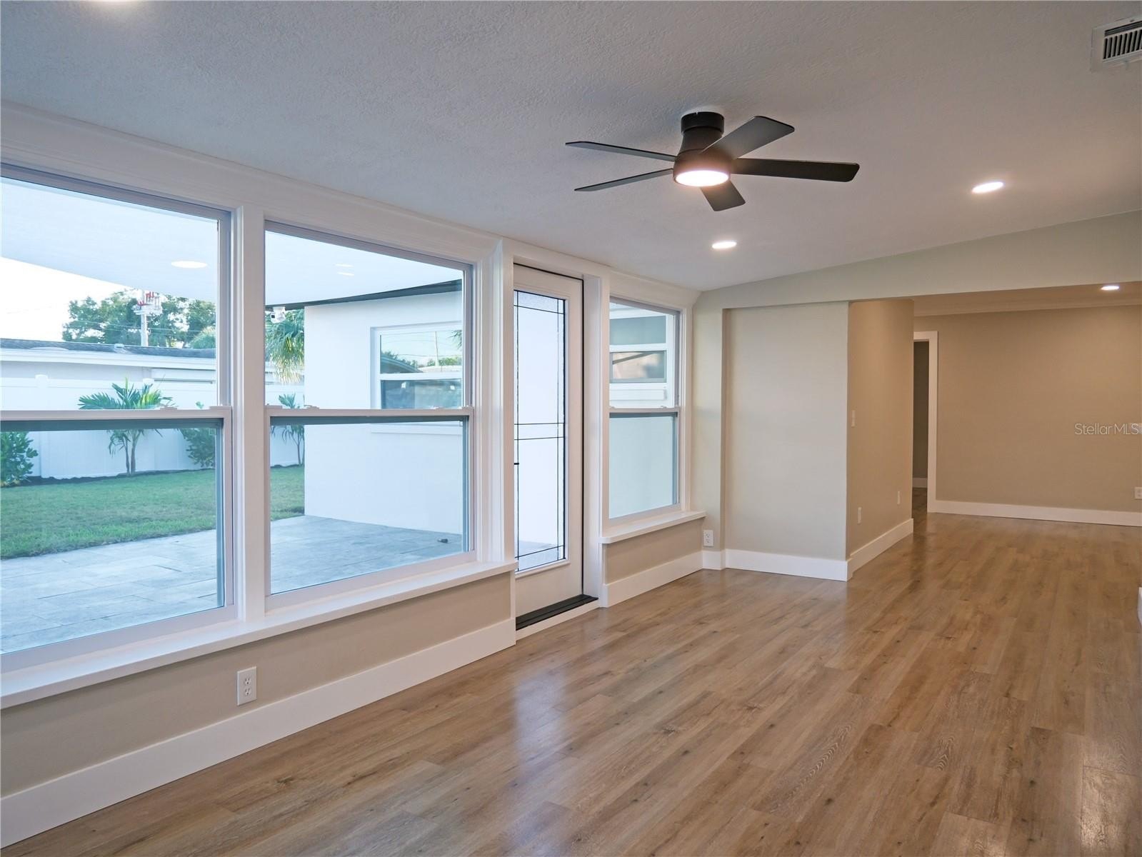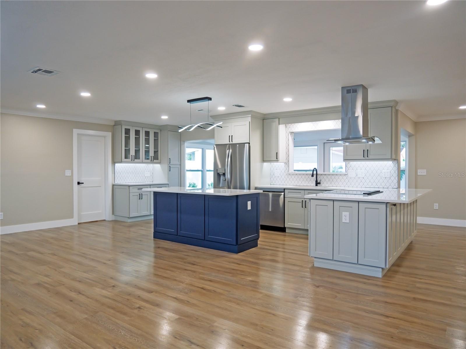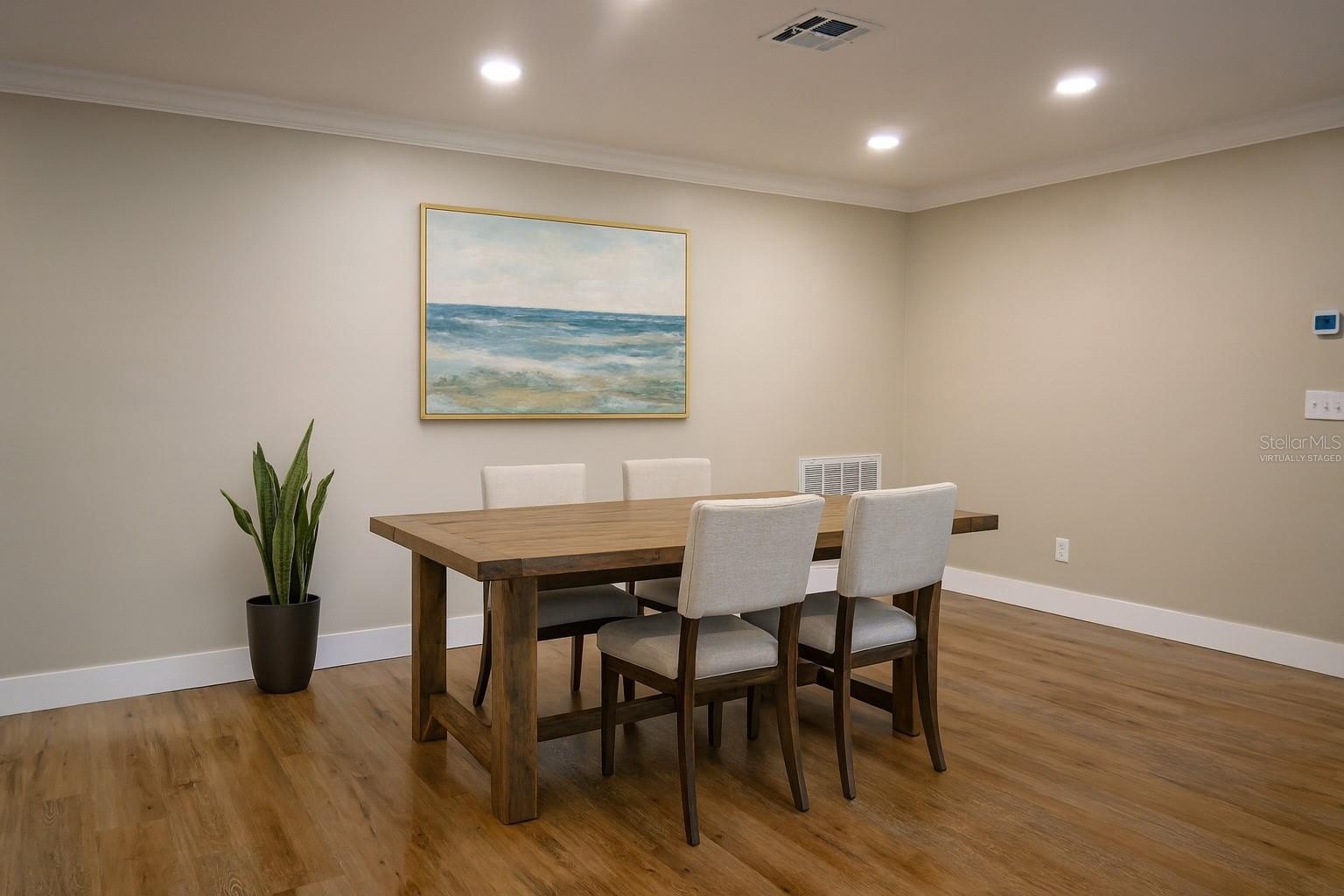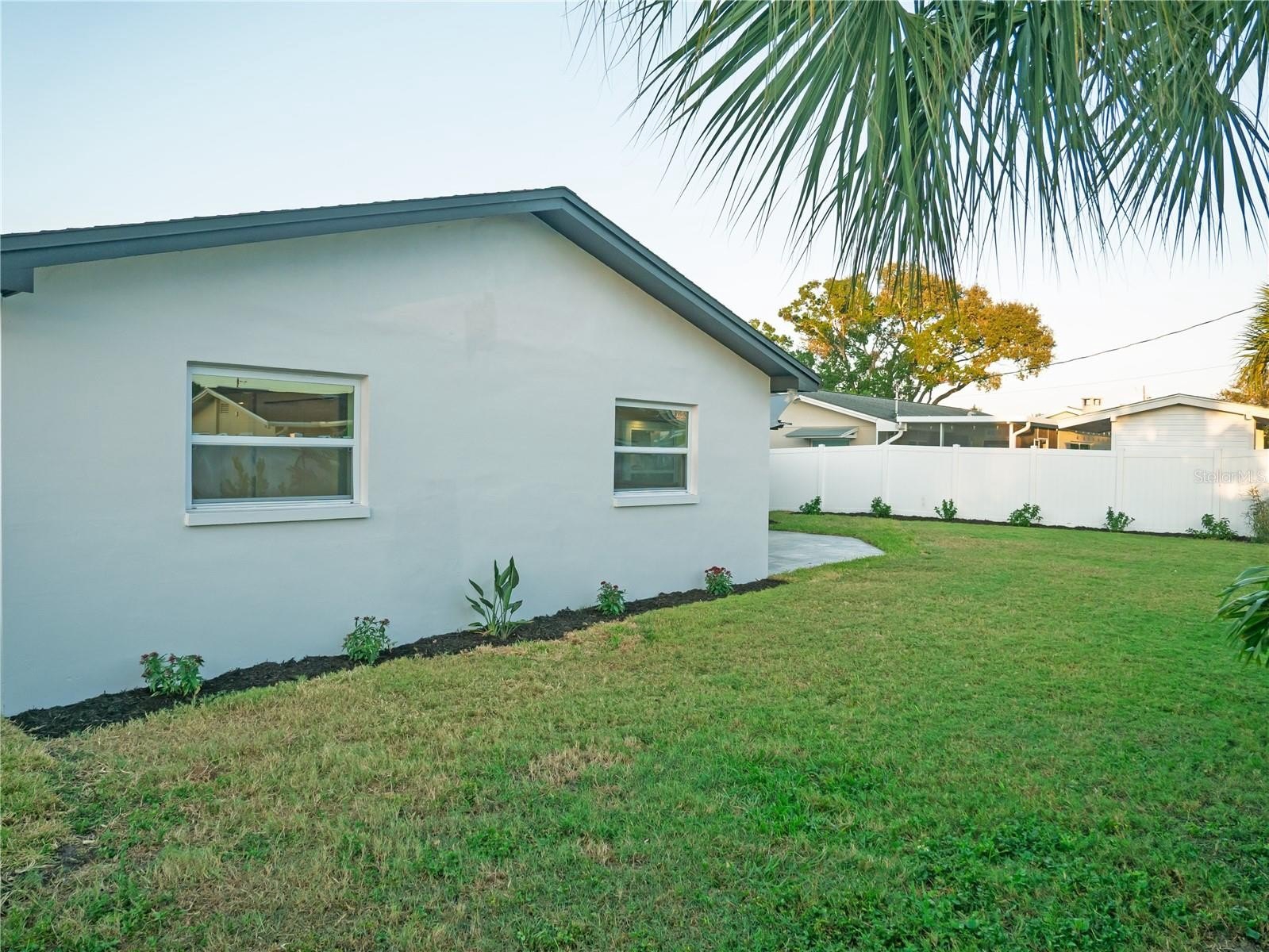 Discover this beautifully renovated home in one of St. Pete’s most desirable neighborhoods, Holiday Park. Every detail has been professionally redone for modern living, comfort, and peace of mind. The open floor plan features luxury waterproof vinyl flooring, LED lighting, and crown molding. A brand-new kitchen offers quartz countertops, shaker cabinetry, LG Smart appliances, under-cabinet lighting, a large island with seating, and a coffee bar perfect for everyday living or entertaining. The primary suite includes a walk-in closet and custom tile shower, while the other three bedrooms are spacious and bright. Both bathrooms are fully updated with modern finishes and fixtures. Built for efficiency and security, this home includes impact-rated windows and doors, a new AC system, solar panels PAID in full keeping electric bills under $100 on average. Step outside to a travertine patio, new landscaping, and a finished two-car garage with AC and storage. Just a short drive to Tyrone Mall, great restaurants, and 4 miles to the Gulf famous beaches, this home delivers modern comfort, style, and savings in a prime St. Pete location.