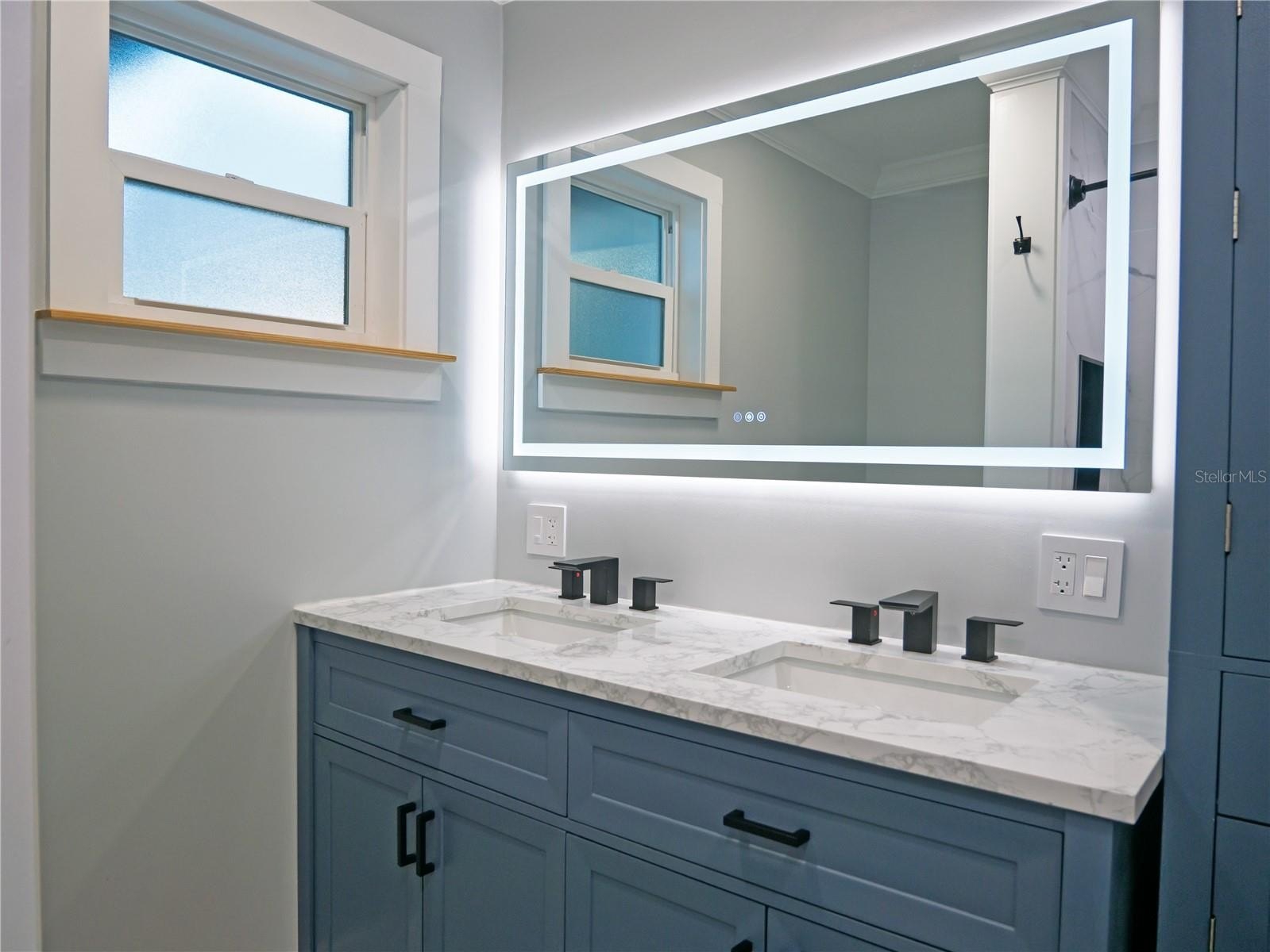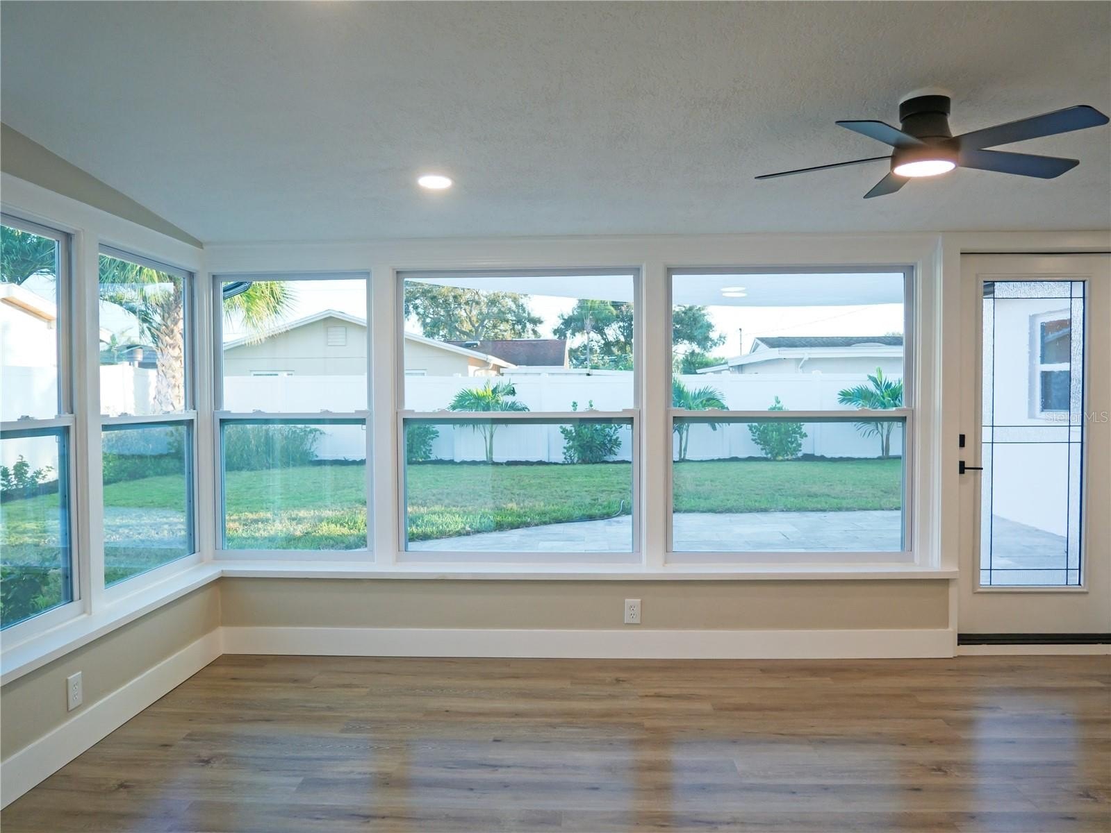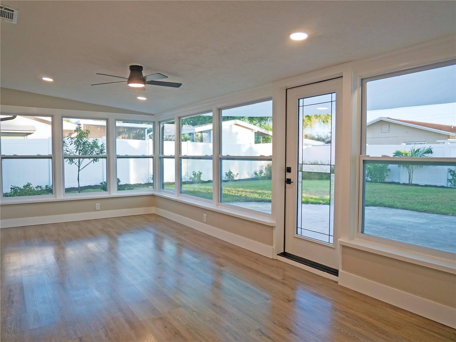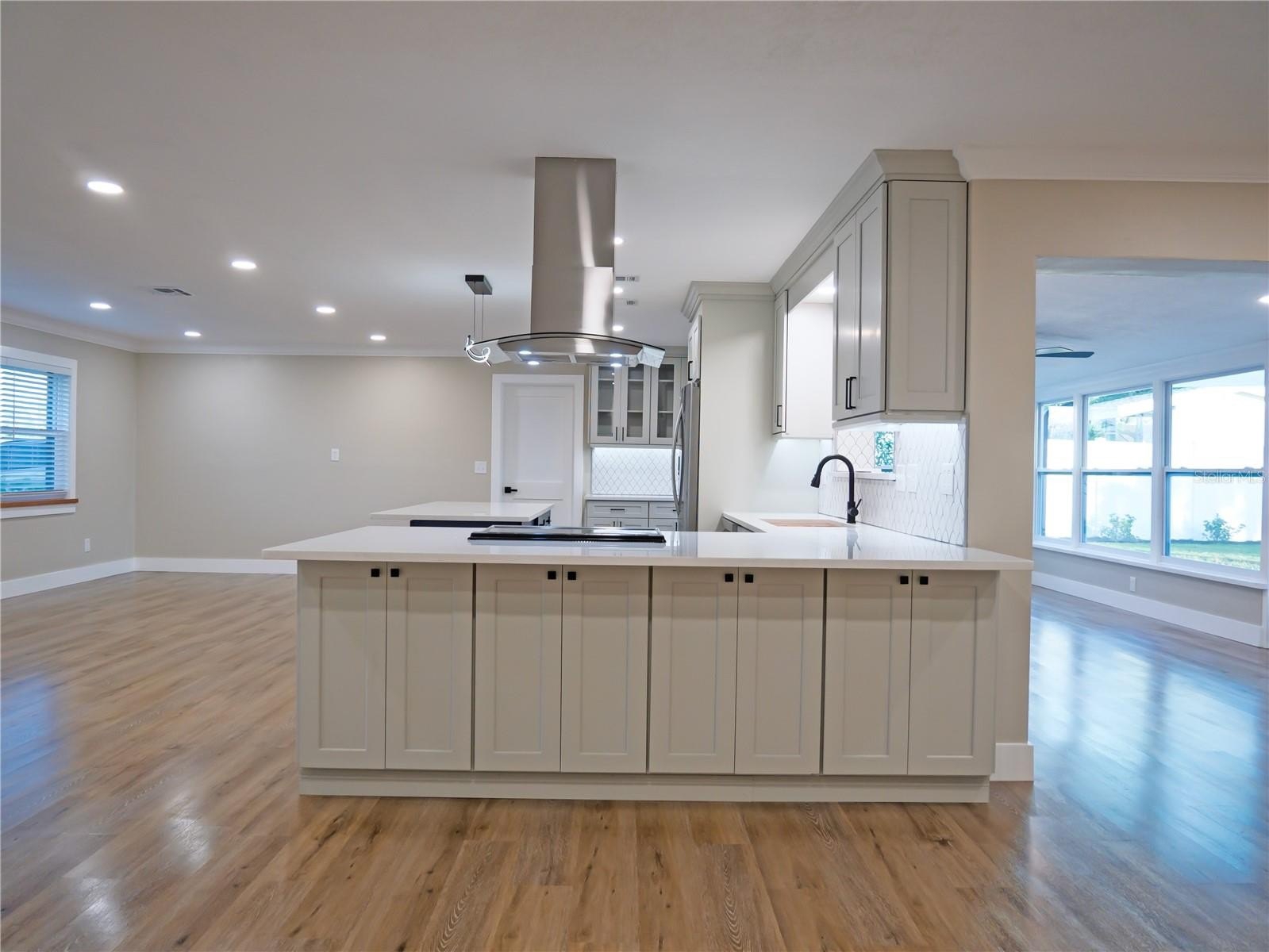 Discover this beautifully renovated home in one of St. Pete’s most desirable neighborhoods, Holiday Park. Every detail has been professionally redone for modern living, comfort, and peace of mind. The open floor plan features luxury waterproof vinyl flooring, LED lighting, and crown molding. A brand-new kitchen offers quartz countertops, shaker cabinetry, LG Smart appliances, under-cabinet lighting, a large island with seating, and a coffee bar perfect for everyday living or entertaining. The primary suite includes a walk-in closet and custom tile shower, while the other three bedrooms are spacious and bright. Both bathrooms are fully updated with modern finishes and fixtures. Built for efficiency and security, this home includes impact-rated windows and doors, a new AC system, solar panels PAID in full keeping electric bills under $100 on average. Step outside to a travertine patio, new landscaping, and a finished two-car garage with AC and storage. Just a short drive to Tyrone Mall, great restaurants, and 4 miles to the Gulf famous beaches, this home delivers modern comfort, style, and savings in a prime St. Pete location.