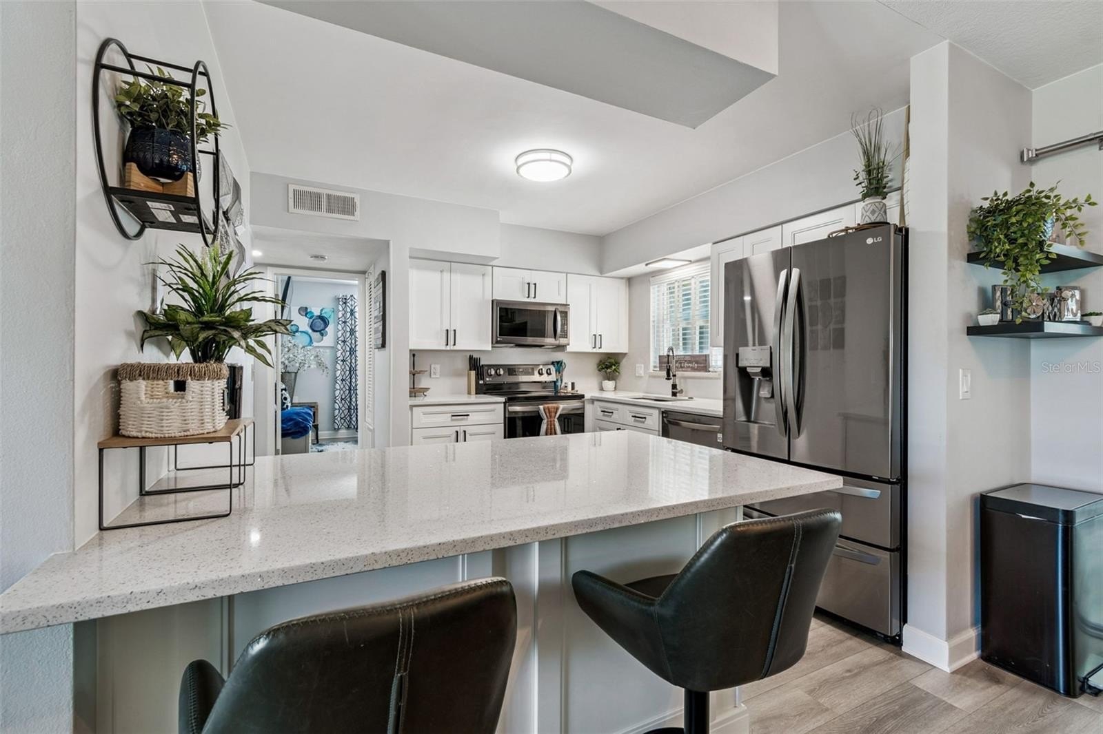 This solid concrete block home offers 2 bedrooms, 2 full bathrooms, and a thoughtfully updated interior that’s ready for you to move right in. Step inside and you’ll immediately notice the fresh, contemporary feel — with new interior paint, a beautifully renovated kitchen, and a modernized second bathroom that adds to the home’s charm and livability.