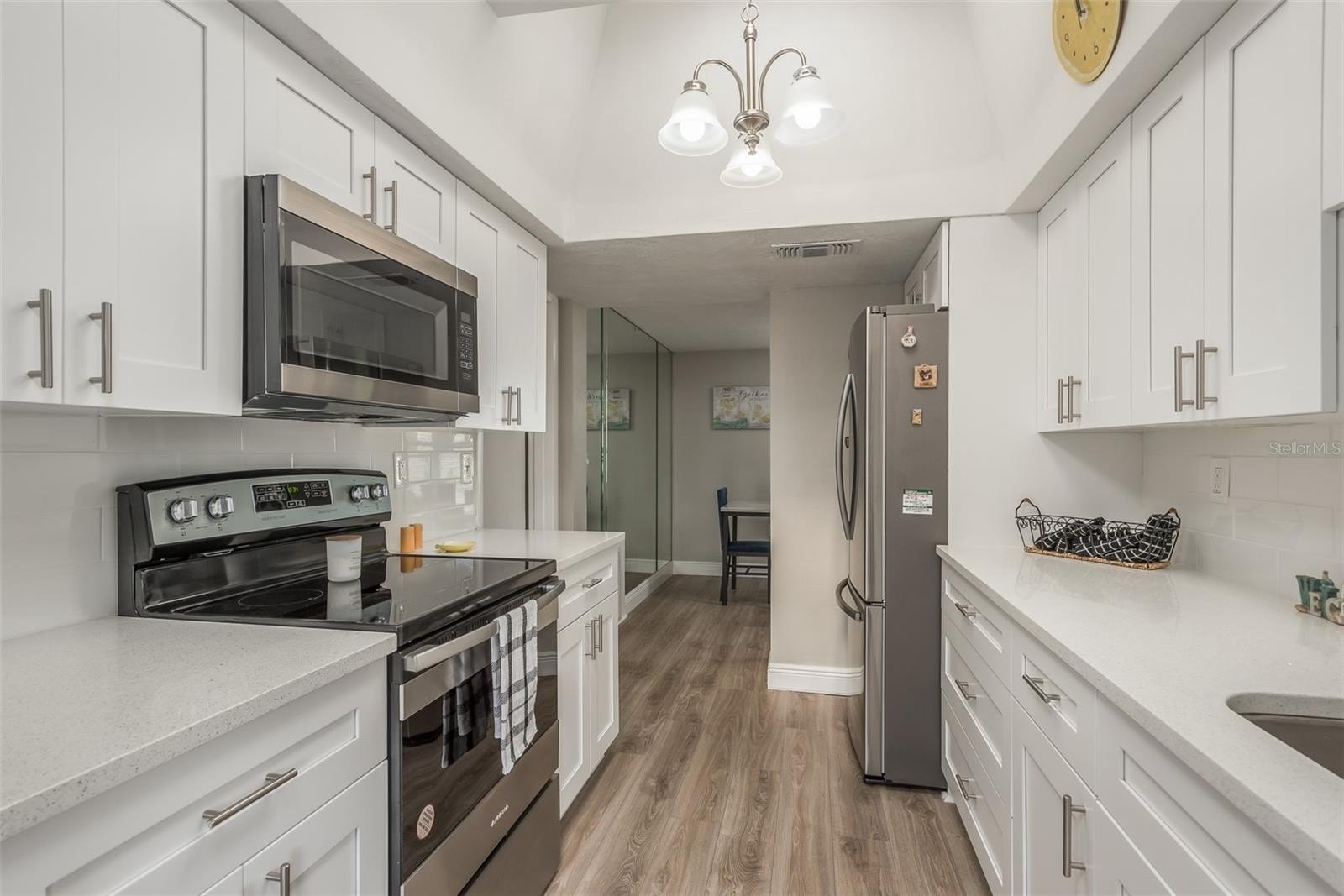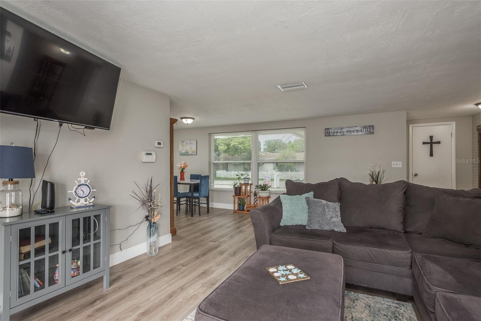 Looking for style, comfort, and location? This pool home checks every box. Completely updated in 2022, it’s the perfect blend of modern design and everyday livability. The circular driveway and clean curb appeal set the tone for what’s inside. Step through the front door to a light-filled, open layout with luxury vinyl plank flooring throughout—no carpet here! The kitchen and baths were fully remodeled with fresh finishes that make the whole home feel like new. The primary suite opens directly to the pool through sliding glass doors and features a stylish ensuite bath with walk-in shower for privacy and convenience. Your backyard oasis awaits dip into the sparkling pool, unwind under the lanai, or entertain friends in your fully fenced outdoor space. With no HOA, you’ll have the freedom to truly make it your own.
