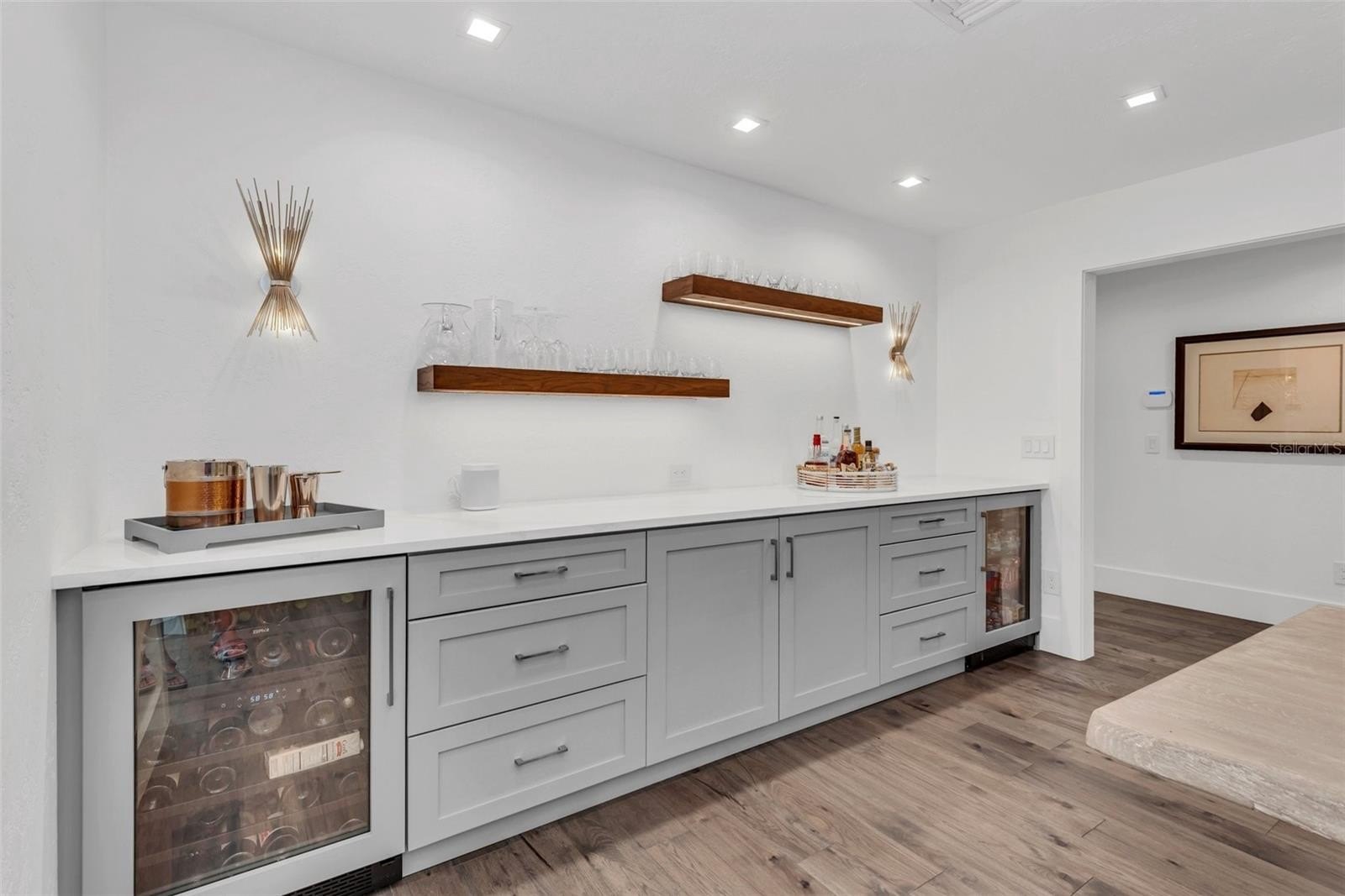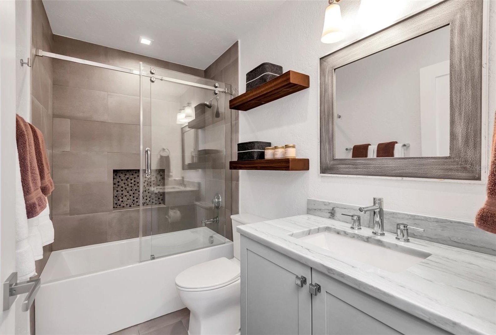 One or more photo(s) has been virtually staged. Welcome to your dream home in the heart of historic Dr. Phillips, inside the exclusive gated community of Orange Tree Country Club. This immaculate 4-bedroom, 2.5-bath residence blends farmhouse charm with modern luxury. Originally renovated in 2020 by Akers Custom Homes and thoughtfully updated again in 2022, no detail has been overlooked. This home's welcoming curb appeal will draw you in with its lush landscaping, circular paver driveway, planter boxes and exterior lighting. As you step inside you are greeted by spacious rooms illuminated by an abundance of natural light, vaulted ceilings and engineered hardwood floors that create an open and inviting atmosphere. The kitchen is a chef's delight featuring quartz countertops, spacious prep areas, custom cabinetry and GE Cafe appliances--the perfect backdrop for your culinary adventures. Off the kitchen, the dining room has a 12' dry bar for entertaining with 2 refrigerators underneath for holding all your beverages. The large, open family room with vaulted ceilings and custom closets for extra storage is the highlight of this home along with its grand electric fireplace and expansive views of the private backyard. The sliding doors as well as most of the windows in the house are covered with electric Lutron Shades. Whether having a BBQ, soaking in the heated spa, playing games in the backyard, or relaxing in this serene retreat, you will find endless opportunities for entertaining your family and friends. The primary suite features a custom walk-in closet and an added flex space that can serve as a home office, nursery, or fourth bedroom. The ensuite bathroom is a luxurious oasis with a dual vanity and oversized walk-in shower with dual shower heads. The fact this home was renovated by a first class builder in 2020 and then again in 2022 by the current owners makes this a golden opportunity for the taking. Other features include: In 2020- a new roof, new electrical wiring, new plumbing, new insulation, new light fixtures and LED canned lights, whole house speaker system, new water heaters with circulating pump, high energy efficient Carrier HVAC in Family Room. In 2022-New roof, all new Andersen windows and Carrier split HVAC in Garage. Truly move-in ready, it feels brand new. The Orange Tree community is built around a private golf course and features a recreation center on Lake Marsha. Just a short walk from your front door, you’ll enjoy an outdoor heated pool, tennis, pickleball, basketball, racquetball, and volleyball courts, plus a fitness center, playground, saunas, and meeting rooms. The Rec Center also hosts year-round events for residents—including Bingo, Bunco, holiday visits from the Easter Bunny and Santa Claus, wine tastings, "National Night Out" and more—making it a true hub for fun, relaxation, and connection. Conveniently located near top-rated schools, the YMCA, Restaurant Row, Trader Joe’s, Whole Foods, upscale shopping, outlet malls, the airport, and world-famous theme parks, this home offers both luxury and lifestyle. Welcome home to Orange Tree—where comfort, elegance, and community come together.