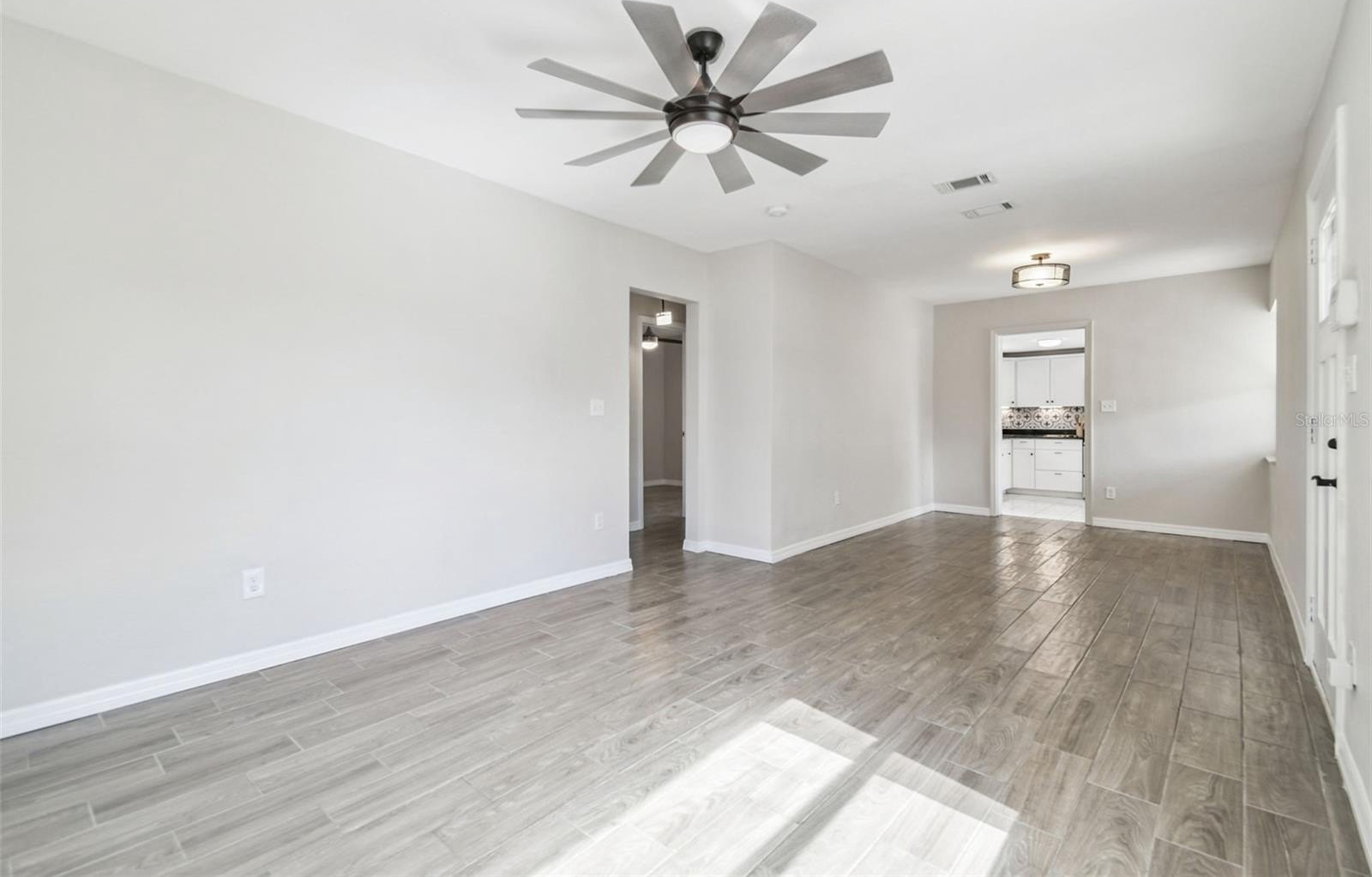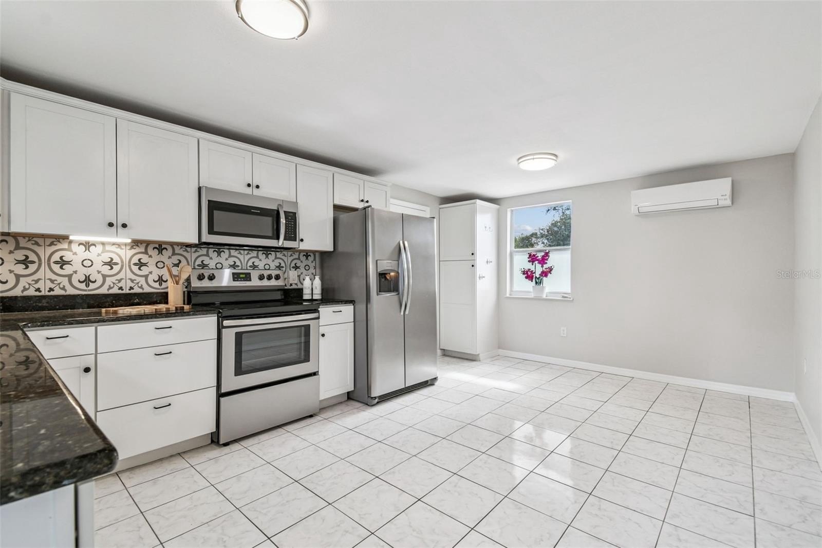 One or more photo(s) has been virtually staged. Welcome to this charming and move-in ready 2-bedroom, 1-bath home with a bonus room in the heart of Tampa! Walk up to a beautiful paver front porch and then step inside to a bright, open living space with updated woodgrain ceramic tile flooring in the living room, dining room and both bedrooms including thoughtful updates that blend comfort and functionality. The kitchen features sleek granite counters, modern stainless steel appliances and a cozy eating nook perfect for casual meals.