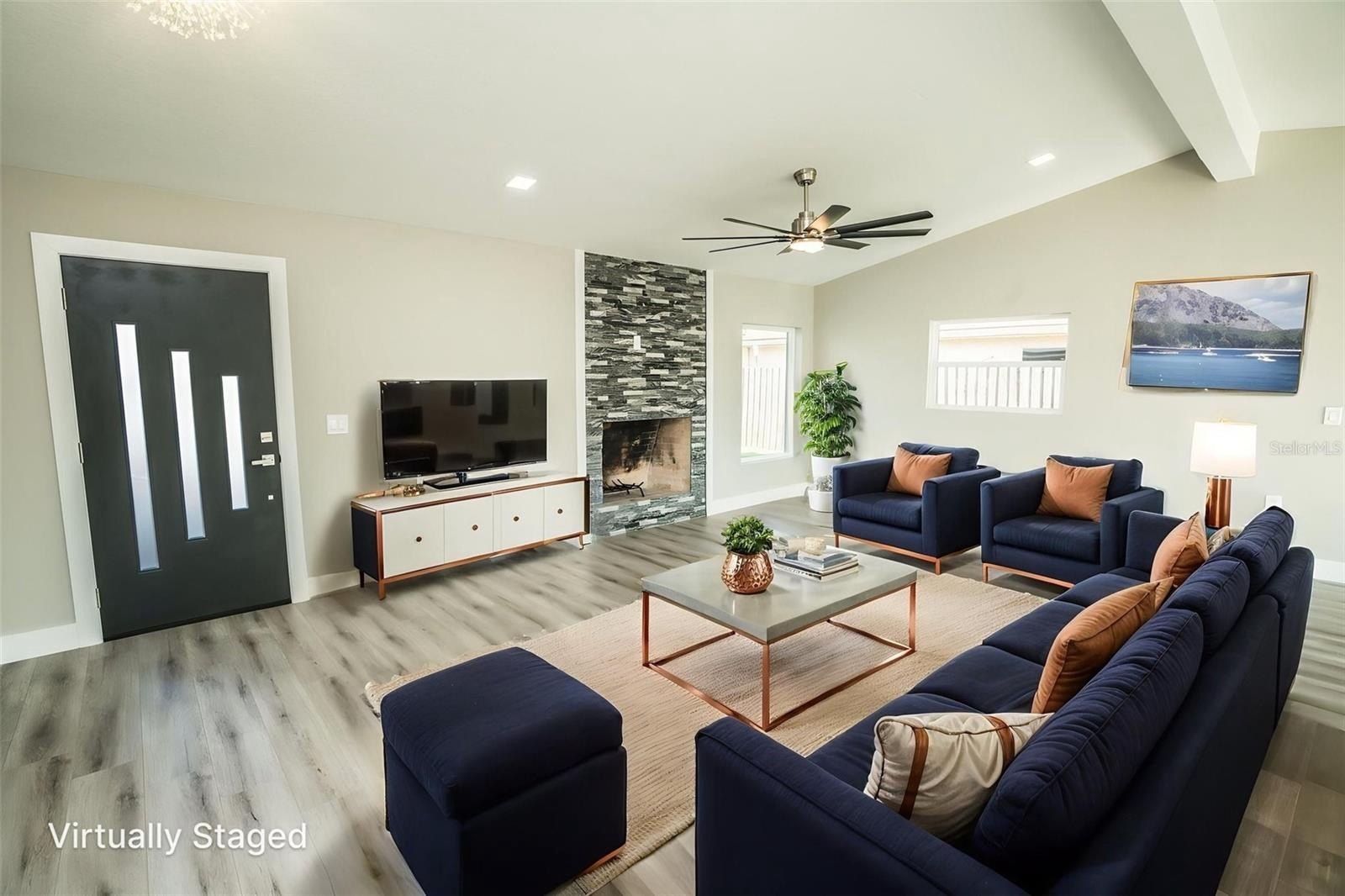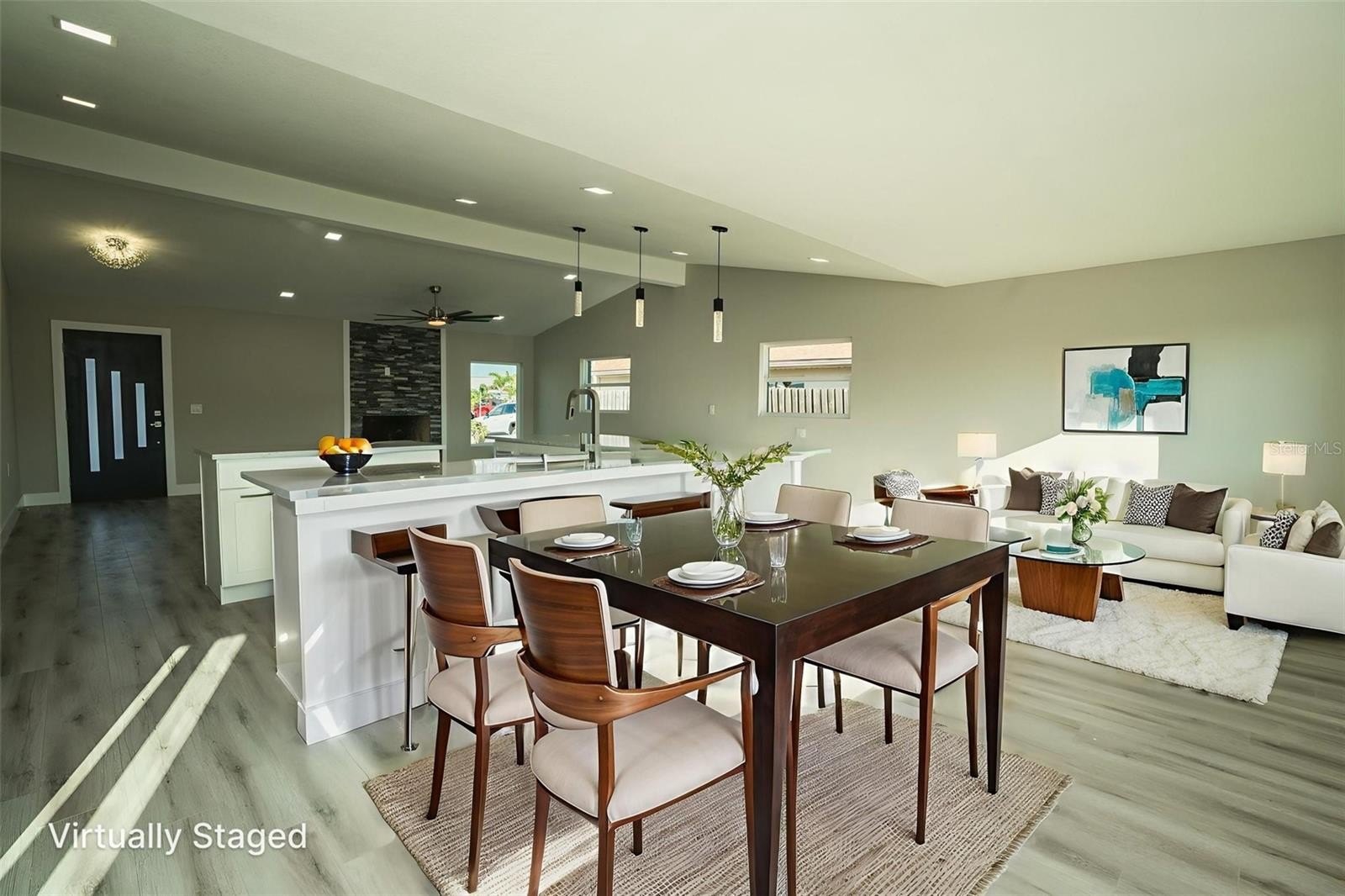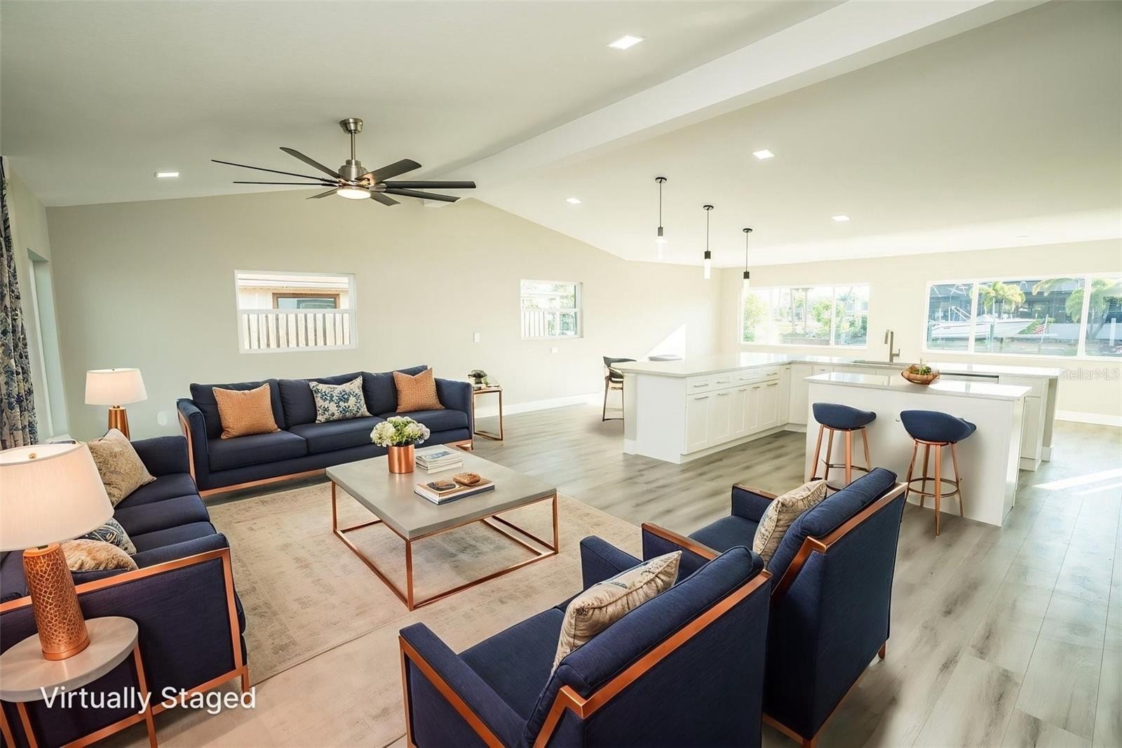 Step inside to soaring volume ceilings that elevate the open layout and fill the home with an airy, spacious feel. Natural light pours through all-new impact-rated windows and sliding glass doors, perfectly framing the beauty of coastal living. The expanded master suite adds over 150 sq. ft. of additional space, featuring a spa-inspired bath and serene water views.