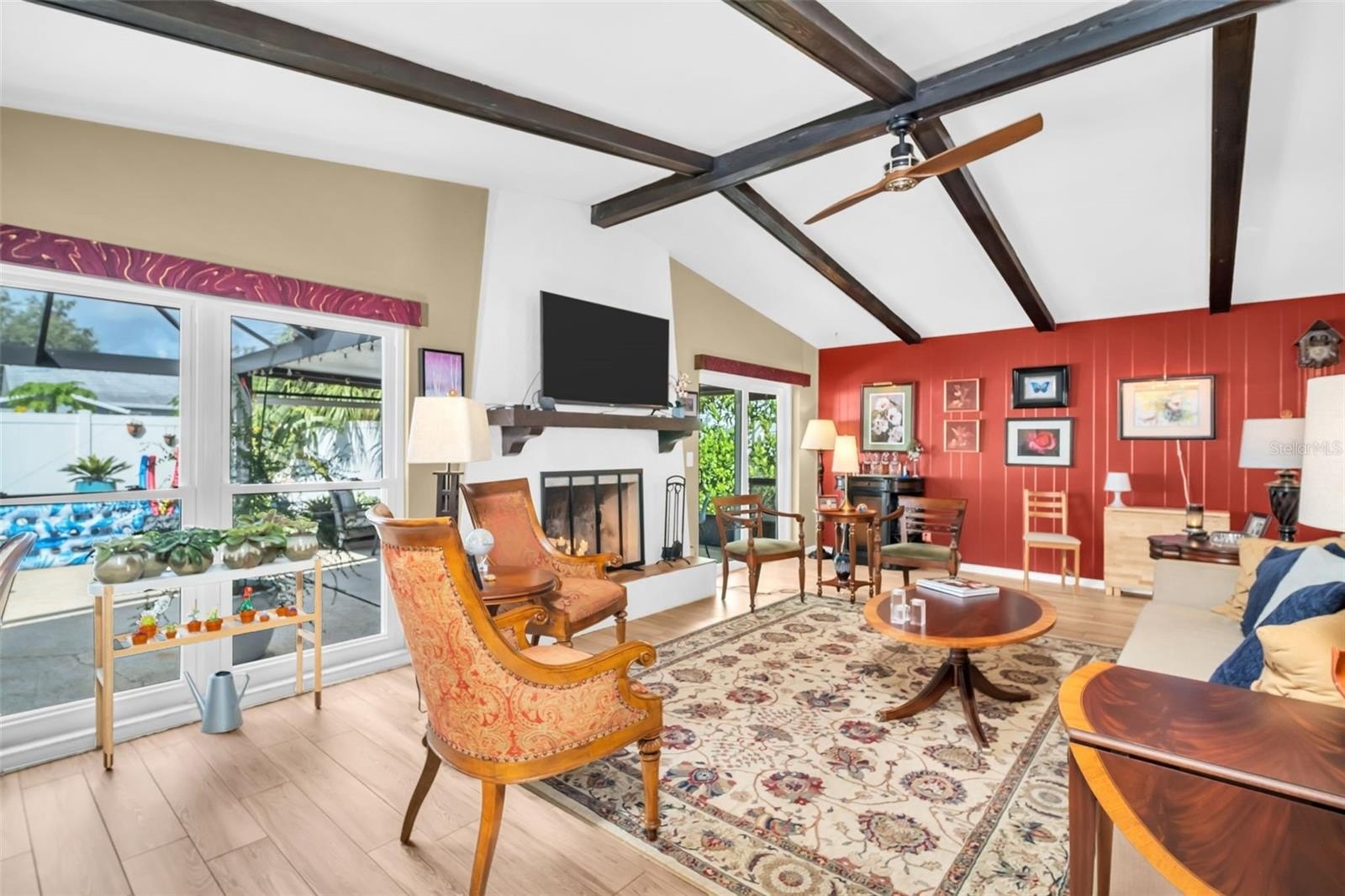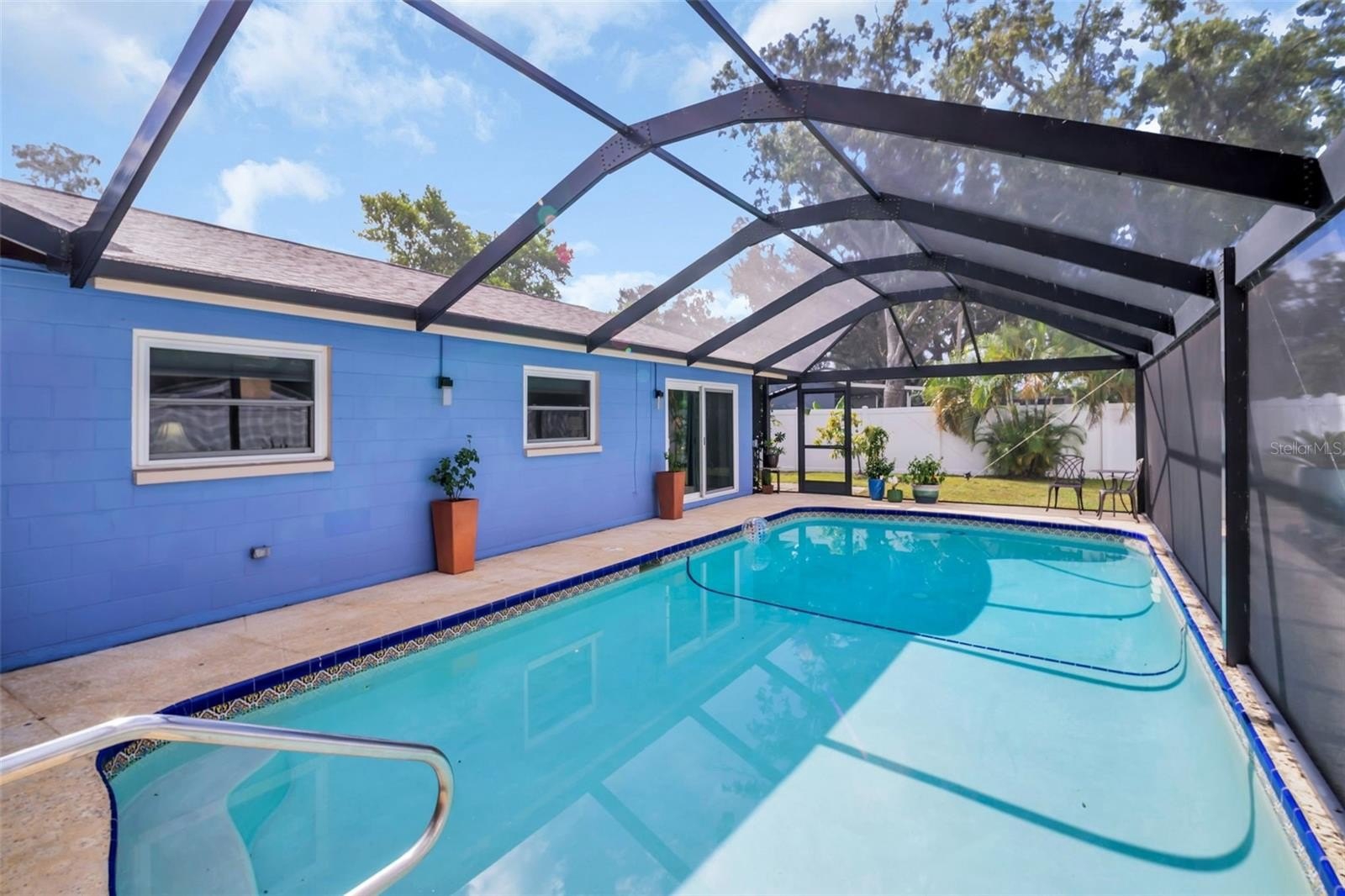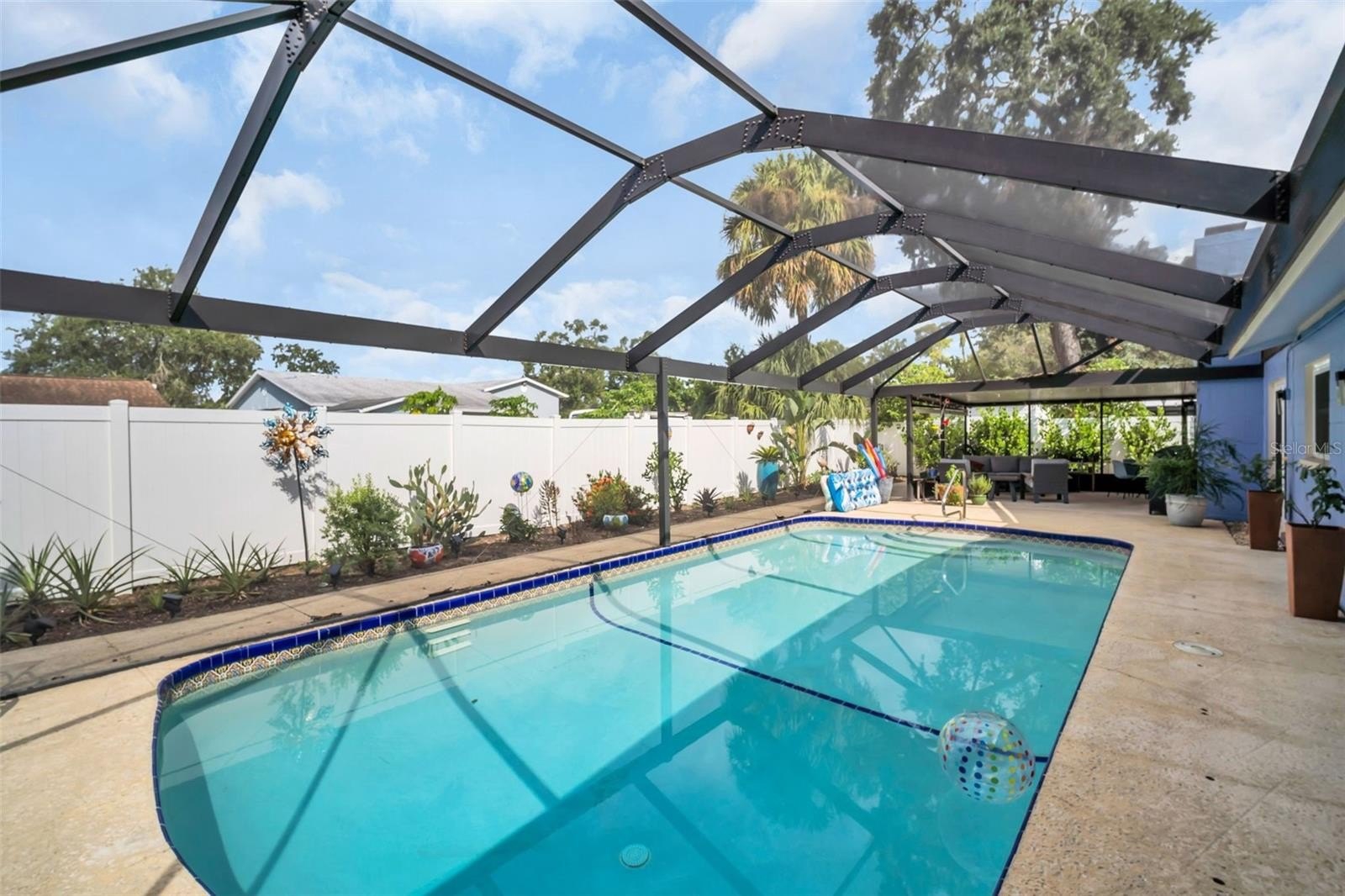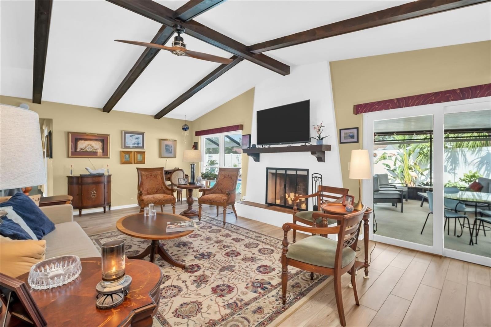 Move in ready and designed for modern living. Don’t miss your chance to make this stunning home your own. This tastefully renovated 4 bed, 2 bath, 2 car garage, pool home sits on a quiet, tree lined street and offers the perfect blend of comfort, style, and convenience. Step inside the foyer to find bright, natural light throughout, a spacious living room with soaring wood-beam ceilings, cozy wood burning fireplace, and adjacent large dining area, all perfect for entertaining. The cook’s kitchen is a true showstopper with custom designer cabinetry including nesting drawers, granite countertops, a large pantry, double oven convection range, and Samsung Bespoke side by side refrigerator. The primary suite is a private retreat featuring a walk in closet, porcelain tile flooring, glass hurricane impact sliders opening directly to the pool area, and en suite bathroom. Three additional bedrooms provide plenty of space for family, guests, or a home office/media room. The 1/5th acre outdoor living space is just as impressive. Enjoy a heated saltwater pool with newer resurfacing, a newer screen enclosure, newer pool heater, and screened lanai, perfect for indoor/outdoor entertaining year round. The fully fenced backyard is a gardener’s paradise with low water landscaping, a raised vegetable and herb garden, and fruit bearing plants including a mango tree, passion fruit vine, curry tree, culinary ginger, and pineapple plants. Additional upgrades include newer: hurricane impact windows and doors, roof, HVAC, 240 4 wire electrical system, ceramic tile, porcelain tile, vinyl fencing, and a new water heater. Home passed a 4 Point inspection (roof, HVAC, electric, and plumbing) on 8/25/25 and did not flood during Helene or Milton. Conveniently located near downtown Tampa, fantastic dining options, schools, shopping, the airport, I-275, and only 30 miles from St Pete and the Gulf Coast beaches, your new home combines tranquility with easy access to everything Tampa Bay has to offer. Schedule your private showing today!