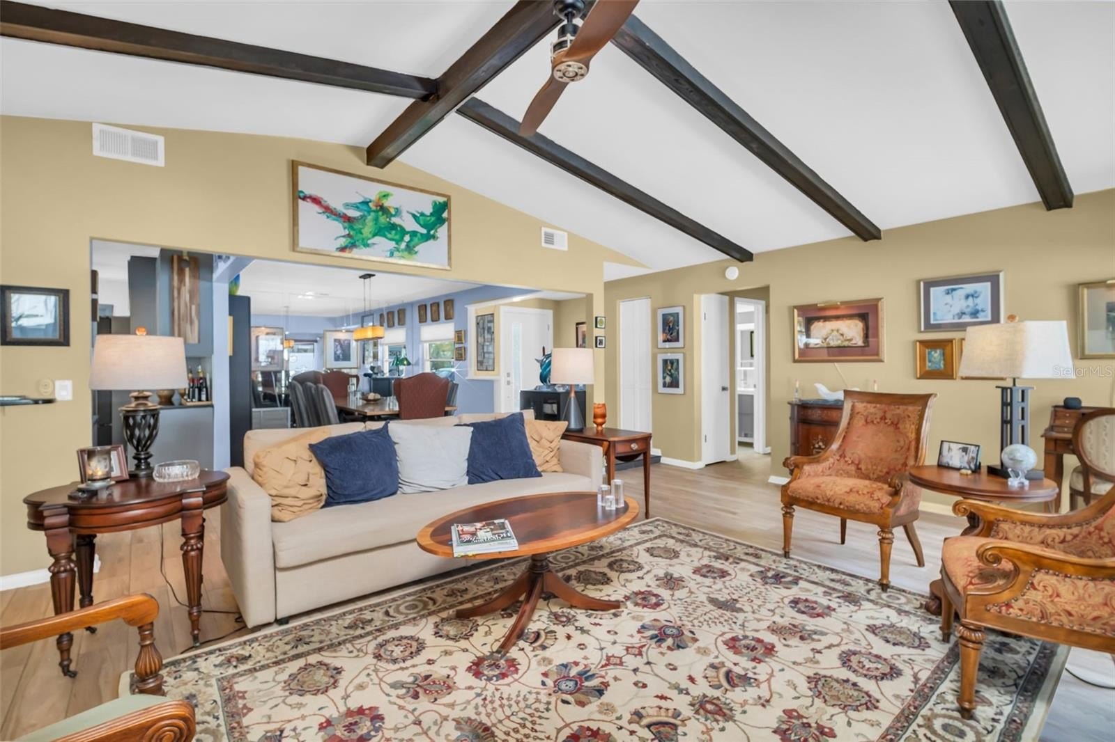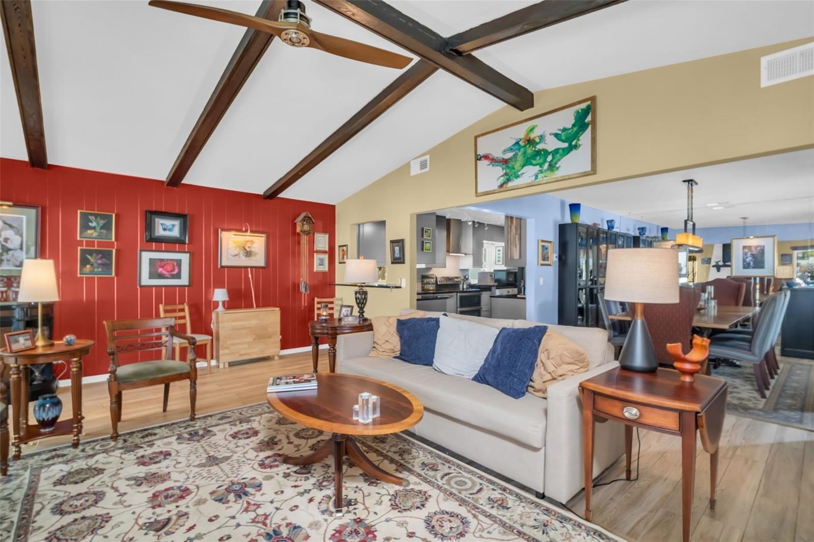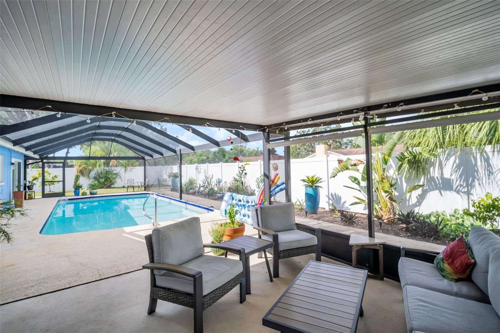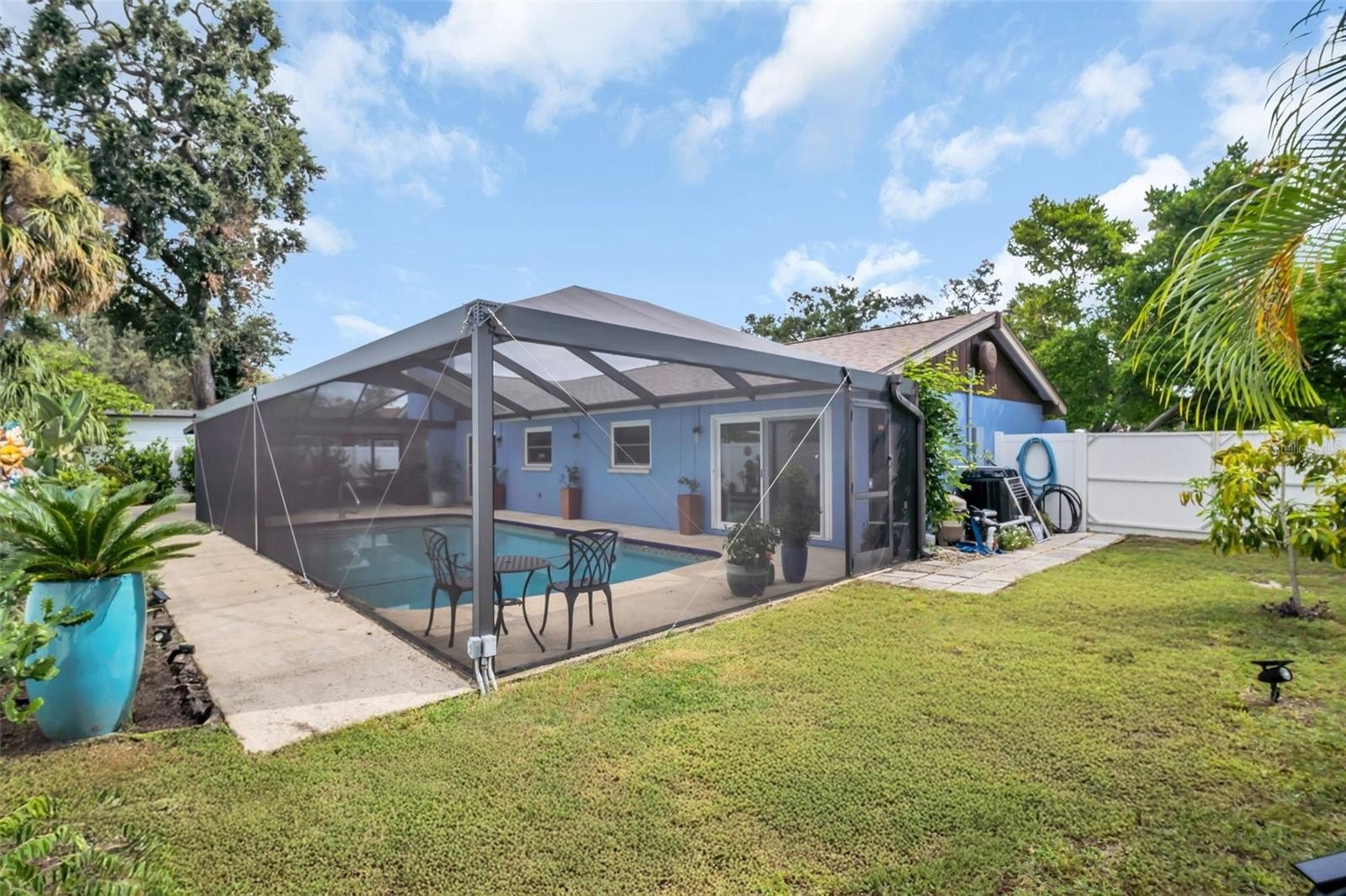 Move in ready and designed for modern living. Don’t miss your chance to make this stunning home your own. This tastefully renovated 4 bed, 2 bath, 2 car garage, pool home sits on a quiet, tree lined street and offers the perfect blend of comfort, style, and convenience. Step inside the foyer to find bright, natural light throughout, a spacious living room with soaring wood-beam ceilings, cozy wood burning fireplace, and adjacent large dining area, all perfect for entertaining. The cook’s kitchen is a true showstopper with custom designer cabinetry including nesting drawers, granite countertops, a large pantry, double oven convection range, and Samsung Bespoke side by side refrigerator. The primary suite is a private retreat featuring a walk in closet, porcelain tile flooring, glass hurricane impact sliders opening directly to the pool area, and en suite bathroom. Three additional bedrooms provide plenty of space for family, guests, or a home office/media room. The 1/5th acre outdoor living space is just as impressive. Enjoy a heated saltwater pool with newer resurfacing, a newer screen enclosure, newer pool heater, and screened lanai, perfect for indoor/outdoor entertaining year round. The fully fenced backyard is a gardener’s paradise with low water landscaping, a raised vegetable and herb garden, and fruit bearing plants including a mango tree, passion fruit vine, curry tree, culinary ginger, and pineapple plants. Additional upgrades include newer: hurricane impact windows and doors, roof, HVAC, 240 4 wire electrical system, ceramic tile, porcelain tile, vinyl fencing, and a new water heater. Home passed a 4 Point inspection (roof, HVAC, electric, and plumbing) on 8/25/25 and did not flood during Helene or Milton. Conveniently located near downtown Tampa, fantastic dining options, schools, shopping, the airport, I-275, and only 30 miles from St Pete and the Gulf Coast beaches, your new home combines tranquility with easy access to everything Tampa Bay has to offer. Schedule your private showing today!