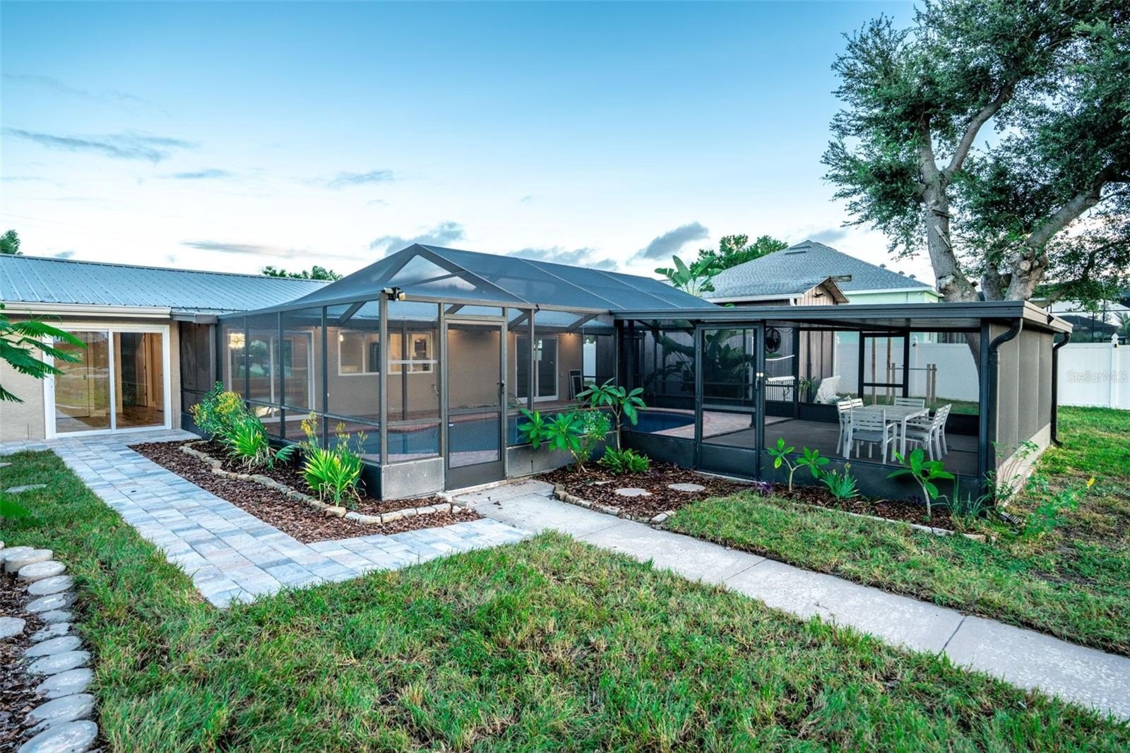Splash and relax in the resurfaced private pool, framed by lush tropical landscaping