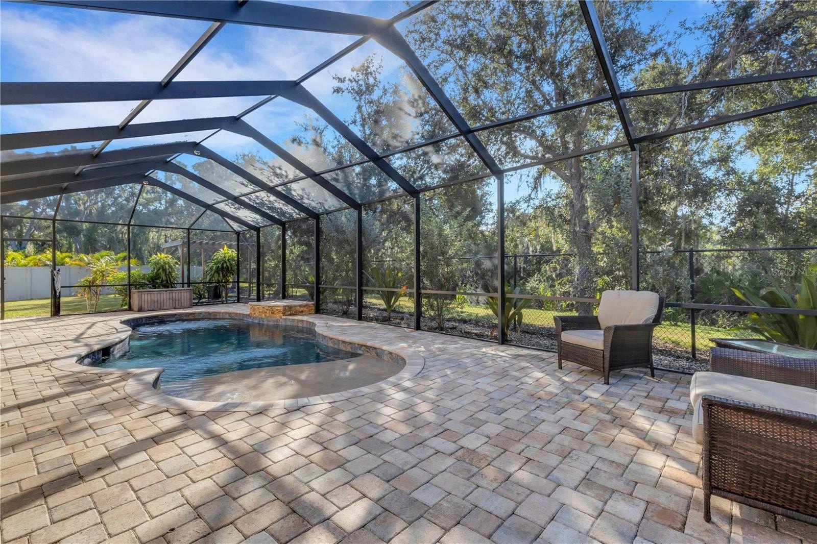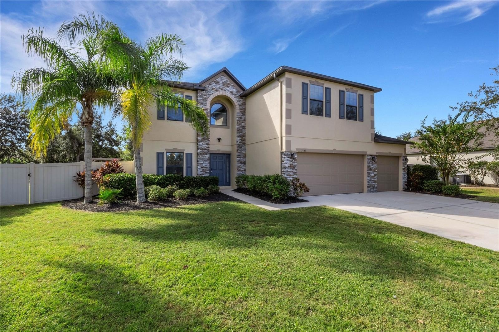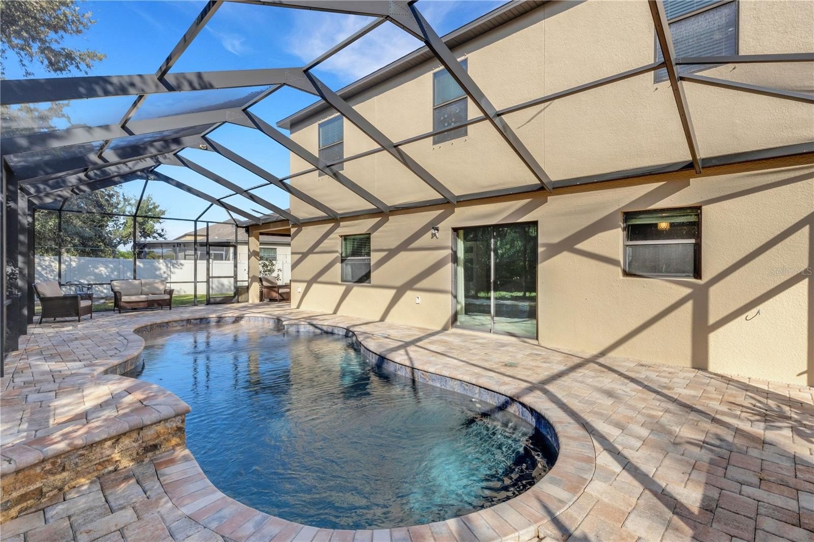 Welcome home to this beautiful 4-bedroom, 2.5-bath pool home with a 3-car garage, perfectly situated on a quiet half cul-de-sac lot. Step inside to fresh interior and exterior paint, brand new vinyl flooring, and a bright open floor plan designed for entertaining. The kitchen island flows into the breakfast nook and great room, overlooking the screened lanai and sparkling saltwater pool (built 2019). The fenced backyard offers privacy and plenty of space for outdoor living and BBQs. Enjoy a flexible front room that can serve as a formal dining area, home office, or playroom. The owner’s suite features generous space, dual sinks, and a walk-in closet.