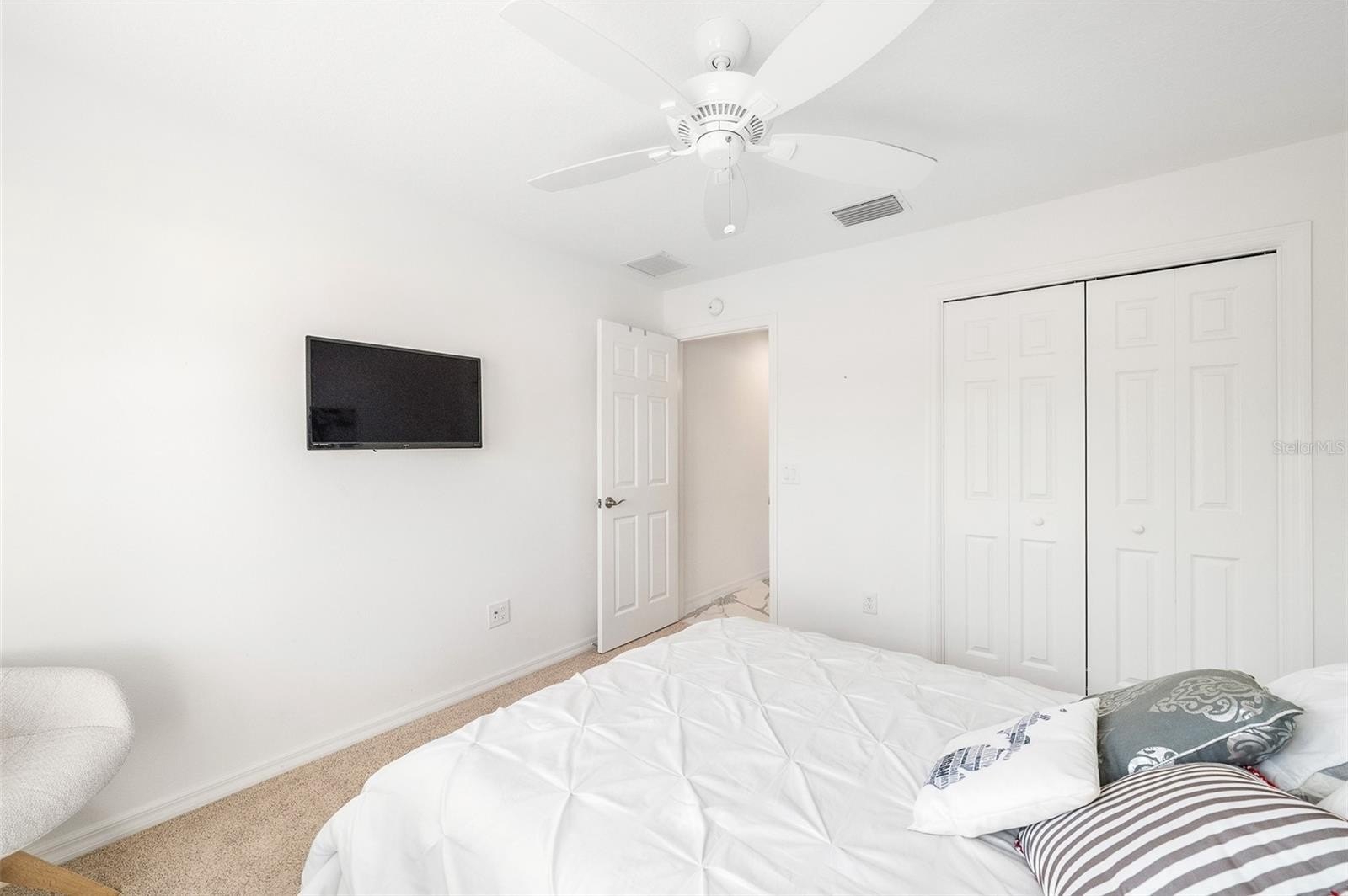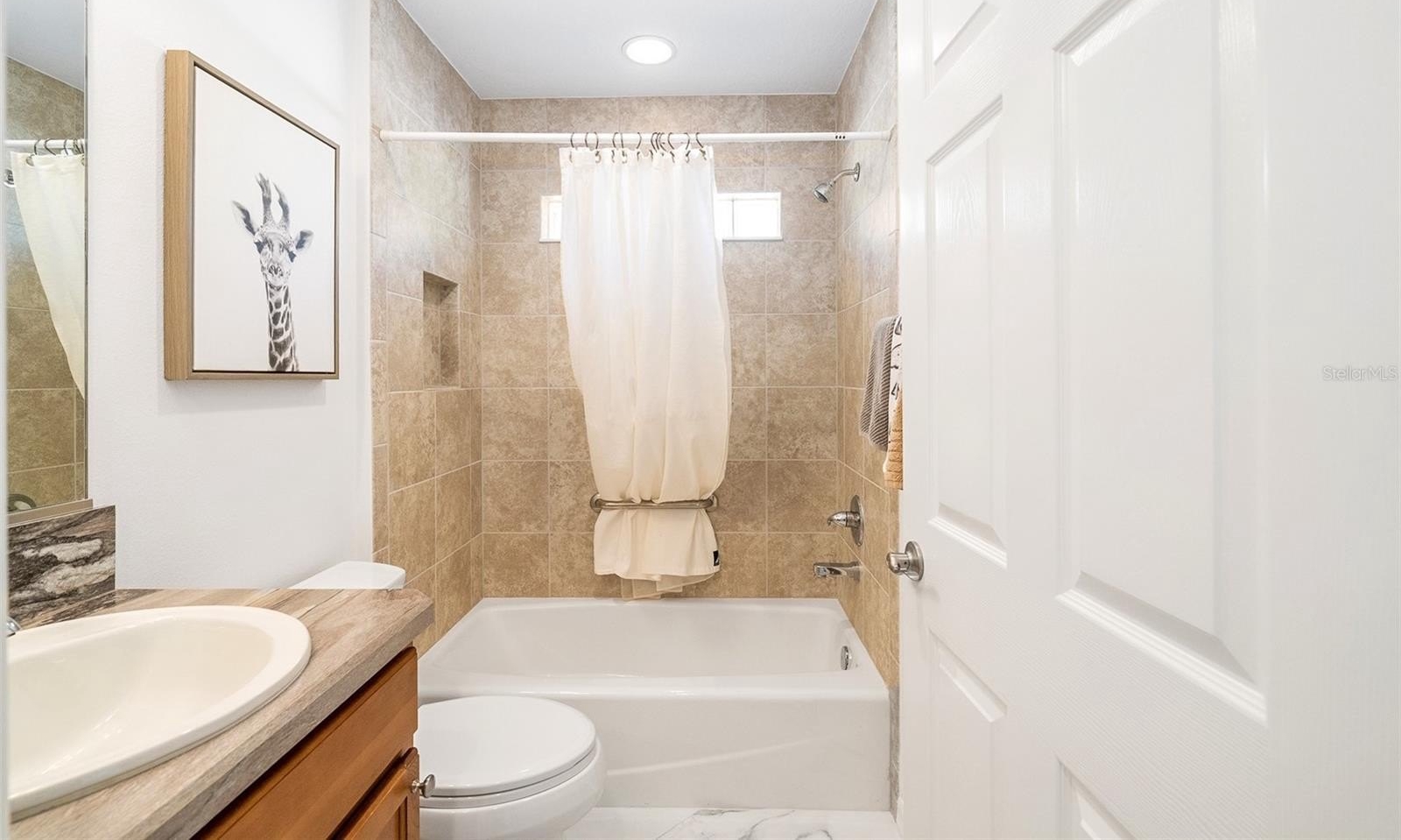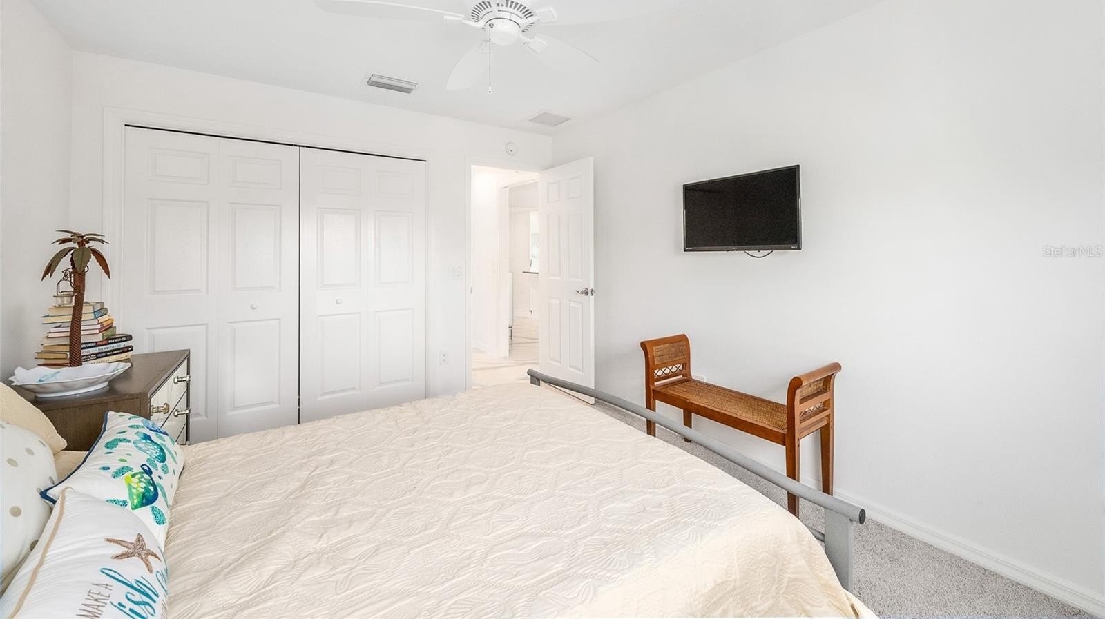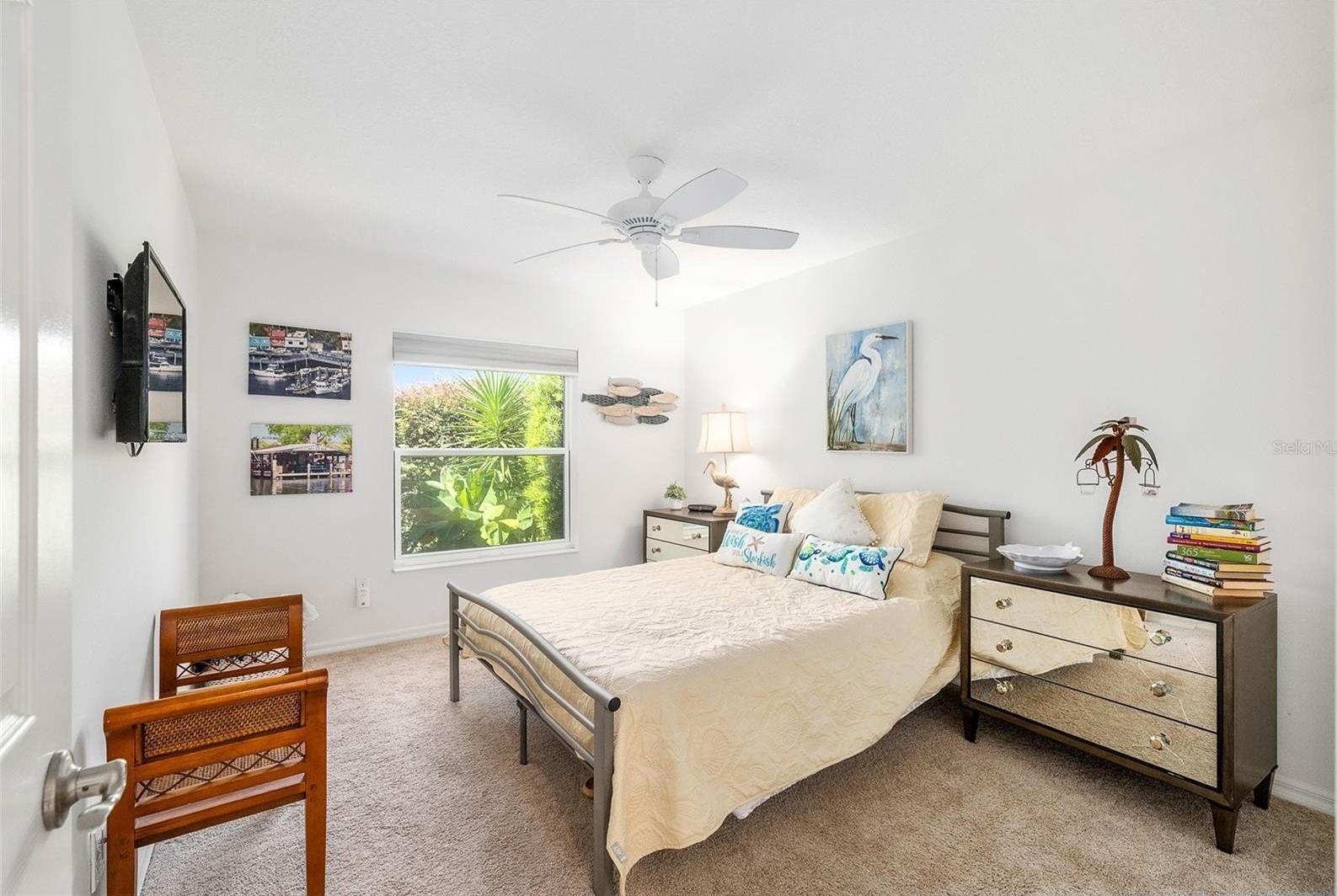 The split-bedroom floor plan provides privacy for guests, and both bathrooms are tastefully updated with modern finishes and a walk-in shower. Enjoy indoor-outdoor living with a screened birdcage patio, ideal for relaxing or entertaining year-round.