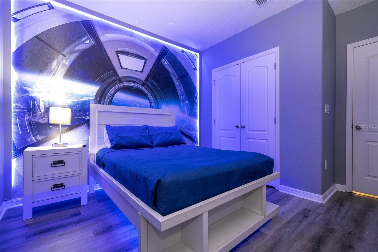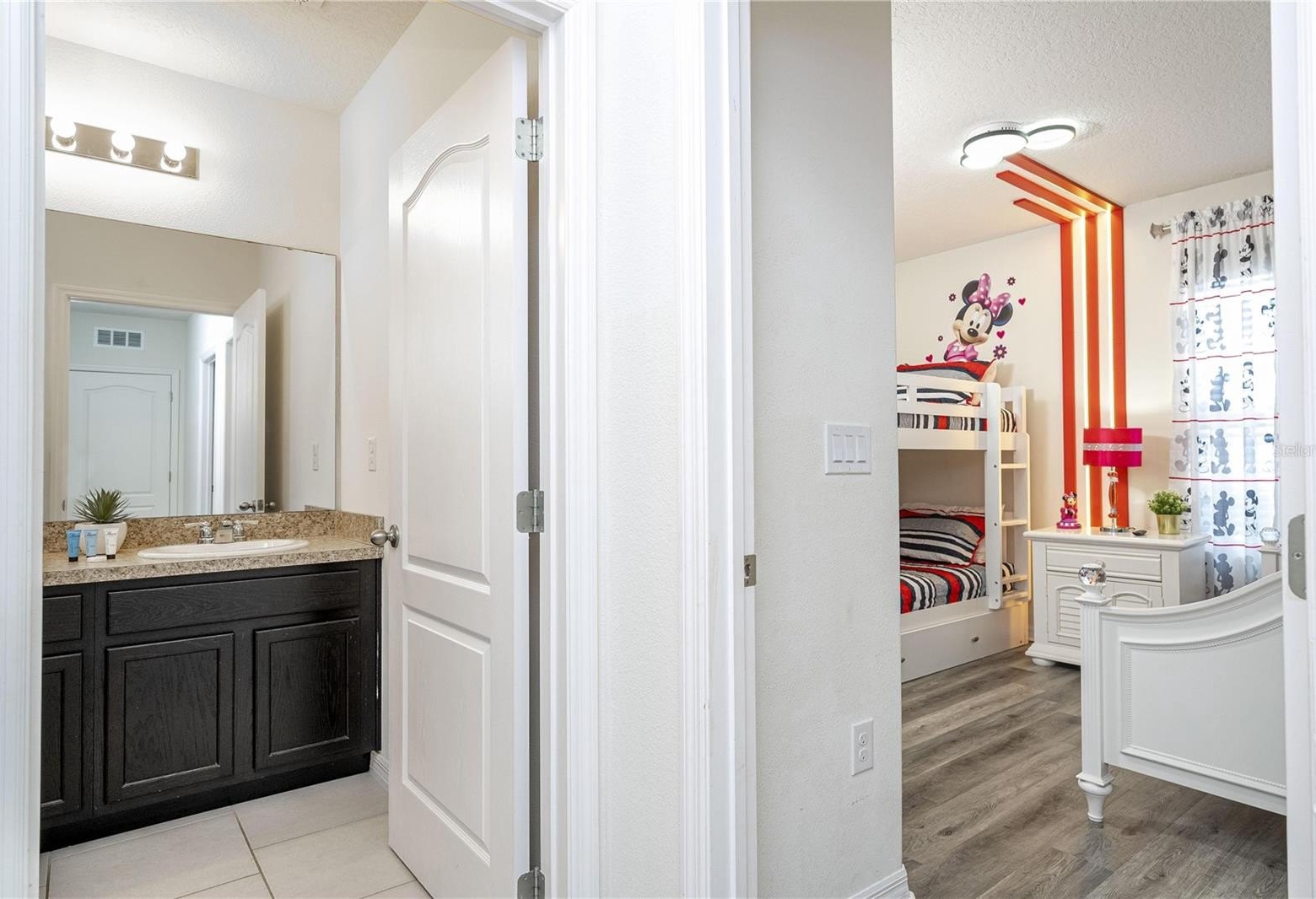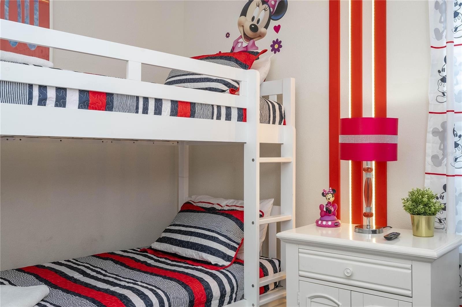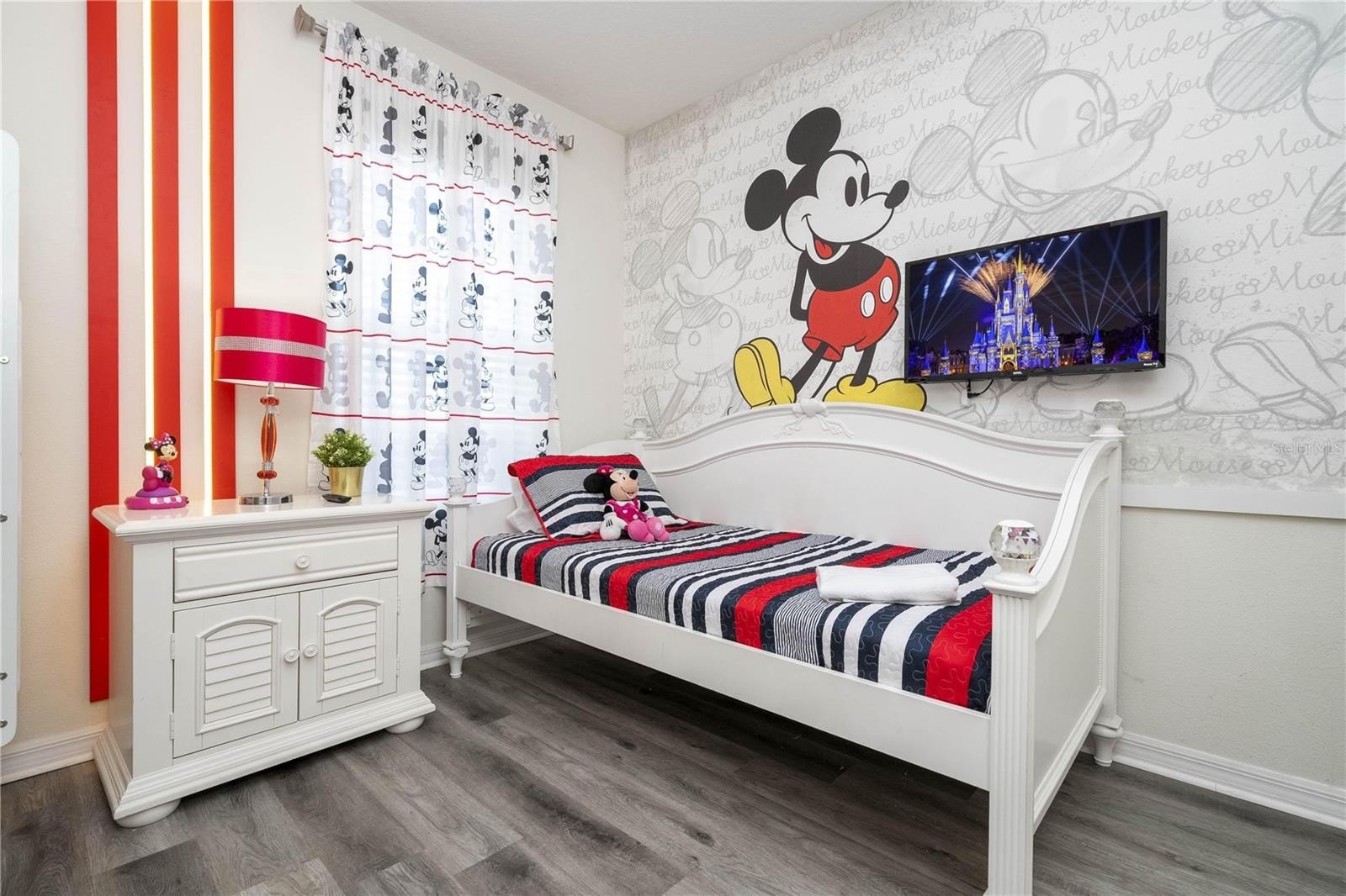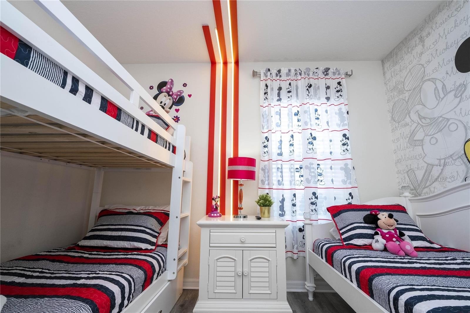 Designed to appeal to vacation guests, no rear neighbours this home includes themed bedrooms inspired by Orlando’s world-famous parks, making it a standout option for short-term rental platforms. The open-concept layout includes a modern kitchen with ample cabinetry, a spacious living and dining area, and a convenient indoor laundry room.