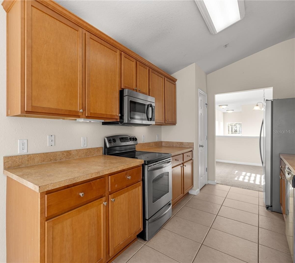 Inside, you’ll find an open, airy floor plan highlighted by dramatic high cathedral ceilings. The central living area features a breakfast counter and flows seamlessly to a spacious lanai with a relaxing partial lake view.