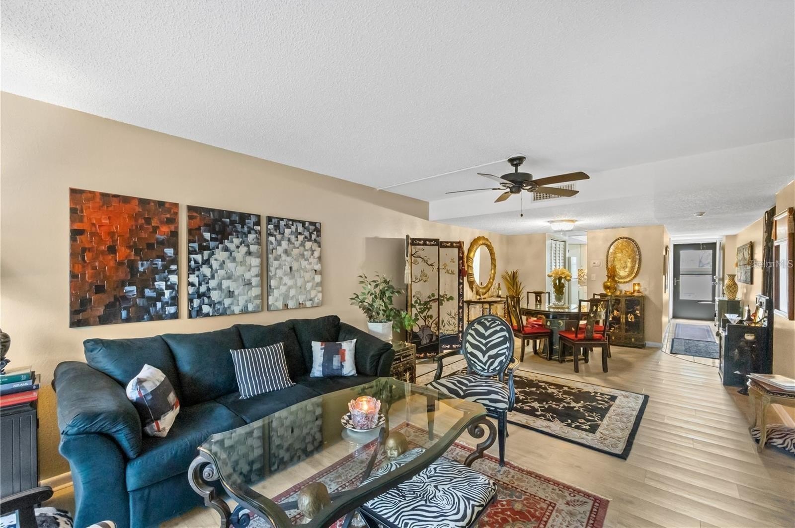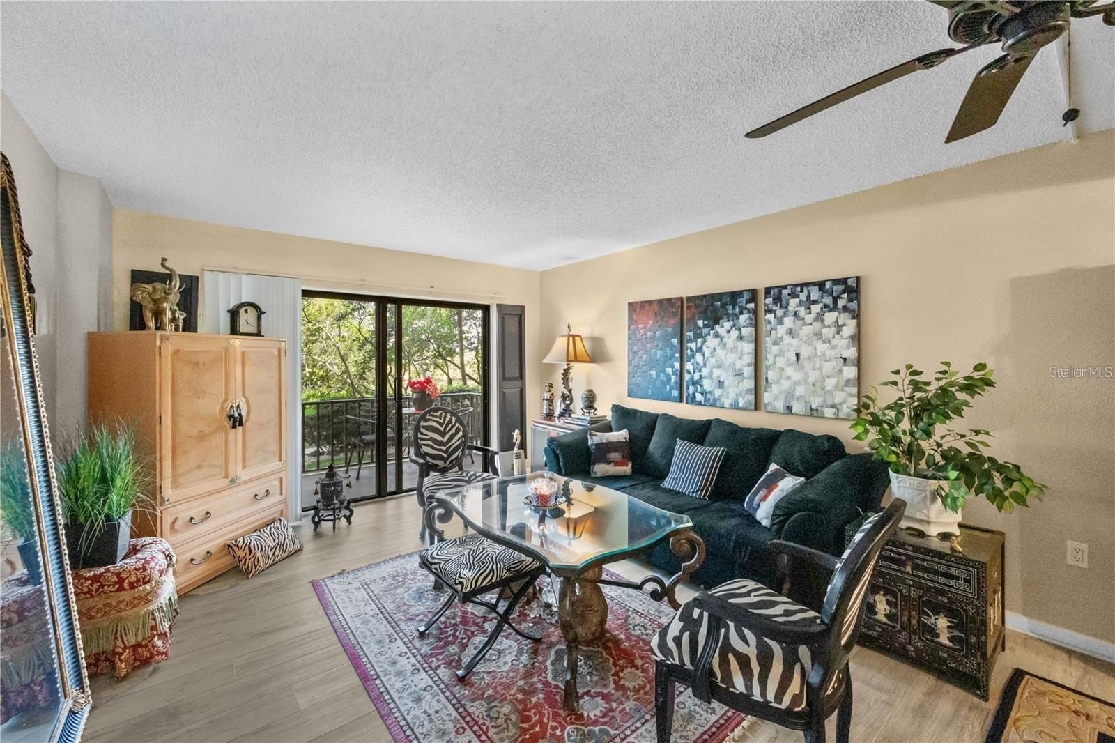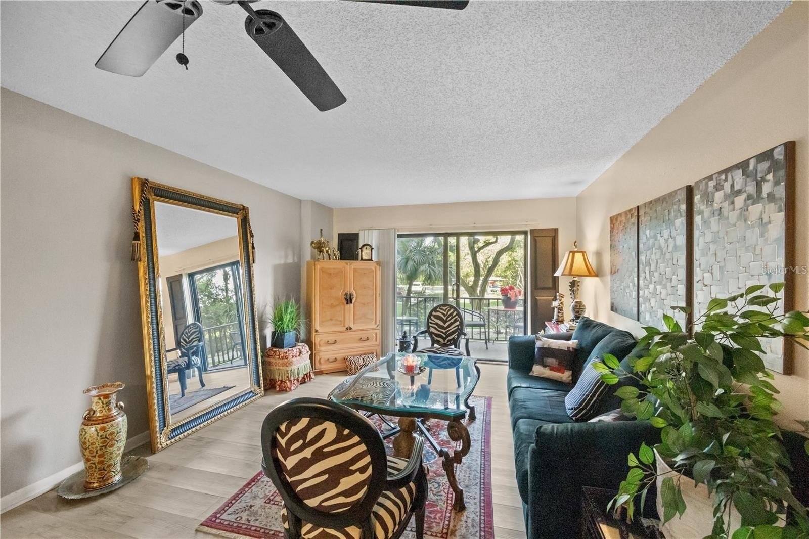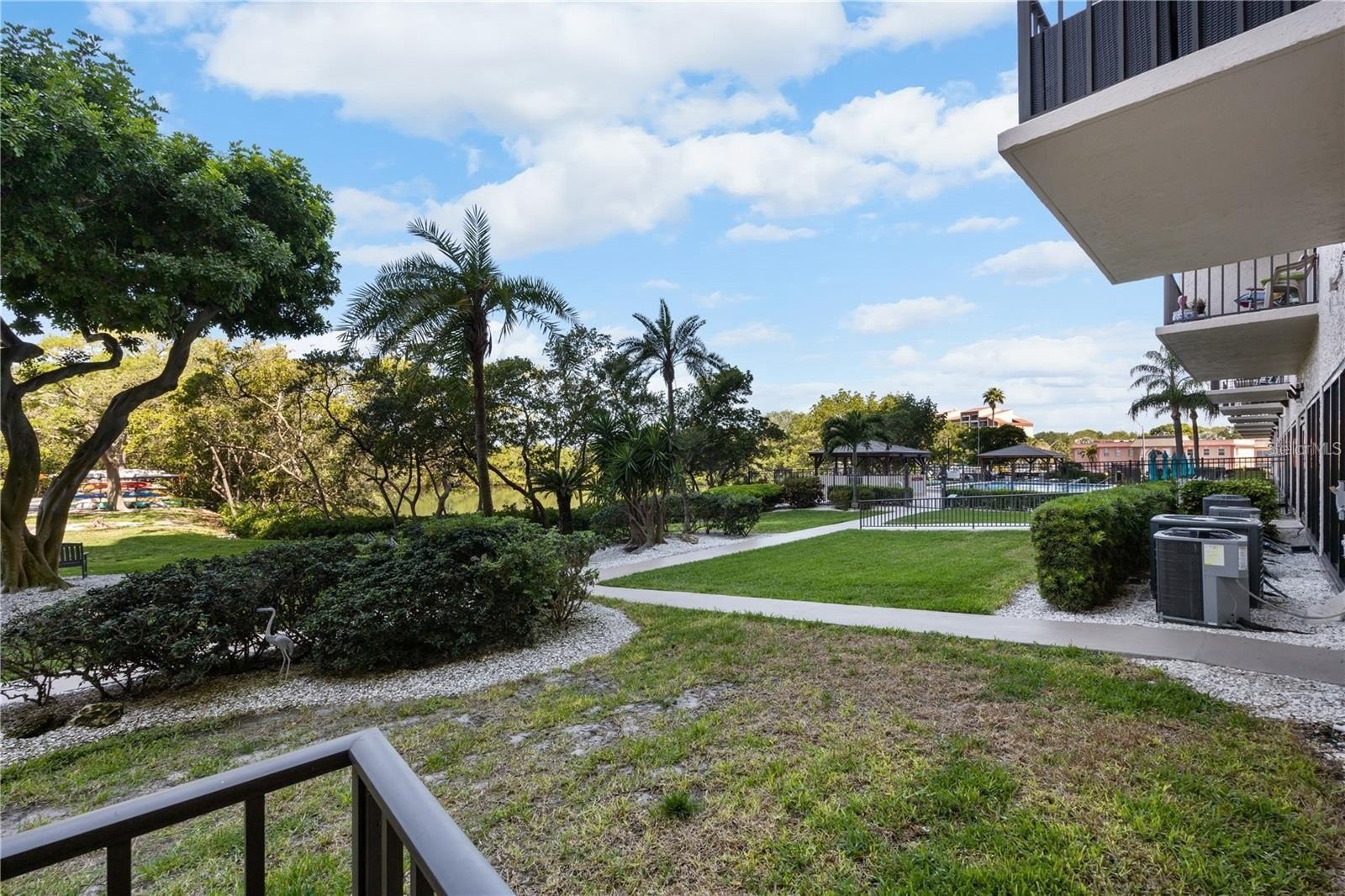 Enjoy a park-like setting from this furnished 2 bedroom, 2 bathroom home perfectly situated on the first floor with peaceful water views. This updated unit features new hurricane-rated windows, a new HVAC system, and recently replaced refrigerator, microwave, and disposal for modern convenience. High-End furnishings, Washer and Dryer hook-up in the unit, Vinyl plank flooring throughout the main living area, updated lighting, storm door, Hurricane Sliders, ceiling fans and custom window treatments are just some of the many upgrades you will find. The spacious primary bedroom with its private en suite bathroom also boast a walk-in closet. There is also an additonal storage unit for all your Florida Toys located in the locked Laundry room.