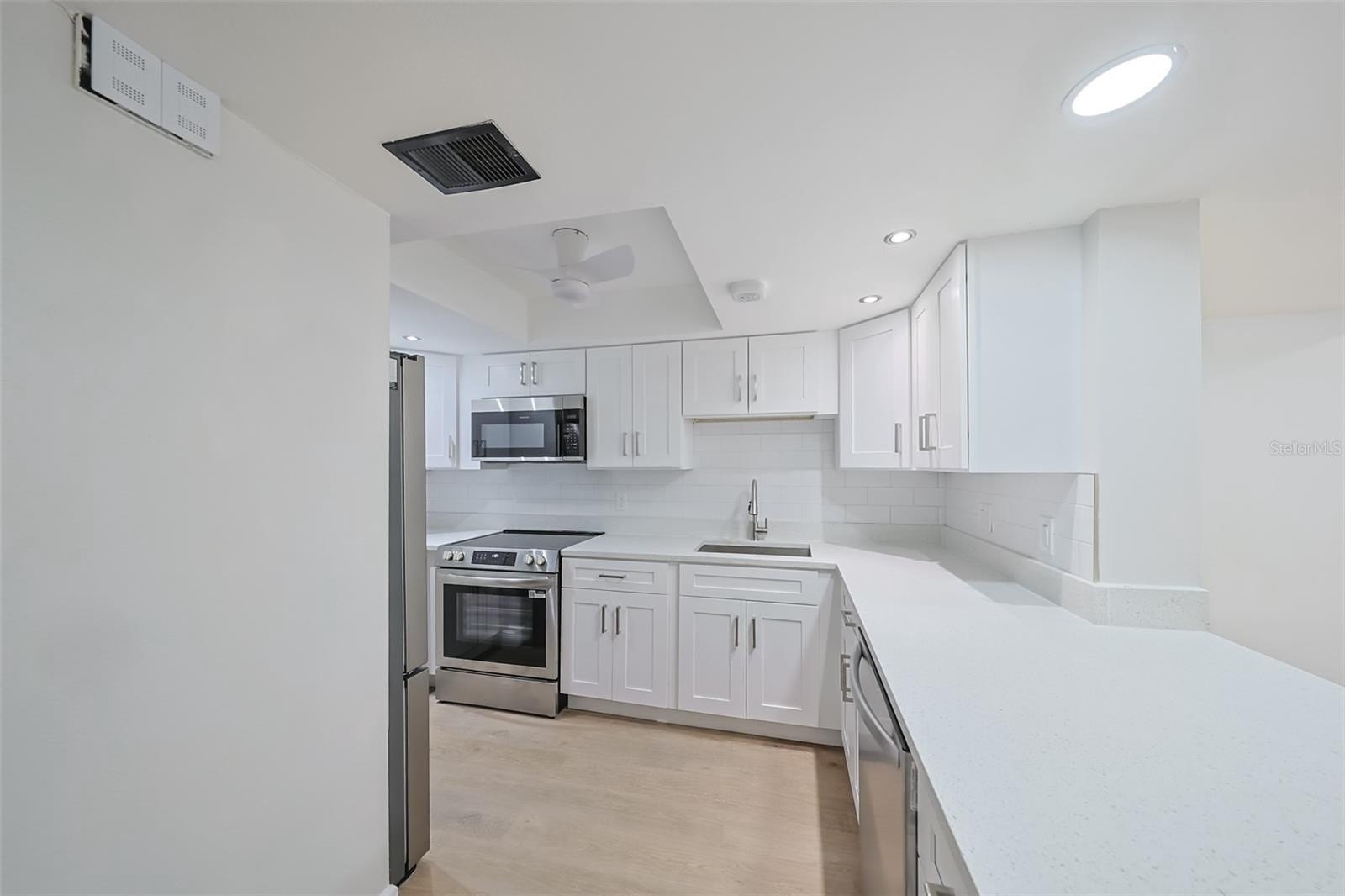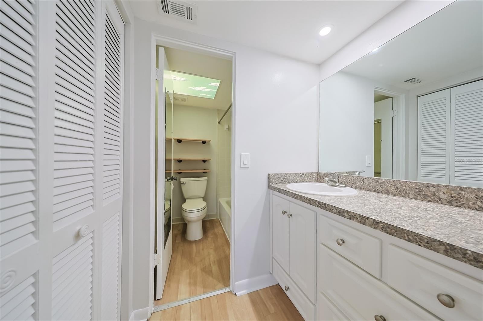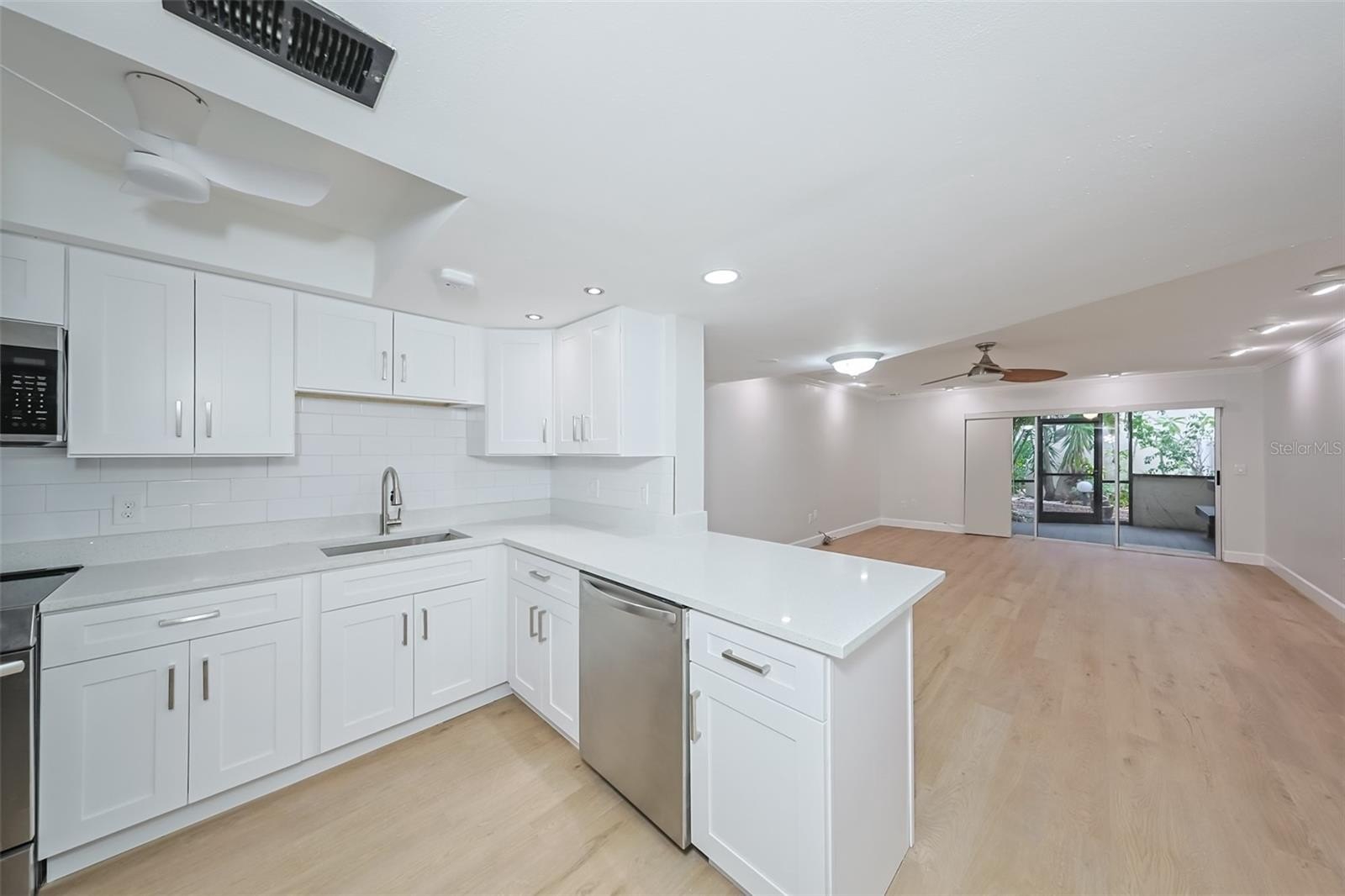 One or more photo(s) has been virtually staged. One or more photo(s) has been virtually staged. Step into this light-filled urban retreat “corner condo” and discover true Florida living: • Open-concept floor plan, with complementing wood laminate flooring throughout the condo, Designer shade of light dove gray, light enhancing fresh paint for entire condo, recessed daylight lighting looks so bright, airy and inviting. • The gourmet kitchen is a chef's delight, complete with new sleek quartz countertops, a spacious island, farm type new deep kitchen sink, with new bright under cabinet lighting throughout the kitchen, and ALL new top-of-the-line kitchen appliances, never used, and still under warranty. • Spacious double pantry, adjacent to the kitchen, and along the entry foyer, an extra quartz topped hallway cabinet with drawers for a perfect built in bar with tons of storage. No wasted space in this condo! • Private screened in patio on ground floor with large storage closet, to enjoy outdoor dining, and within 100 yards of the outdoor heated year round pool • Newly renovated downstairs half bath with new shaker type vanity and quartz countertop, and new wall mounted mirror. • Upstairs the primary bedroom includes full bathroom with shower/tub combo, recessed lighting in bathroom and bedroom, new updated ceiling fans with remote controlled dimmer switches and fan speed setting. Primary bedroom closet has upgrades built in for shoes & accessories storage, and also includes a cedar chest for safely stowing away seasonal items. • Guest room/ office is full of spacious closets and has a full size Murphy Bed with bookshelves making this a perfect office by day, and guest room by night. • 2nd floor full sized bathroom recently regrouted, additional 2nd floor storage closets, and a full sizes washer and dryer included in laundry room closet with added shelf storage behind louvered doors. • Corner condo is very close proximity to community parking lot, and only steps away from your private parking spot, community clubhouse and year round heated pool. • New Carrier HVAC unit replaced in 2025