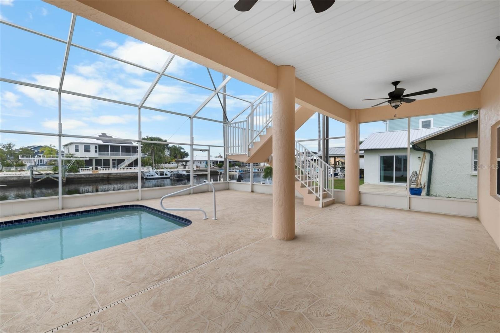 Recent upgrades include new vinyl flooring (2025), quartz countertops (2025), updated primary shower (2025), new roof (2024), and new hot water heater (2023), custom pool lighting. Enjoy peace of mind with second level impact windows/storm shutters, low homeowner’s insurance ($2,218/year), and transferable flood insurance of $1123/year—a savings of over $5,600 on flood insurance annually!