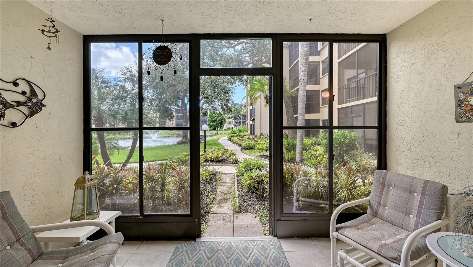 Welcome Home to this lovely, well-maintained first floor condo in 55+ community of Wood Park at Desoto Square in Bradenton! A stunning tropical oasis, Wood Park is a gated serene retreat with lush tropical landscaping and resort style amenities in the heart of central Bradenton. This first-floor residence is clean and bright, with a split bedroom plan and open concept living and dining spaces. The kitchen is fully equipped and features tons of storage in warm, wood-look cabinets and a cozy breakfast nook with open shelves. The secondary bedroom just off the entrance has its own bath and easy access to the stacked in-unit LAUNDRY closet! The living/dining rooms have gorgeous tile flooring and flow out to the screen enclosed balcony with storm windows and a breathtaking view of the pond, fountain, and mature tropical foliage. The primary suite is spacious and features a walk-in closet, and an en-suite bathroom with a tiled walk-in shower. This home is fully furnished and move-in ready so that you can start enjoying the Florida lifestyle you’ve imagined! Spend days cooling off at the community pool, have picnics by the lake, play shuffleboard on the grounds surrounded by gorgeous tropical trees and flowers, or join neighbors in the clubhouse for a workout or a game of pool. Anna Maria Island is just minutes away, and it's convenient to downtown Bradenton’s nightlife, Riverwalk and the new River Taxi to Anna Maria Island. LeCom Park is nearby for Bradenton Marauders games and Pittsburg Pirates spring training too! Call today to schedule your showing!