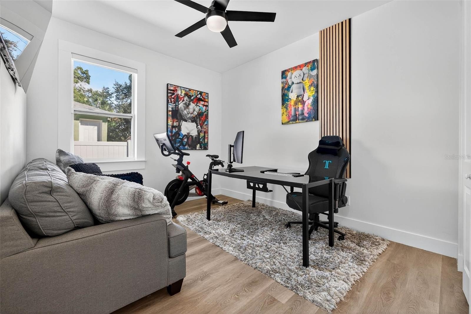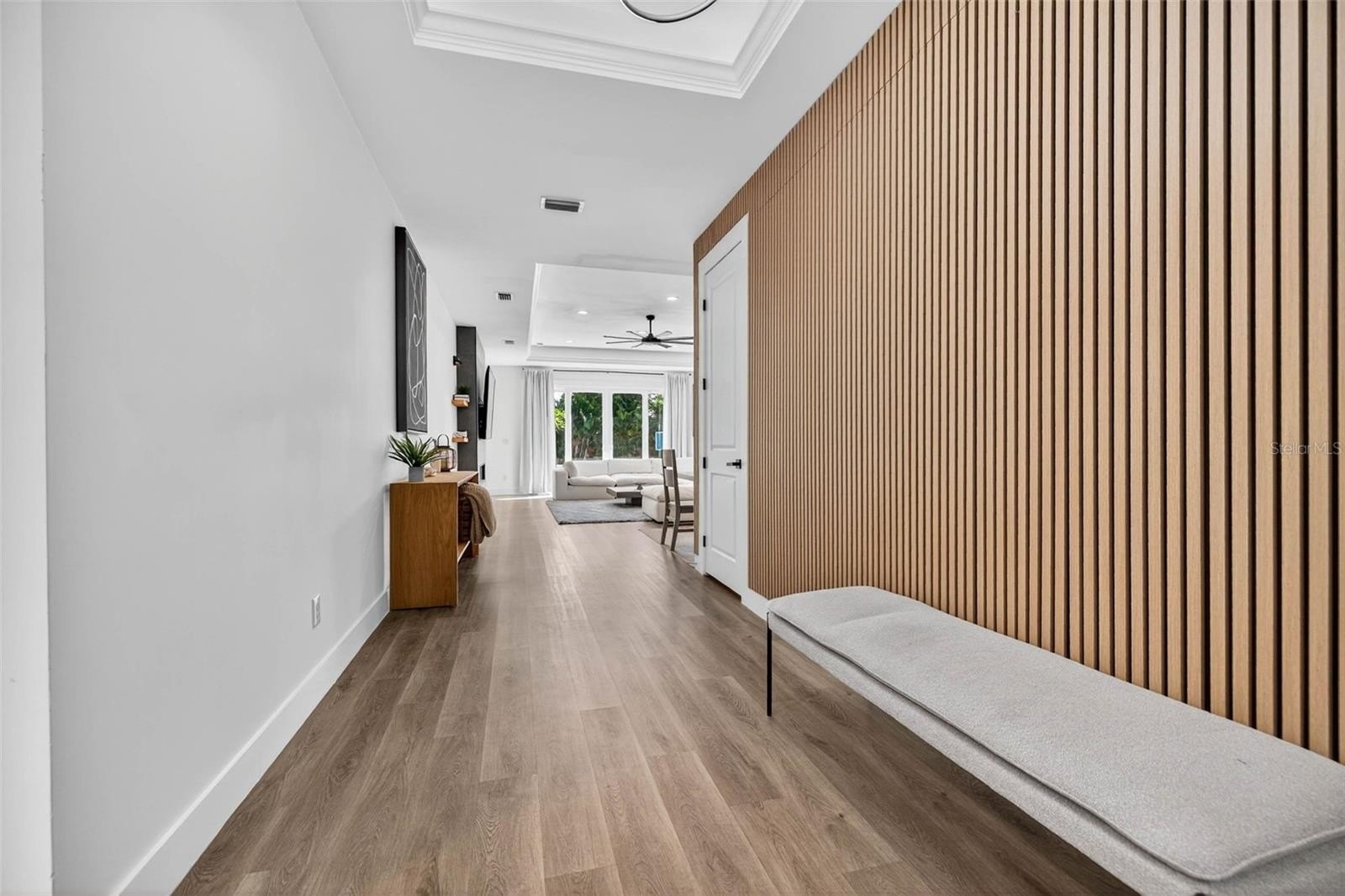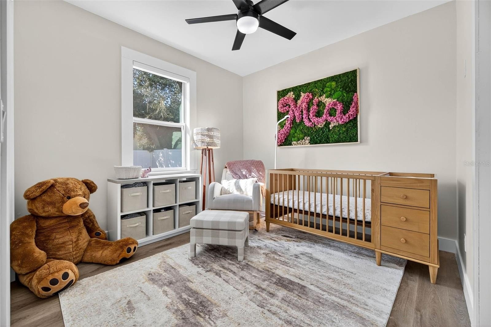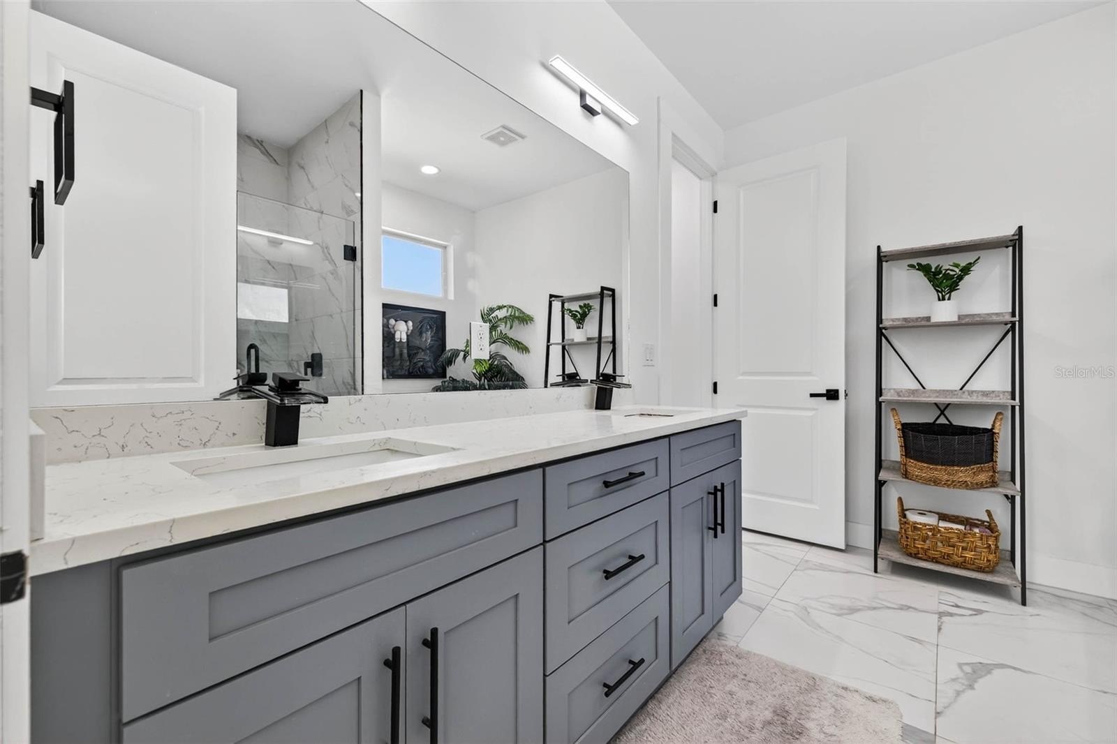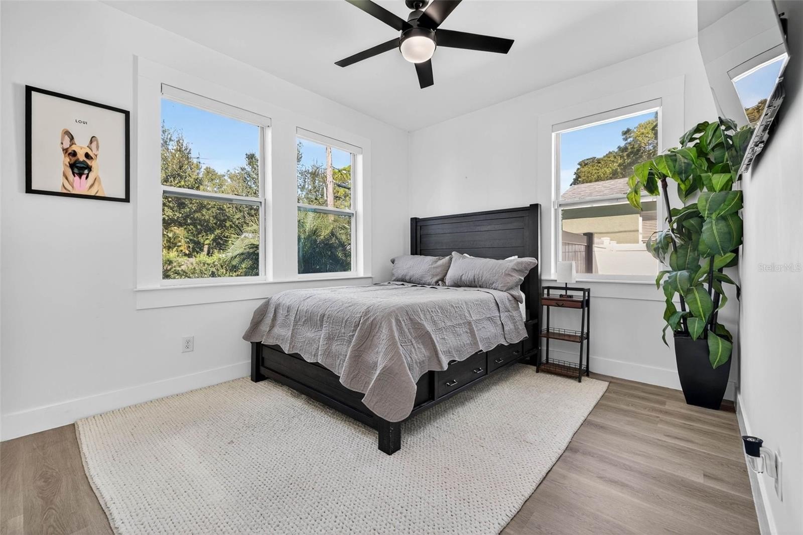 Located on a quiet street, this 4 bed, 3 bath pool home is practically new construction and sits on a third of an acre lot with a 3 car garage. Built in 2023, this home is filled with beautiful finishes and is the perfect opportunity to own new construction without waiting for the long build times. The home has high 9.5 foot ceilings giving a lux and airy feel throughout. The living space is located in the back of the home creating privacy from the street and has an open floor plan between the living, dining, and kitchen area. The chef's kitchen has plenty of cabinet space and the cabinets are topped with a beautiful quartz. The oversized kitchen island has quartz waterfall countertops and is the perfect place for entertaining and everyday meals with its barstool space. The dinning space is set off to the side of the kitchen for an intimate feel and has a modern accent wall. The living room has plenty of space for the large sectional and the whole back wall of the living and kitchen space have large sliders leading out to the outdoor living space and backyard. The living room has a stunning fireplace as it's focal point with decorative tile and flanking wood floating shelves.The tray ceilings in the space have beautiful uplighting and give off a warm and cozy feel. The home has the ideal floor plan with the bedrooms separately located away from each other. The primary suite is located privately in the back of the home with large glass sliders overlooking the backyard. The room is large in size and has tray ceilings with up lighting. The primary suite bath has double vanity sinks with a soaking tub, and a tiled walk-in shower with a glass enclosure. The suite also includes a private water closet and a walk-in closet that has been fully built out. One of the guest bedrooms is off of the dining space and has its own private ensuite bath with a shower-tub combo complete with a glass enclosure. The remaining two guest bedrooms and common bath are conveniently located off of the foyer towards the front of the home which are perfect for a home office or visiting guests. The home is also equipped with electric roll blinds. Outside, the backyard oasis offers the perfect indoor/outdoor living situation with an extensive paver patio with plenty of space for dining and lounging. The salt water pool has a sun shelf that makes it the perfect spot to relax and cool off from the hot Florida sun. The pool only takes up a small portion of the homes backyard as there is plenty of green space for activities and a large side yard where there is a detached 1 car garage. The garage is multi-functional and is currently being used as a home gym. This home is central to all that St. Pete has to offer. You are minutes to Walter Fuller Park with tree lined paths providing lots of opportunities for bike riding, walking, and jogging. The park also has multiple sports courts, including pickleball courts, a pool, and a scenic trail around Jungle Lake. The home is just a short distance away from popular restaurants, groceries, shopping, and every need necessities. You are situated perfectly between the festivities of Downtown and the attractions of the Tyrone area. The popular white sand beaches of the Gulf of Mexico are just a few minutes away and the Tampa International Airport is under 30 minutes making travel and commuting easy.