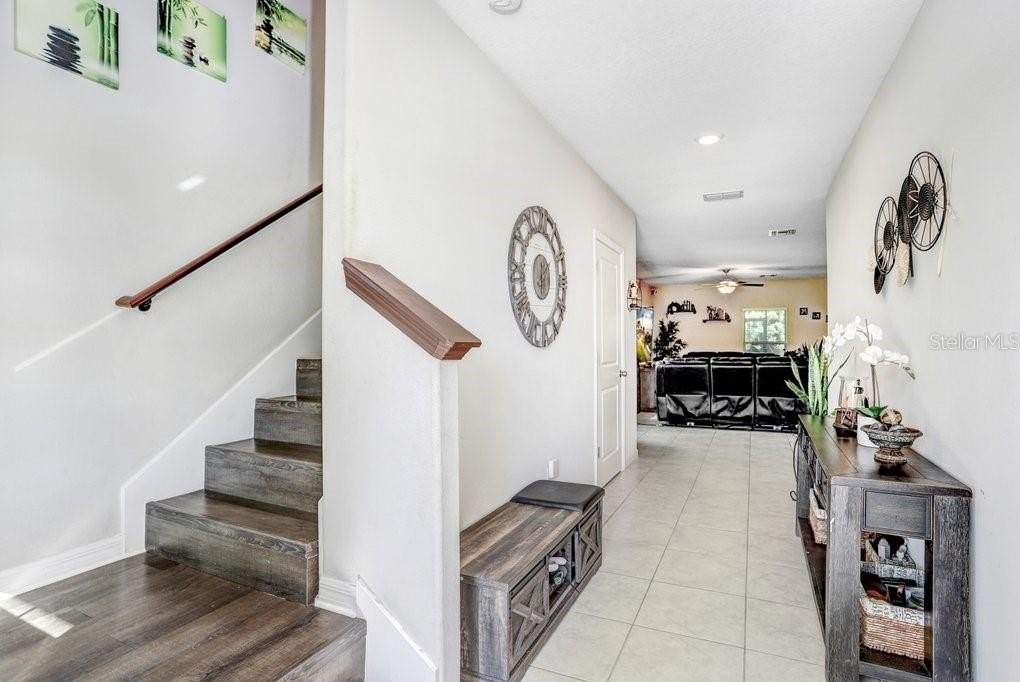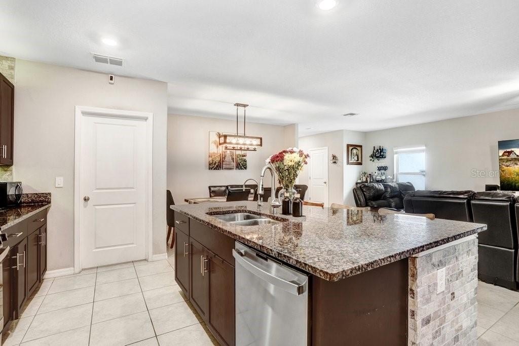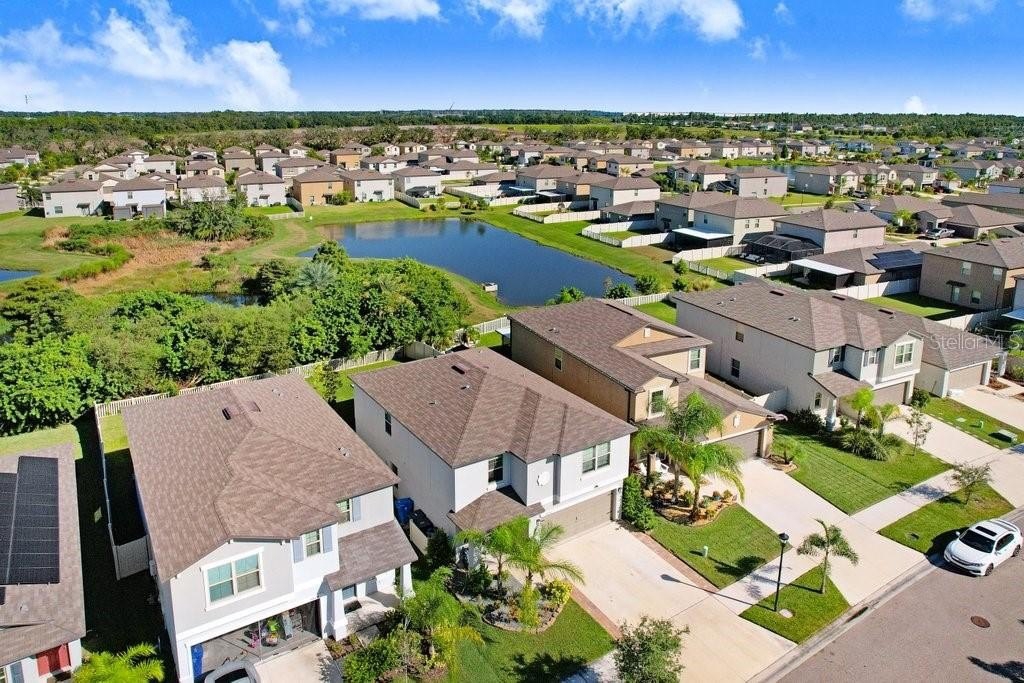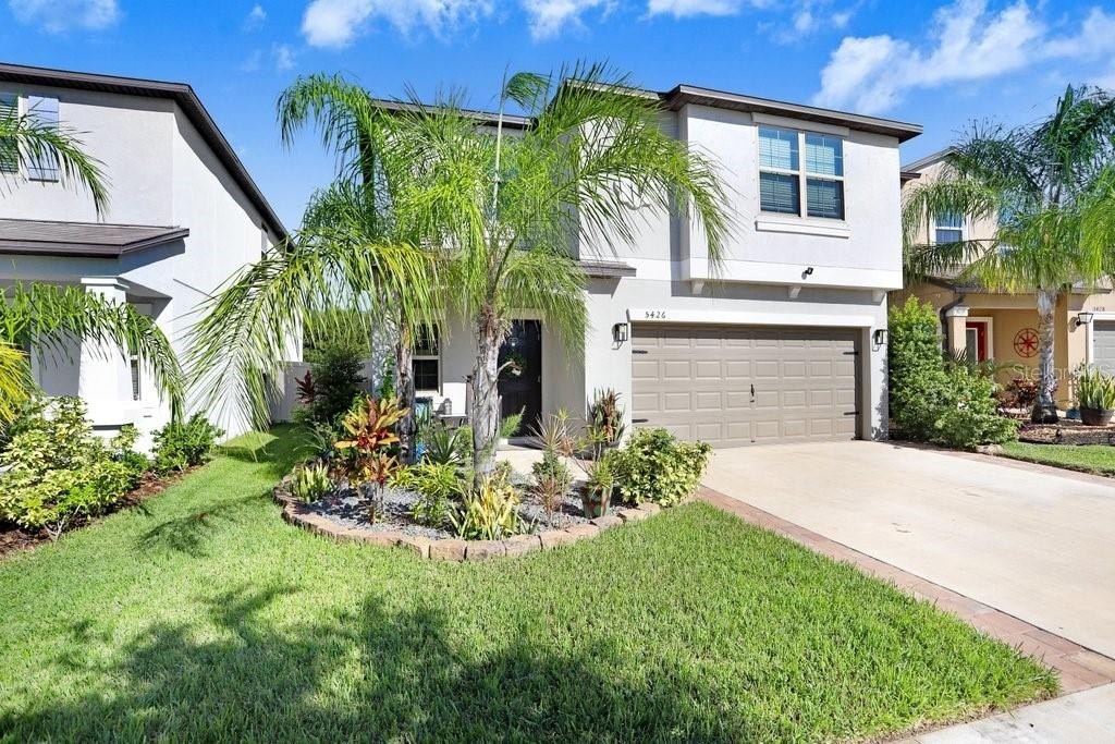 Fall in love with this beautifully upgraded, move-in ready 5 bedroom home, perfectly positioned on a scenic conservation lot in the charming Lynwood community. From the moment you arrive, you'll be drawn in by the beautiful curb appeal, custom landscaping, widened driveway accented with pavers, and decorative stone curbing, creating an unforgettable first impression. A cheery front porch draws you in, and you'll quickly notice the newer luxury vinyl plank staircase off the entryway, just upgraded in February 2023. The open-concept layout offers a natural flow between the spacious kitchen, dining area, and expansive gathering room, creating a light-filled and inviting space that’s perfect for both everyday living and effortless entertaining. The upgraded kitchen impresses with its finishes, thoughtfully designed with sleek granite countertops, stainless steel appliances, a natural gas range and stainless hood, large island with seating, and an eye-catching ceramic tile backsplash (installed in 2023) that extends both above and between the cabinets and across the island, adding both beauty and dimension. A large corner pantry offers plenty of storage, and just beyond, a glass door leads to the spacious screen-enclosed, covered lanai, where you can enjoy stunning views of a nature preserve, offering the perfect escape and total privacy. The fully fenced, eastern-facing backyard is a private oasis of its own, offering breathtaking sunrise views and plenty of space for outdoor fun, gardening, or simply relaxing in the Florida sunshine. Upstairs you will find all 5 bedrooms with NEWER (2023) luxury vinyl plank floors, including your serene Primary Retreat, a true sanctuary with a massive walk-in closet and en-suite bathroom, complete with extended vanity with dual sinks, linen closet, and a walk-in shower with both a rainfall and removable handheld showerhead. The secondary bedrooms share a full bath with dual sinks, while the spacious loft offers a versatile bonus room area - perfect for an additional living space, home theater, playroom, or home gym. A convenient half bath is located downstairs just off the foyer, perfect for visitors, and the upgraded laundry room, with added shelving, washer, and gas dryer included, offers easy access to the garage and additional functionality just off the kitchen. A gas tankless water heater provides endless hot water on demand, ensuring comfort and convenience for both cooking and showers. You’ll love being part of the charming Lynwood community, where residents enjoy access to top-tier amenities including a sparkling resort-style pool, clubhouse, playground, and beautifully maintained green spaces, all with low HOA fees. Perfectly located just minutes from shopping, dining, and outdoor recreation, you’re also a short drive from Apollo Beach Nature Preserve and beach access, with quick and easy access to US-301, US-41, I-75, and the Selmon Expressway for easy commuting. St. Joseph's Hospital South and the new Moffitt Southshore Cancer Center are just short drive away, and MacDill AFB is an easy commute.