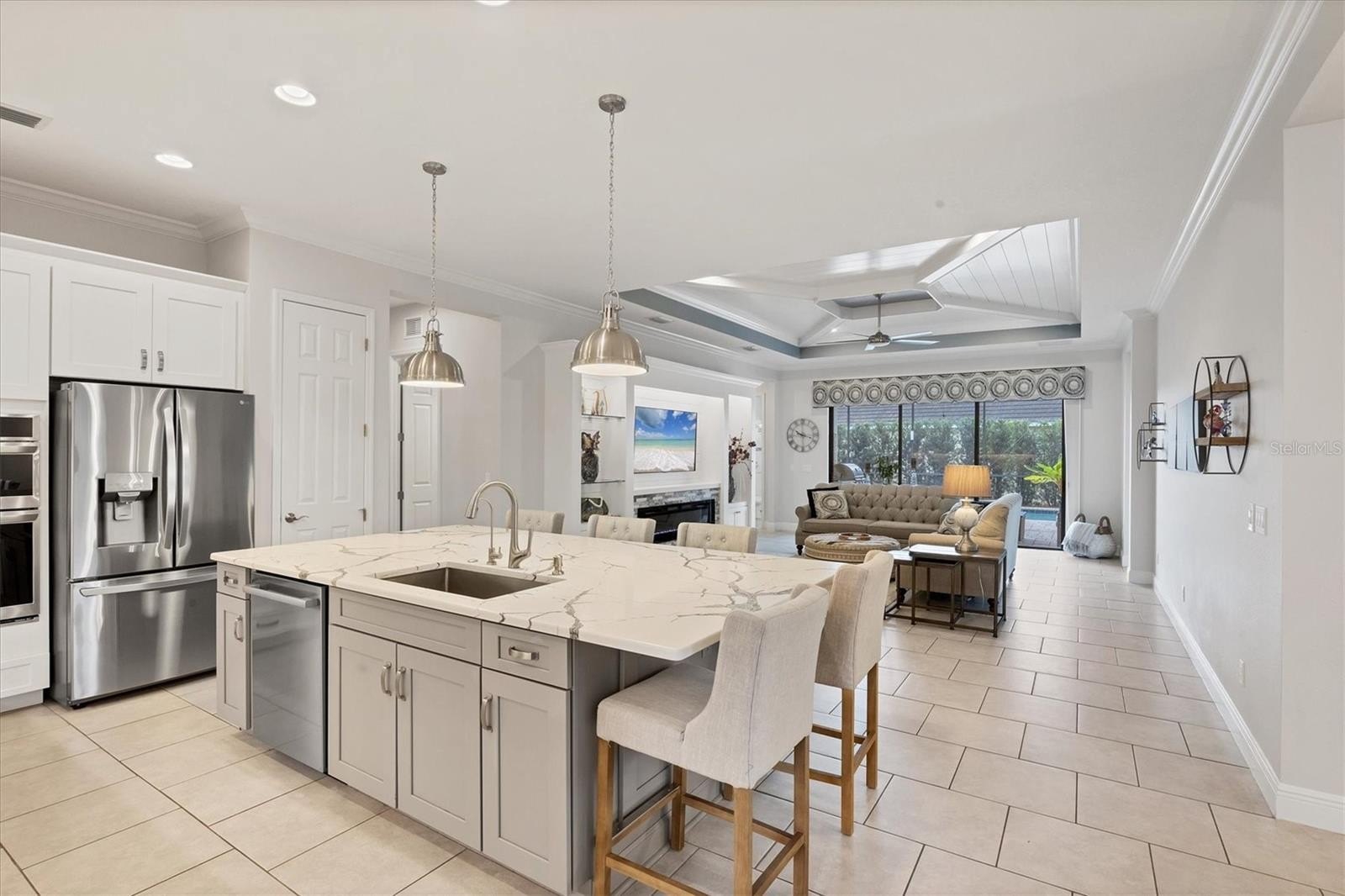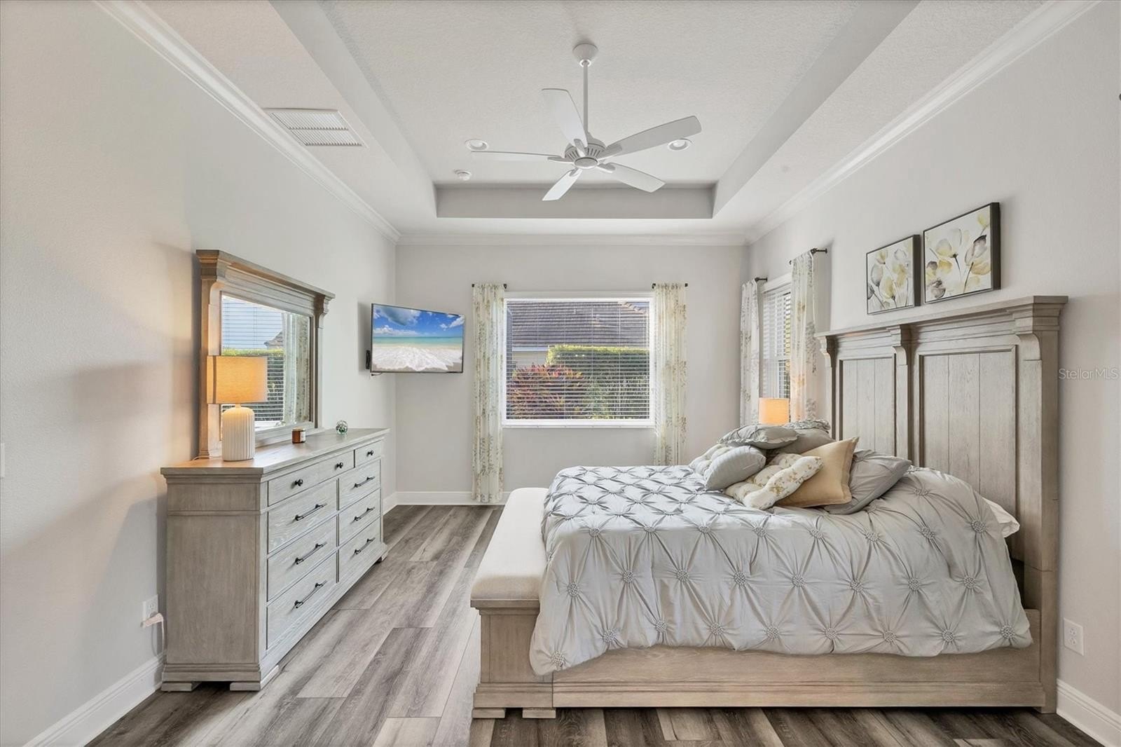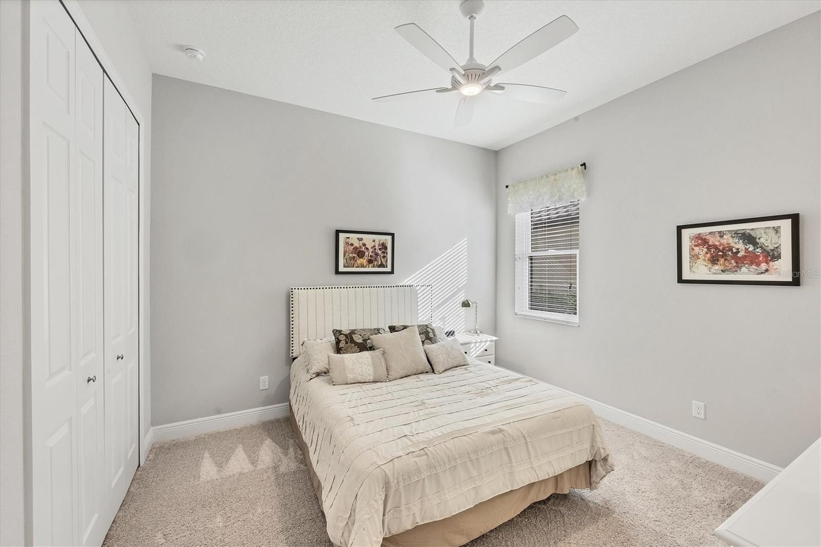 Looking for that one special home that has it all WITH a reduced CDD fee? This model like ''Daybreak'' floorplan saltwater POOL home with its 4 bedrooms, 3 full bathrooms, 3-car garage on a large corner lot is a RARE one! Your new home is built strong and safe with its HURRICANE IMPACT rated windows, motorized HURRICANE shade in lanai, cinder block construction, concrete tile roof and is located in the desirable ''X'' floodzone! Rest assured you won't be left using flashlights with this 24Kw standby ''Generac'' generator! If the power goes out, you can run the entire home, it's business as usual for you! With fresh exterior paint AND professionally installed landscaping, this home looks as good outside as it does inside. Throughout the interior you can expect freshly painted walls, 8' foot doors, 5 1/4 deco baseboards, ceiling fans throughout, luxury crown molding, designer light fixtures, multiple trey ceilings, custom built-ins, tasteful shiplap accent walls and much more! Your new kitchen has brand new stainless steel appliances, reverse osmosis water filtration at the sink, a one off oversized island, custom herringbone laid porcelain backsplash, premium shakor cabinetry with slide out shelving and LED lighting underneath that complements the high level quartz countertops, 5 burner countertop gas stove with stainless exhaust hood, built-in convection oven and microwave! This amazing family room has a designer trey ceiling and custom built in entertainment center with an electric fireplace which makes this centerpoint of the home the perfect interior gathering area. The primary bedroom has a tray ceiling, two walk-in closets and the en-suite bath has a large walk-in shower, custom stone accent wall, dual sinks with high level quartz counter and linen closet. On the other wing of the home there are two bedrooms that share a full bath. There is a separate laundry room with a utility sink, built-in folding table and upper cabinets. The 4th bedroom is on its own with a full bathroom that also functions as a CABANA POOL BATHROOM leading outside to the lanai. Step outside to the paver rich lanai and you will adore the custom ceiling, professionally installed lighting on the pool cage, premium kitchenette with stainless steel gas grill with matching fridge and saltwater pool! You can also expect incredible landscaping which gives ideal privacy and a great view of the water. Indigo is an active community that features a full time on-site manager as well as a full time activities director that manages an extensive calendar of activities for all ages. A-Rated Gullett Elementary AND Mona Jain Middle School are right outside our gates too! You can also expect sidewalks on both sides of the street, resort style heated community pool/spa at the clubhouse where you will find 5 cabanas with an abundance of seating, 4 pickleball courts, 2 bocce ball courts, 24-hour exercise gym, meeting room/banquet room and playground. Indigo is not only a community that takes care of all ground maintenance to include mowing, fertilizing, irrigation and shrubs but is right around the corner to a plethora of dining, banking, entertainment, public transportation and MORE!