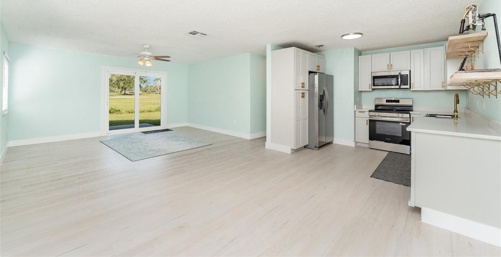 SUPER CUTE, and freshly updated, this South Lakeland CUTIE has so much to offer. Close to Polk Parkway, schools, houses of worship, shopping, and more, this location is prime! Upon your arrival, you will be welcomed by crisp curb appeal. Upon entry the thoughtfully updated 3/2/2 residence with office is perfect for a starter OR a downsize! Floors are soothing whitewashed laminate, durable and water resistant. Freshly painted and sporting new baseboards and fixtures, you will be delighted from room to room as natural light infiltrates each room, illuminating the potential! The kitchen, dining, and living area are open, complimenting function. NEW stainless appliance suite, kitchen cabinetry, quartz countertops, and detailed finishes are sure to delight the new homeowner! A functional office/den is made private by French Doors, making study or home office manageable. Primary bedroom with it's own bath make for a spacious retreat at days' end. Outdoors, the back yard is fenced to secure pets and the back yard view is an open field of green space, making sunsets breathtaking from the comfort of your living room. Oversized 2 car garage is sporting a refresh, too! COME CHECK IT OUT! You'll be glad you did! Roof 2017. Electrical Panel Updated 2019. ALL exterior siding and paint 2025. New sliding glass door 2025. Water Heater 2024. Septic pumped 2025.
