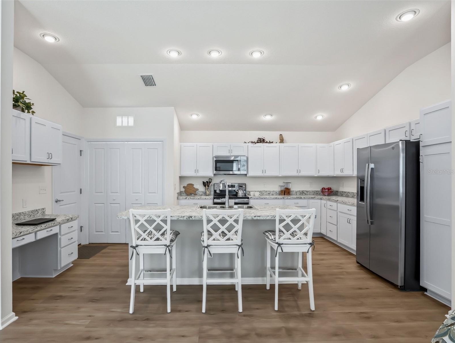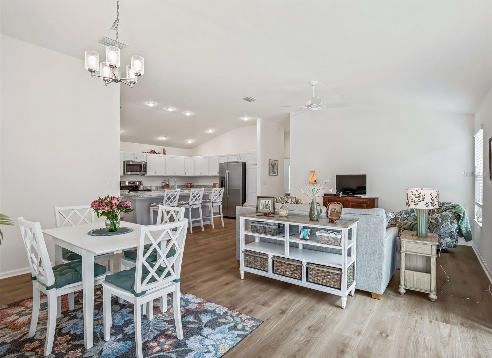 Furnished Opal Model Patio Villa in The Village of DeLuna – Clara Villas! Enjoy effortless living in this beautifully furnished, move-in-ready Patio Villa with a bright Florida flair. Features include a whole-house NOVA water filtration system, natural gas, seamless waterproof, wide-plank wood laminate flooring, stainless-steel appliances, and rain gutters. The guest room features a custom crafting desk, and the primary bathroom boasts a glass-enclosed shower and a huge walk-in closet! Perfect as a full-time home or seasonal retreat! EGO battery-powered mower included for easy lawn maintenance. Make your appointment today! Let’s get you living the dream in The Villages!