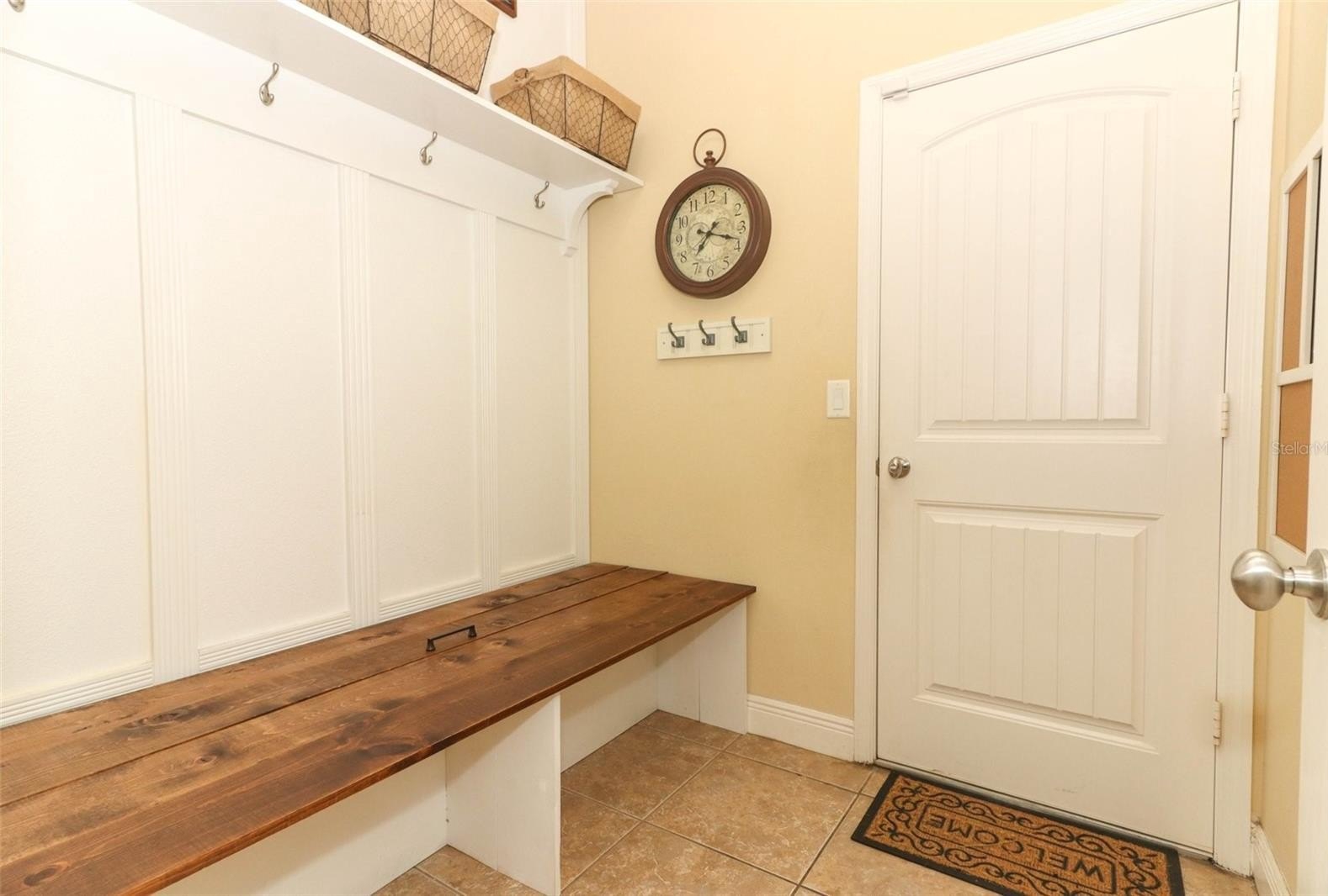 hands in its customized 'mud room' - perfect for backpacks, shoes, purses, coats, keys and