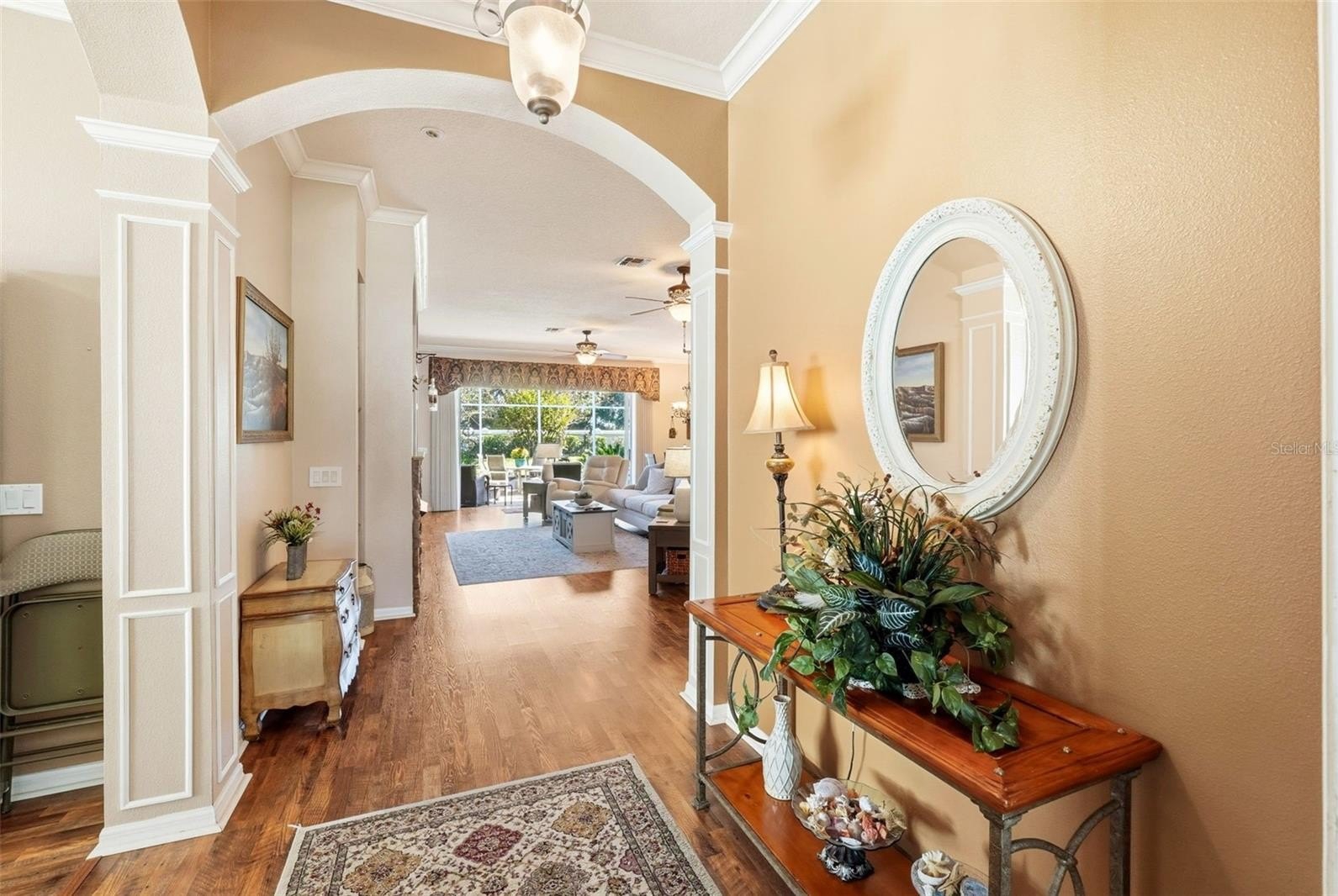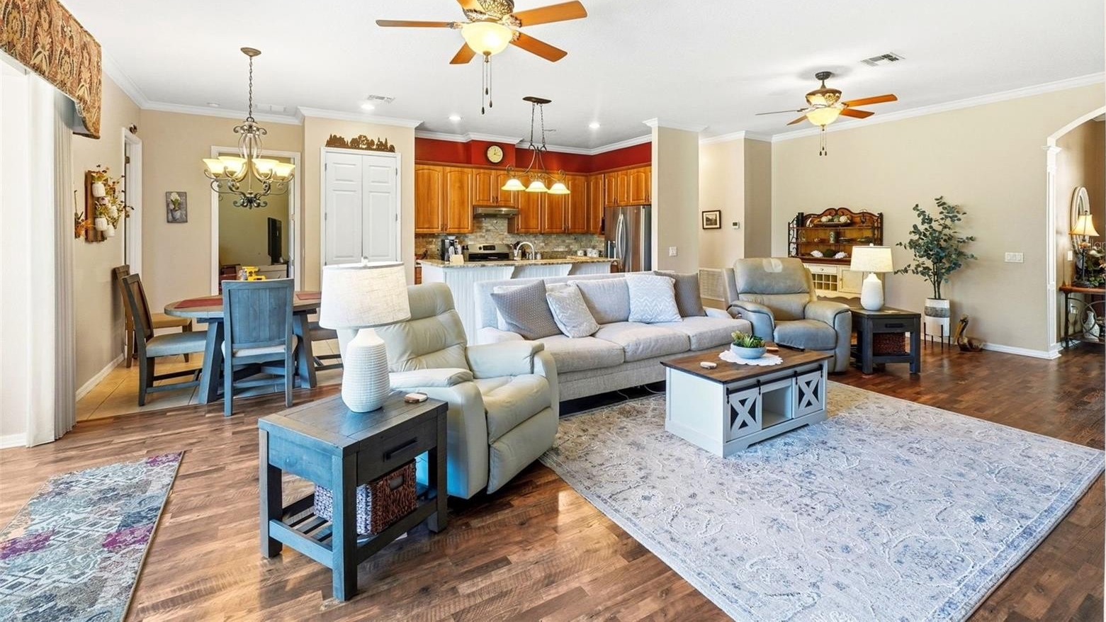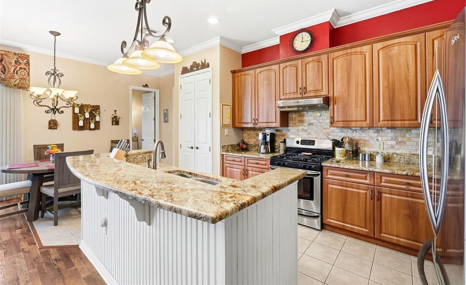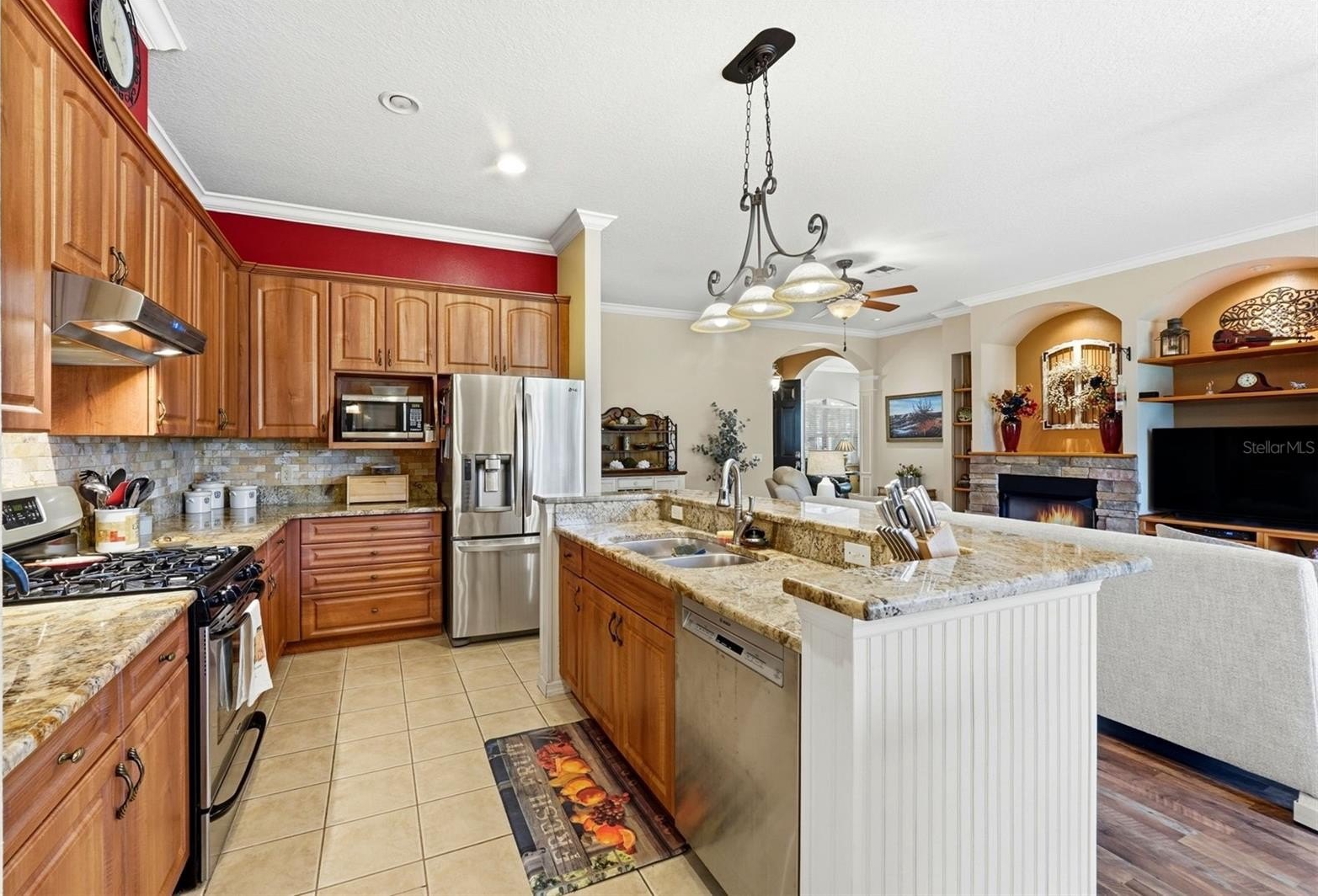 Welcome to this beautifully maintained home in the sought-after 24 hour guard-gated community of Summit Greens! This thoughtfully designed residence features a flexible split-bedroom floorplan with a bonus third guest room (no closet) and a host of desirable upgrades. Enjoy gas utilities including a newer water heater (3 years), gas range, and a cozy gas fireplace. The home also offers granite countertops, stainless steel appliances, and crown molding for an elegant touch. Relax or entertain in the expanded, 29' x 18, screen-enclosed patio with no rear neighbors for added privacy. The expanded garage provides space for a workshop or golf cart, while the widened driveway offers extra parking. With laminate and tile flooring throughout the main living areas and carpeted bedrooms, this home combines comfort and style. Located in one of Clermont’s premier 55+ communities, residents of Summit Greens enjoy resort-style amenities including a clubhouse, fitness center, pool, tennis courts (including clay), pickelball courts, walking trails, and vibrant social activities—all just minutes from shopping, dining, and major highways.