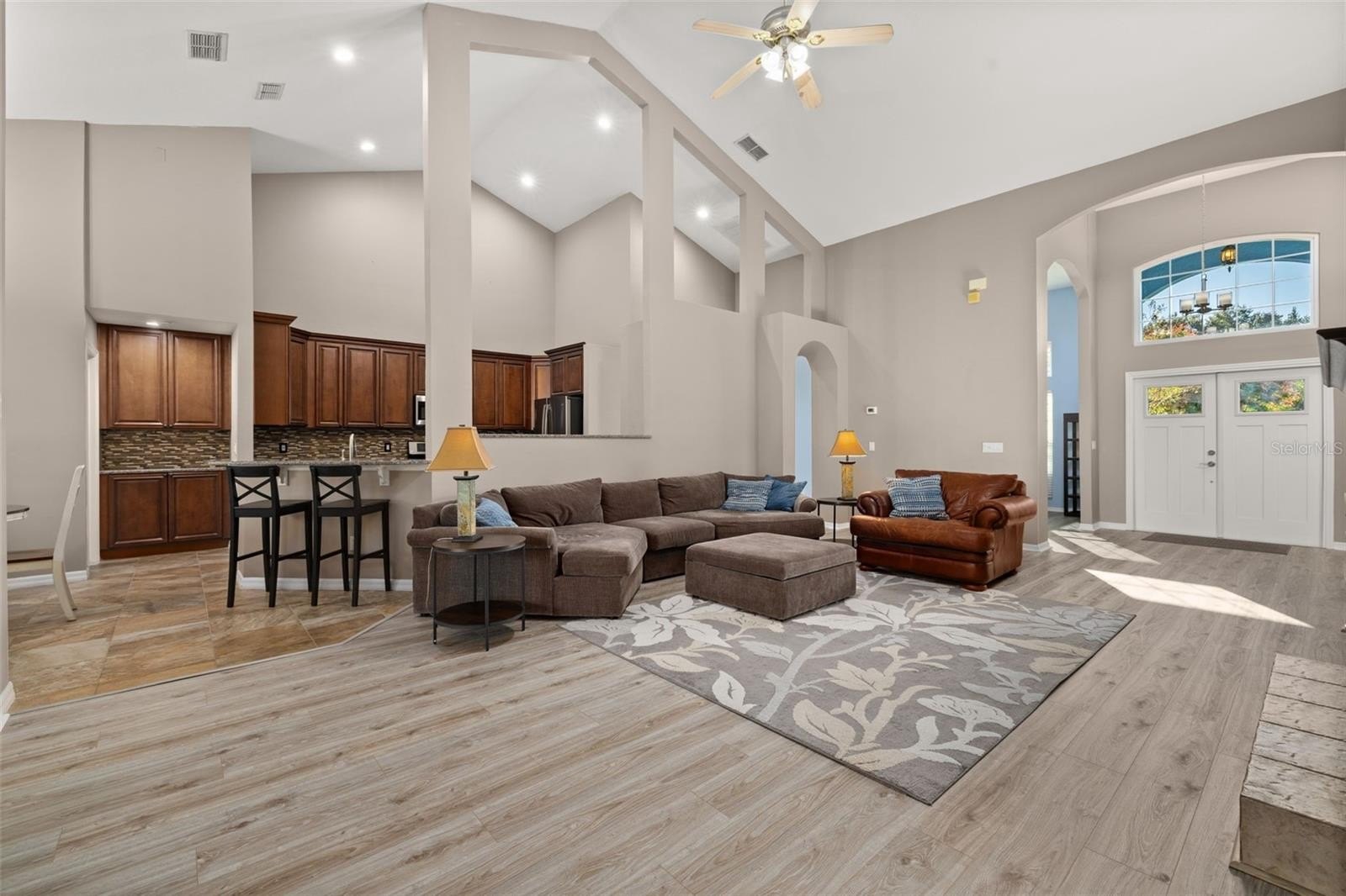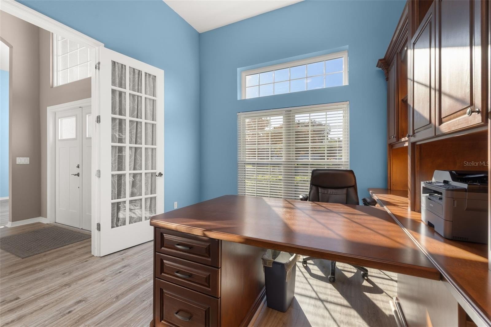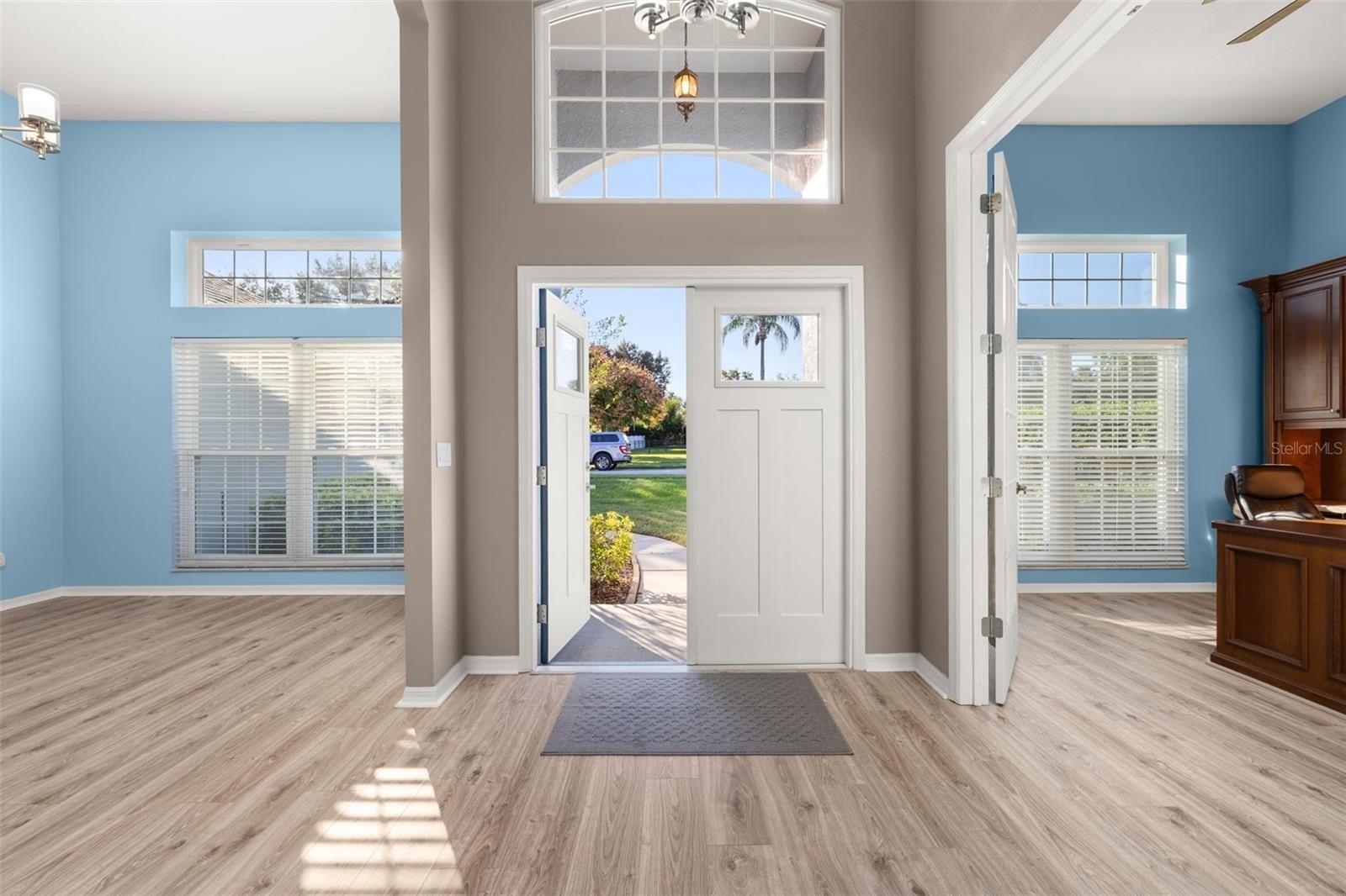 Beautifully Updated Pool Home on Over Half an Acre! Built in 1999 with many updates throughout, this 4-bedroom home with a large upstairs bonus room (with its own en suite bath) offers 2,926 sq. ft. of stylish, move-in-ready living space. The main level features bright open living areas, an executive office, and a formal dining room all with brand new luxury vinyl plank flooring — all with soaring ceilings that create an impressive sense of space. The split-bedroom layout places the primary suite apart from the other 3 bedrooms, each offering generous closet space. Enjoy the propane-heated pool and spa, plus a convenient half bath by the pool for outdoor entertaining. Major updates include new windows and doors (2023, lifetime warranty), roof (2014), HVAC (2022), water heater (2022), new flooring and exterior paint (2025). Nestled on just over half an acre in a premier Seminole County school district, with a low HOA of only $700/year.