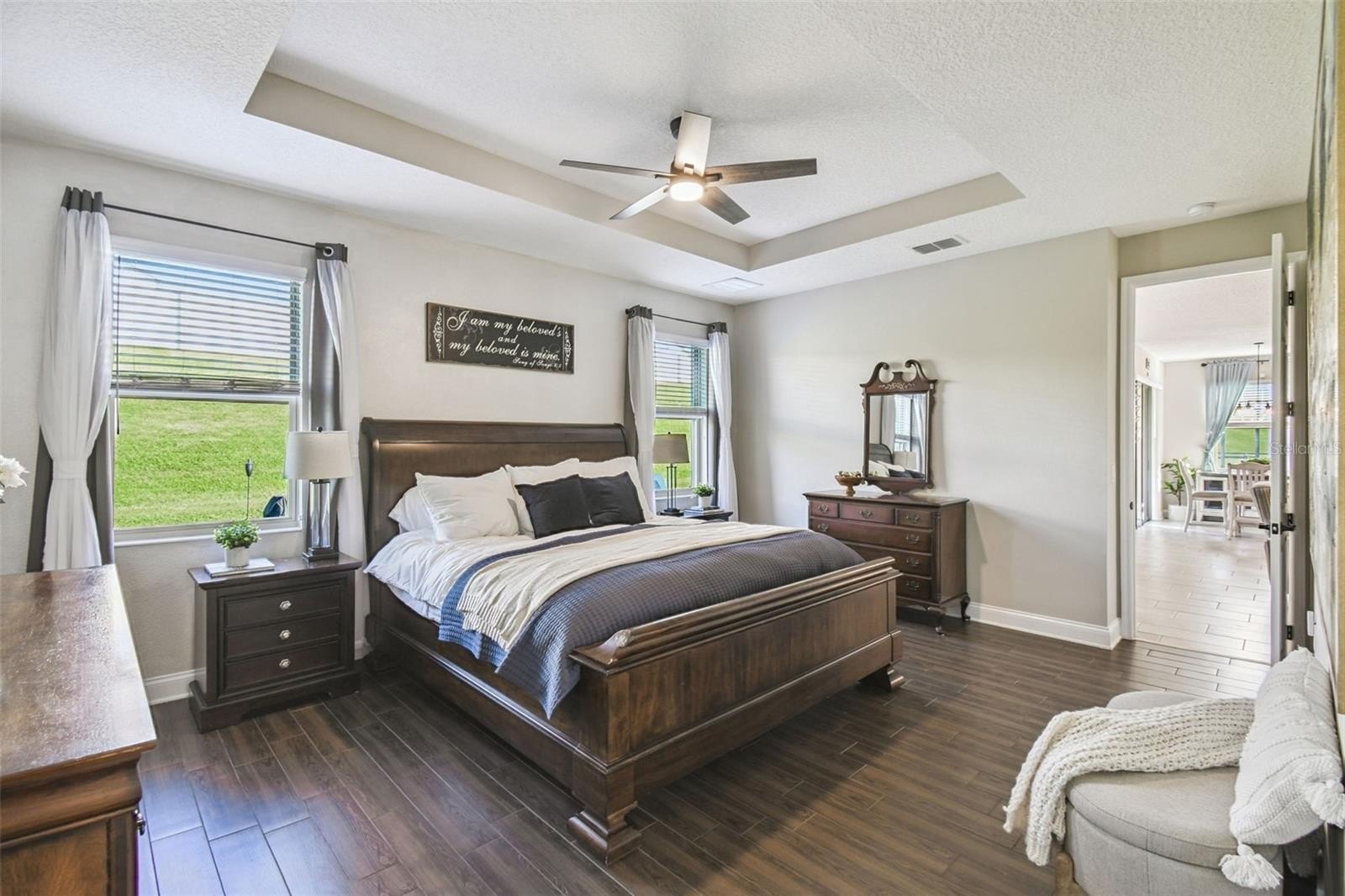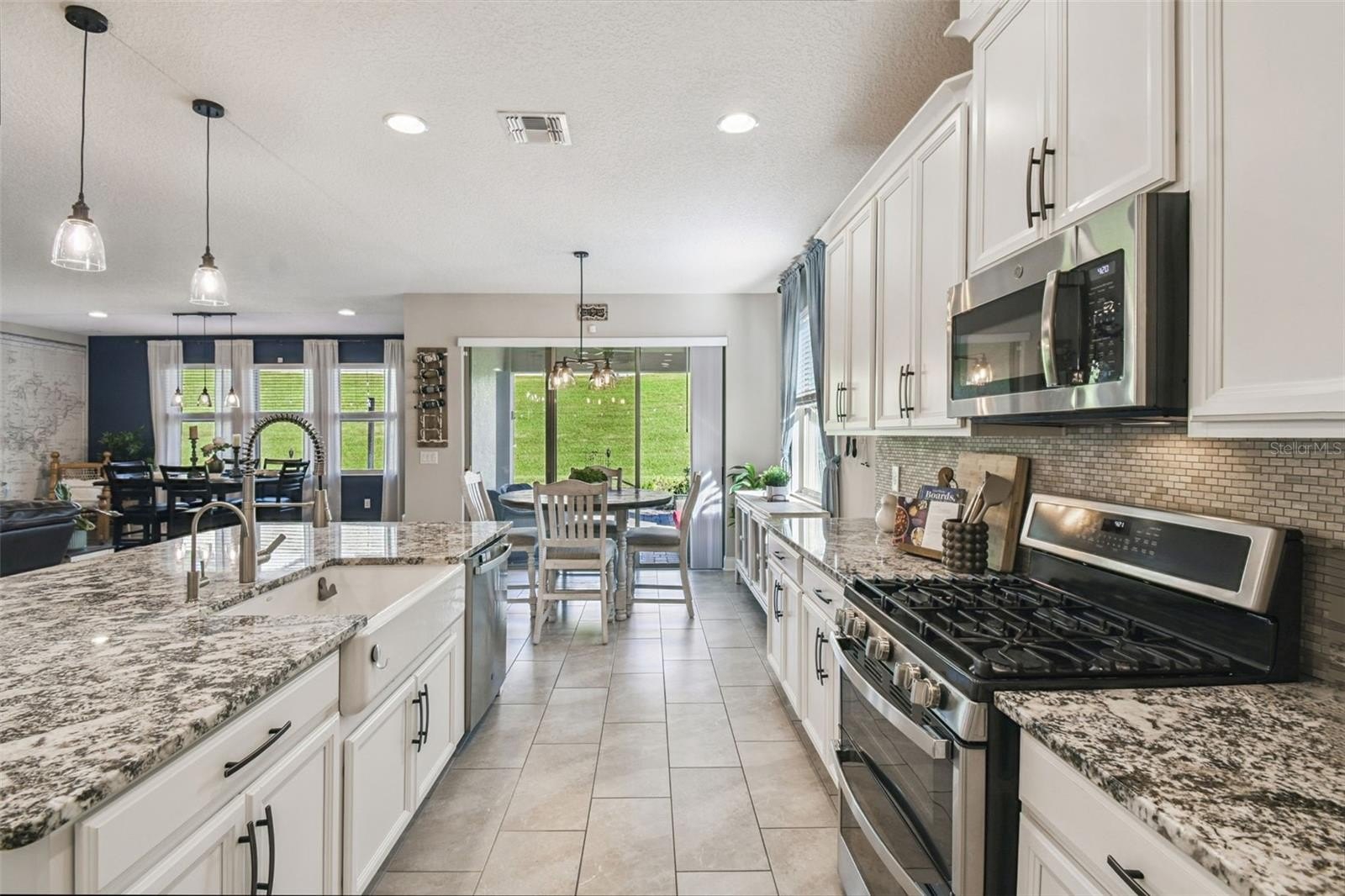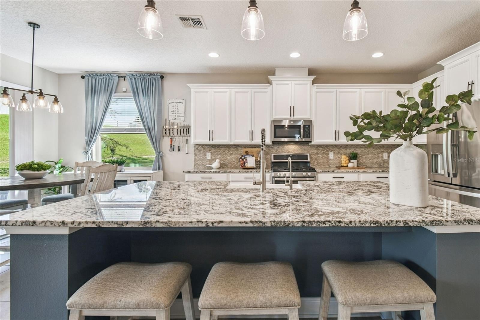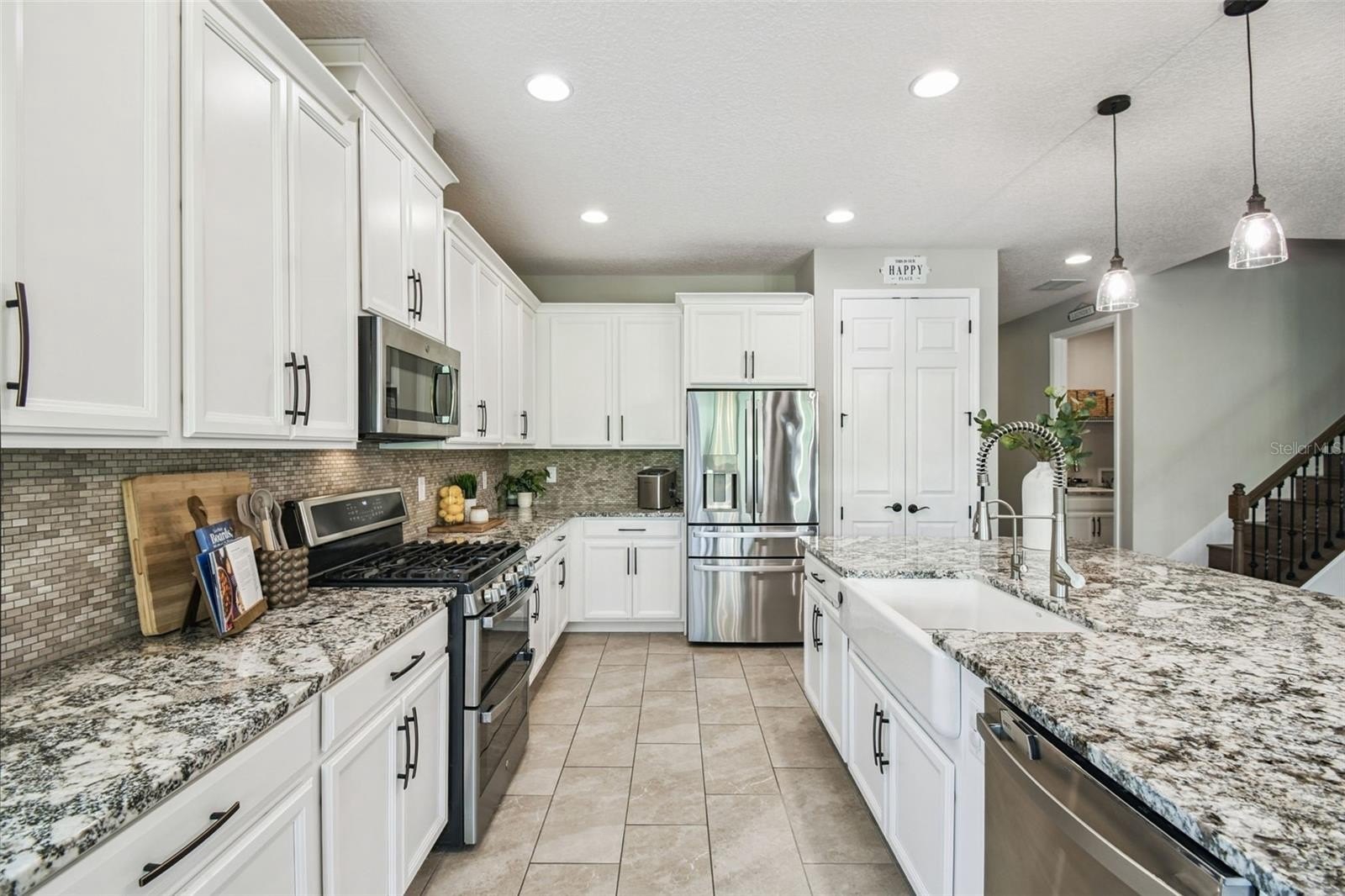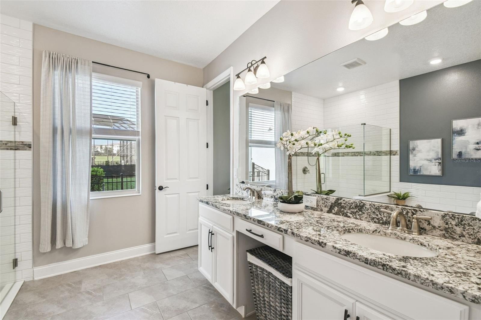 Welcome to this beautifully maintained 4-bedroom, 4-bath home in the gated community of Vistas at Waters Edge. Built in 2020, this 2,958 sq. ft. residence offers an open-concept layout designed for modern living. The gourmet kitchen features 42” cabinets, granite countertops, a farmhouse sink, stainless steel GE appliances, and a large island overlooking the great room. The spacious owner’s suite includes a tray ceiling, oversized walk-in closet, and a luxurious bath with dual sinks, a soaking tub, and separate shower. Additional features include 8’ interior doors, upgraded baseboards, and a covered lanai perfect for relaxing or entertaining. Conveniently located near shopping, dining, parks, and major highways. Move-in ready and shows like new!