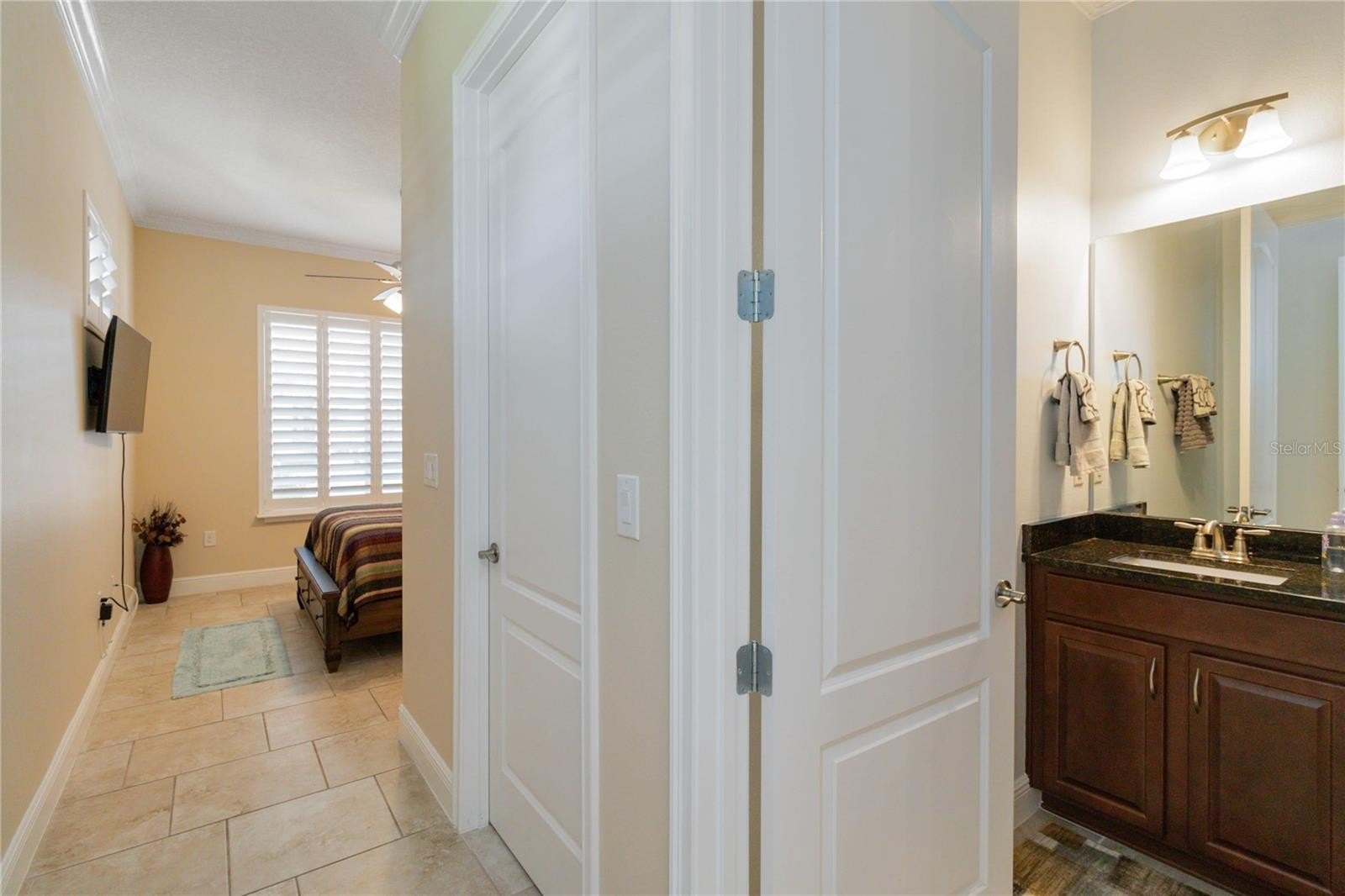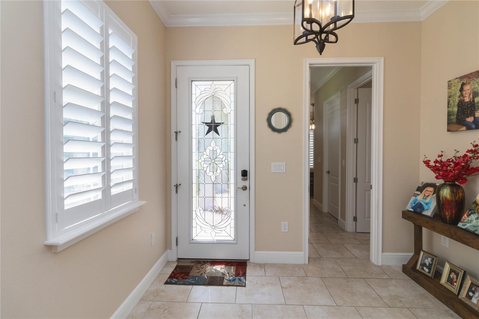 Spectacular Marco floor plan located in the well sought after Del Webb Twin Lakes 55+ Active lifestyle community. This property has so much to offer. 3 Bedrooms and 3 Full baths, you could use the 2nd bedroom as a second master bedroom suite. Den/Study/office area. Step inside to the 10' Ceiling with the flexible layout and neutral coloring custom paint and plantation shutters throughout for gatherings. Ceramic Tile throughout home. Kitchen is well equipped with 42" upgraded cabinets with under cabinet lighting, custom glass tile backsplash, large custom farm sink, pendant lights, and a very large granite island that accommodates setting for a quick bite. large walk-in pantry with custom glass door, Stainless steel appliances, Gourmet Custom kitchen hood fan, Microwave and oven combination. Separate drop zone area with cabinets and granite countertops. Living room features large glass sliding doors that open all the way for entertaining in the screened in Lanai. Backyard with the upgraded landscaping package for privacy. Master bedroom with tray ceiling, ceiling fan. Large walk-in closet. Frameless shower doors to master luxurious two separate shower heads & Custom quartz vanity. Amenities include a Resort style pool and Lap Pool and 3rd pool on the carriage house side, 20,000 square foot Clubhouse, State of the art Fitness Center, Tennis Courts, Putting Green, Walking Trails, Pickle Ball Court, Fishing, and Pontoon Boats and Jon boat to use on Live Oak Lake! The community has many active and socializing activities to keep you VERY busy!! All of this in a GREAT gated community located in Central Florida close to Lake Nona Medical City, Orlando, Orlando International Airport, Theme Parks, and Brevard Beaches! Do not delay making your appointment today for your private tour.