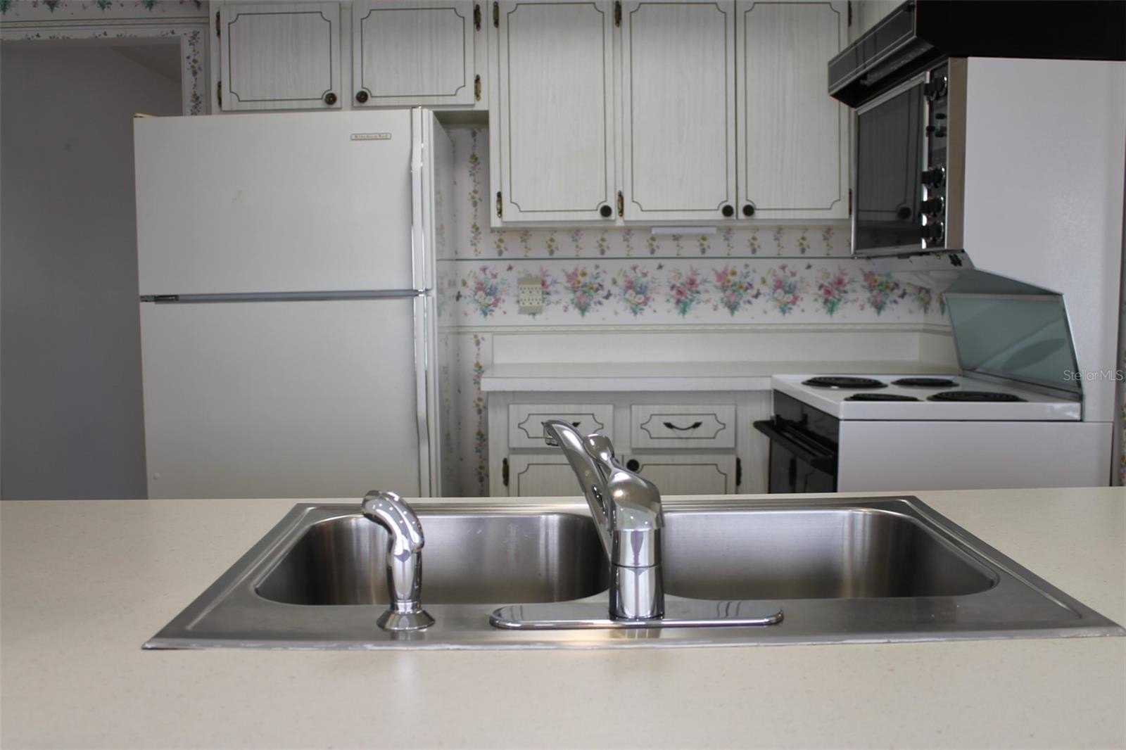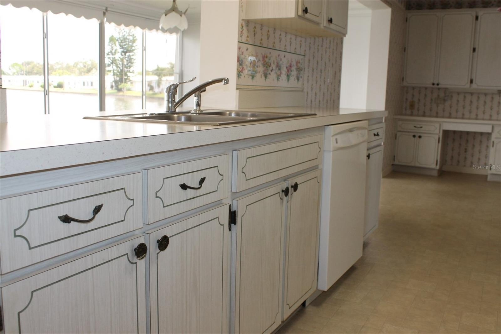 Waterfront with Wildlife & Wondrous Sunrise Views! Tropical Landscaping enhances this Eden Model Home with its 2-Car Garage, Front Porch, Back Patio with Lake Frontage! (The lake is lowered by the association when needed!) Also appealing is the Perfect Location as it’s directly across the street from the Mainlands Unit 1 Clubhouse and Heated Pool! This Particular Model has Two Very Large Bedrooms, the primary bedroom has a large Walk-In Closet (4’8x7’11) & an ensuite bathroom with a shower, while the Guest Bedroom’s Closet is the Full Length of a Wall. The domed ceiling had been removed from the kitchen which has a pass thru to the Florida room showcasing gorgeous lake & sunrise views! On the other side of the Kitchen is a spacious eat-in area along with extra cabinets and a convenient doorway to the laundry area and highly desirable 2-car garage. The 3-ton Carrier AC was installed in 2015 and has a warranty with Liberty that is transferable. The Flat Roof over the Florida room & the interior of the Florida rm had been replaced/repaired after it had sustained wind damage from Hurricane Milton. Updates include: the Living room & Dining area has SHAW Laminate Flooring; the front door; Water Heater 12/2020, Water Softener leased by Gulf Coast Culligan & the fiberglass garage side door, this year. With a low maintenance fee of just $500, you'll enjoy the convenience of having water, trash, sewer, 2 cable boxes, internet, and exterior home maintenance covered by the association. Yes, that includes the roof and lawn maintenance too!