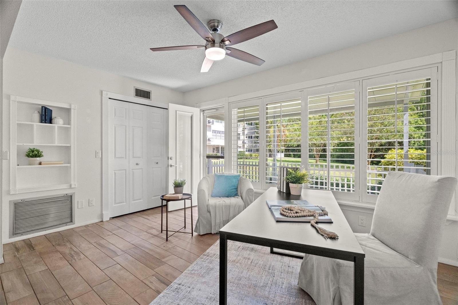 As a first-floor unit, convenience is built right in—no stairs, no elevators, just easy access every day. Step inside to find durable new flooring and hurricane-rated windows that keep the space bright, quiet, and efficient. The thoughtful floor plan includes a versatile bonus room—perfect for a home office, cozy reading nook, or creative space to make your own.