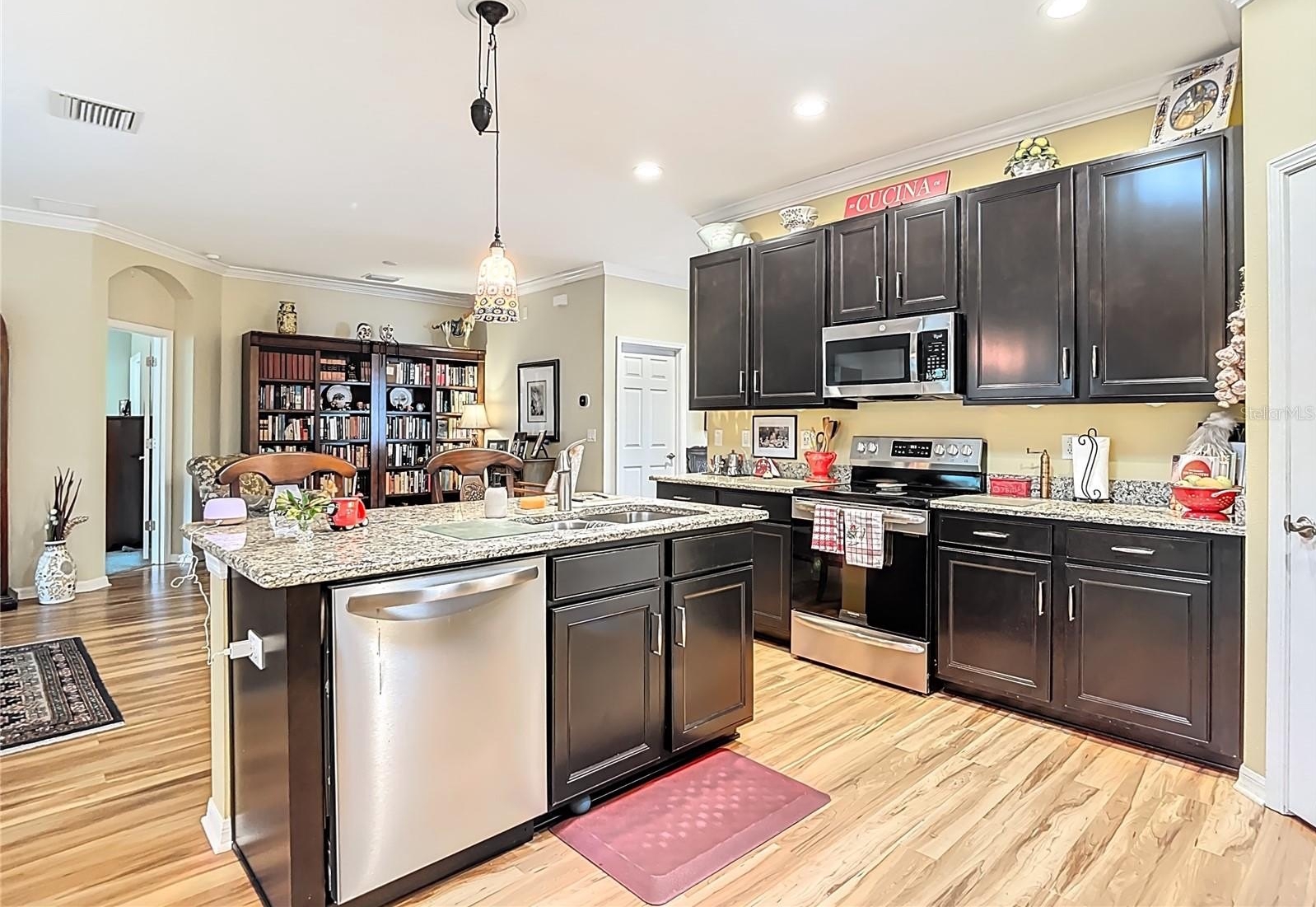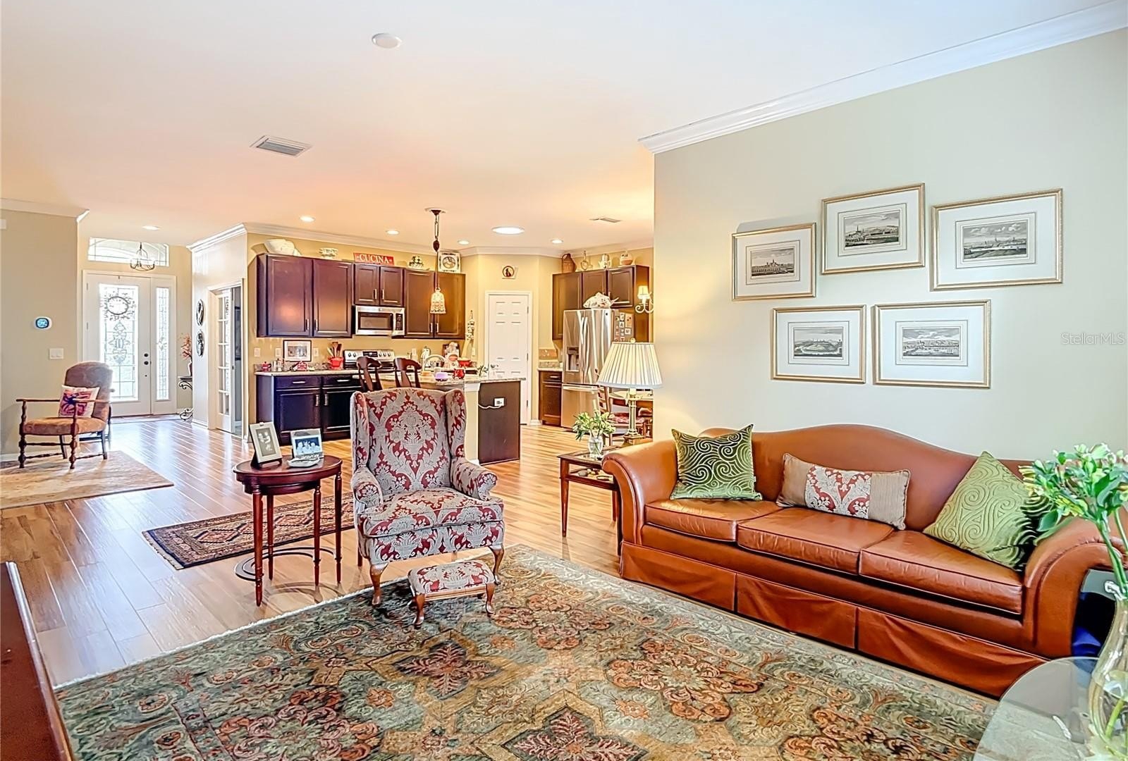 Highly Desirable Tampa Bay Golf and Tennis Club Spectacular Home! This immaculate better than new KHovnanian home has so much to offer! Loaded with upgrades. You are Immediately welcomed into a dramatic entry w/Soaring 10' Ceilings and 18" ceramic tile entry and all wet areas Upgraded laminated wood flooring in all living area and plush carpet in the bedrooms. Walk into your light and bright lovely Livingroom & dining room combination great for entertaining. Preparing meals will be a snap in your spacious kitchen w/Loads of raised panel cabinetry with crown molding kitchen island and high-end granite counter tops with stainless-steel appliances. The master suite has tray ceiling with sumptuous master bath with a luxurious walk-in shower with His and her granite vanities making this the home most people would dream about. Home also features. Crown molding throughout the living area, paver driveway with concrete curbing all around the home, painted garage floor, double pane windows throughout, and washer dryer stay. Bookshelf's in dinning and den do not convey also light fixture over kitchen island. Not to mention, an unparalleled country-club lifestyle with a 15,000 square-foot clubhouse just renovated to the tune of $1.5 million, two championship golf courses, a full workout facility, library, ballroom, restaurant, bar and much more! You won't want to forget about the two dog parks, tennis and pickle ball courts, shuffleboard, and a variety of activities such as card groups, dance lessons, painting lessons and more. Don't miss out on this peaceful and tranquil home. Schedule your tour today!