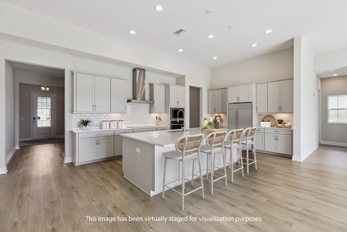 This Islamorada I is ready for move-in, designed to welcome you with an immediate sense of grand, open space! The home opens with an extended foyer that guides you into a grand room featuring soaring twelve-foot ceilings, which enhances the open feel. Picture yourself entertaining or simply relaxing in this magnificent setting, seamlessly connected to a gourmet island kitchen and charming café area. From here, the transition to your outdoor lanai is effortless, inviting you to enjoy the fresh air and create lasting memories. The heart of this home, the kitchen, boasts exquisite Sonoma Harbor cabinets and elegant Frost Whte MSI Quartz countertops, offering both beautiful design and durable practicality. Throughout the main living areas, you'll find resilient Polaris Plus LVP flooring, providing a perfect blend of style and practicality for everyday life. The Islamorada I is designed with versatility in mind. Beyond the impressive main living spaces, you'll discover generously sized secondary bedrooms, providing comfortable havens for family or guests. A dedicated formal dining and den space offers incredible flexibility, transforming easily into an intimate dinner setting, a productive home office, or whatever your lifestyle demands, while the oversized laundry room adds a touch of everyday convenience. Escape to your luxurious owner’s retreat, a private sanctuary designed for ultimate relaxation. This private haven features an expansive walk-in closet, ensuring ample storage for your wardrobe. The spa-like en-suite bathroom is complete with double vanities and a spacious walk-in shower, providing a serene escape at the end of each day. Listing Price amount for this Pending Sale includes Design and Structural Options.