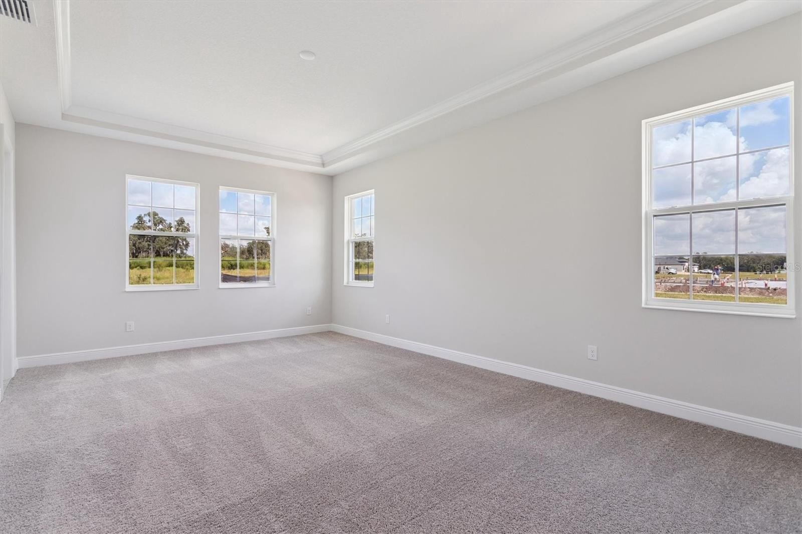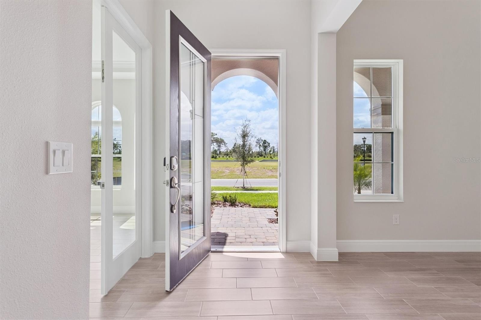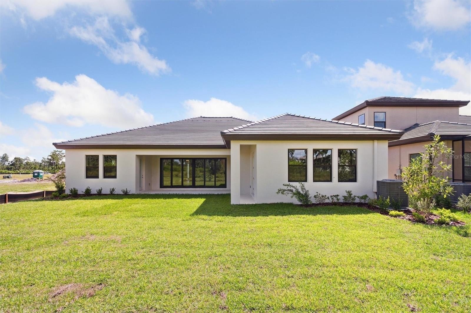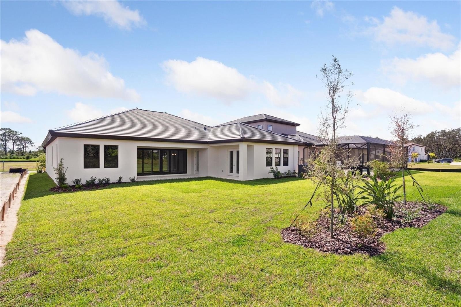 This Key Largo I is Move-In Ready! The Key Largo I offers the perfect blend of traditional Florida charm and modern luxury this fall. This home isn't just a place to live; it's an exemplary open-style plan meticulously crafted to maximize comfort and practicality where you need it most. The moment you arrive, you will immediately notice the impressive sense of scale. The foyer, formal dining room, grand room, and spectacular kitchen all feature soaring twelve-foot ceilings, cultivating a breathtakingly expansive and inviting atmosphere. This magnificent open floorplan is finished with a curated selection of premium materials designed for lasting quality and timeless style, including elegant Sonoma Linen cabinets, sleek Frost Whte MSI Quartz countertops, and beautiful Vestige Daybreak Birch Tile flooring. Your private owner's retreat, accessed through a distinguished double-door entry, creates a serene sanctuary complete with two spacious walk-in closets and a luxurious private bath, a true haven for relaxation. Beyond your private space, the Key Largo I enhances convenience with an oversized laundry room, offers seamless indoor-outdoor enjoyment on a large covered lanai, and includes an upgraded bonus room to perfectly suit your unique lifestyle needs. The Key Largo I delivers an exceptional living experience, expertly blending classic elegance with thoughtful functionality for the discerning homeowner.
