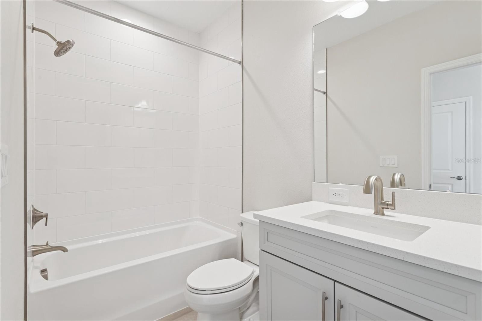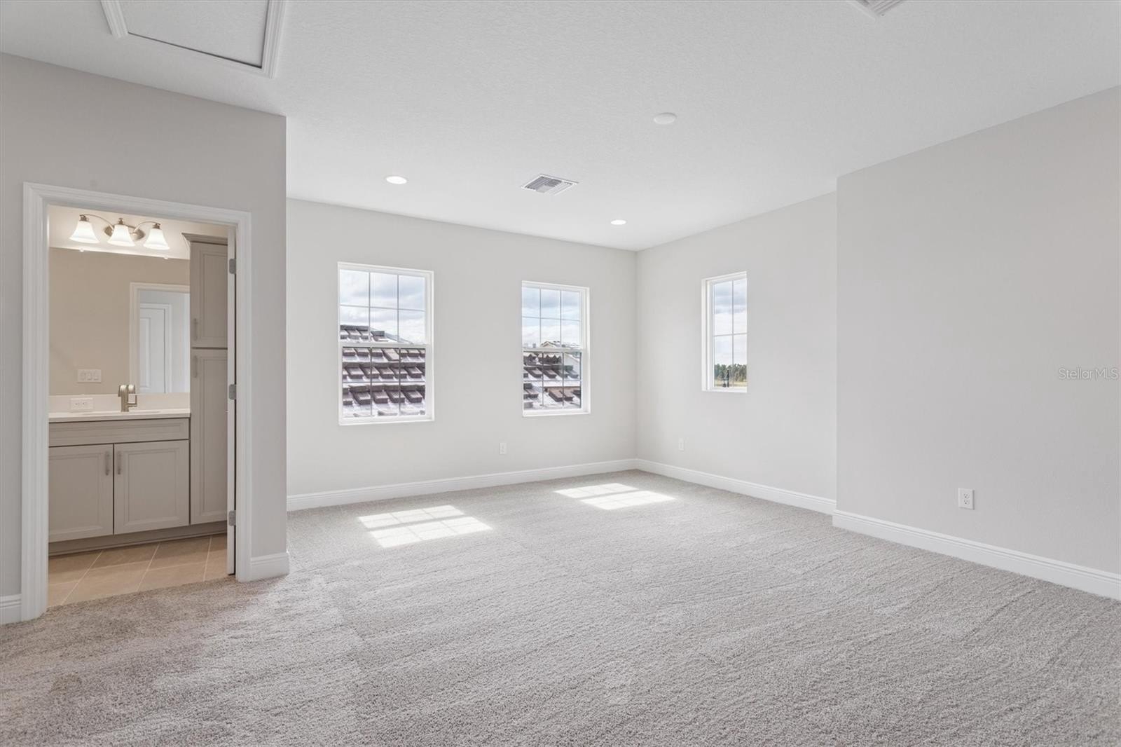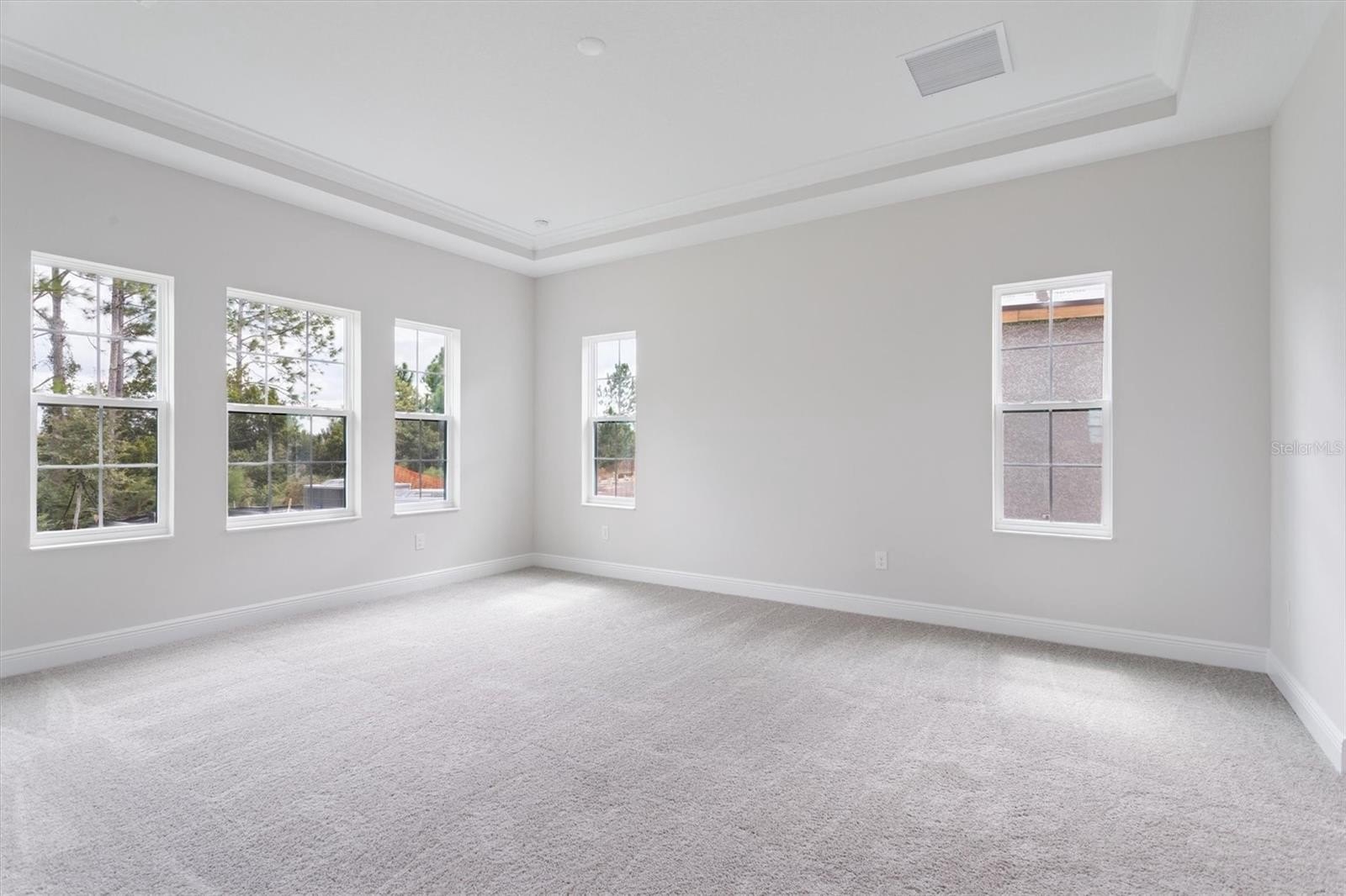 Imagine settling into your brand new home right away—the Biscayne II is waiting for you. This two story beauty offers a layout that just makes sense, giving you wide open spaces for gathering while keeping the bedrooms private and quiet. The heart of the home is absolutely stunning: a seamlessly combined grand room, incredible kitchen, and casual dining area, all flowing perfectly out to a large covered lanai for easy outdoor living. You'll love the airy, expansive feeling created by the impressive 12 foot ceilings that soar over the foyer, grand room, and kitchen. When it's time to relax, the owner's retreat is a true sanctuary, boasting huge walk in closets and a luxurious master bath complete with a soothing garden tub and walk in shower. Upstairs, you'll find even more flexibility with a versatile bonus room, a fifth bedroom, and an additional bathroom. Plus, this home is loaded with incredible style, featuring premium selections like Maddox Premium Finish cabinets, sleek New Calacatta MSI Quartz countertops, and warm Nutmeg Luxury Vinyl Plank flooring. And because it comes with built in upgrades like an optional den, an enhanced owner's closet, and an extended lanai, you're getting a home that's truly maximized for comfort and a welcoming atmosphere. This is more than a house; it's the perfect place to start your next chapter. Listing Price amount for this Pending Sale includes Design and Structural Options.
