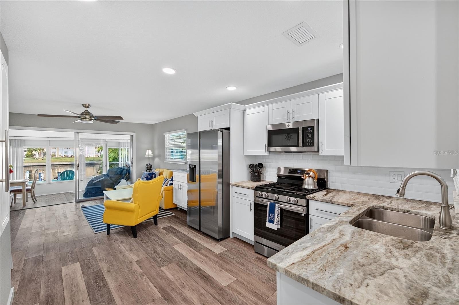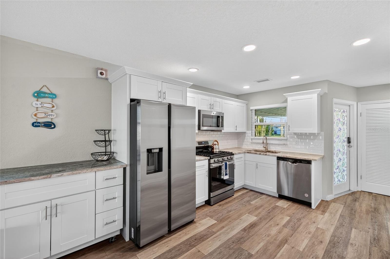 UNOBSTRUCTED GULF ACCESS. PRIVATE BEACH. CUTE AS A BUTTON. Welcome to Gulf Harbors! This quaint home packs a punch with a TON OF NATURAL LIGHT. 2 bedrooms, 1 bathroom, inside laundry room PLUS a 200 sq. ft. enclosed Florida room with vinyl windows installed in 2021. This additional entertainment space is NOT included in the “living” square footage. The home sits on a wide, deep saltwater canal that leads directly out to the open Gulf waters. Kitchen upgrades include granite counters, Samsung stainless steel appliances, cabinets with crown molding, subway tiled backsplash, double sink with detachable faucet, four-burner GAS RANGE with griddle and integrated oven, built-in spice cabinets, and an EXTENDED kitchen area with extra cabinetry and granite countertop. Updated bathroom features new tile, toilet, vanity, mirror, cabinets, tiled wall in tub and shower area. Items Worthy of Mention; HVAC system (2024), water heater (2025), luxury vinyl flooring throughout (2025), flat roof (2025), NEWLY installed brick paved patio, 220 sq. ft. of under-roof carport coverage with an ELONGATED driveway, FULLY FENCED, brick paved pathway on both sides of the home, shed, FLOATING DOCK, doors replaced, upgraded ceiling fans with remotes, (2) hallway closets, keyless entry, hard wired carbon monoxide detectors, smoke alarms, video camera doorbell, CONCRETE BLOCK home, and washer & dryer. The residents only PRIVATE BEACH access is truly heaven on earth. Residents enjoy their own personal beach which includes bathrooms, covered picnic pavilions and built-in charcoal grills which are ideal for gatherings, cookouts, and enjoying the Gulf views & water. The private beach membership fees are $200.00 per year. The Gulf Harbors Civic Association offers an inviting SOCIAL LIFESTYLE filled with activities with an optional membership of $125.00 per year which includes access to (2) private additional boat ramps. They have a variety of clubs including the Gulf Winds Sailing Club, Women’s Cub, Fishing Club, Breakfast Club, Card Club, and the Green Thumb Garden Club along with annual events, exercise classes and fun neighborhood traditions such as community BLOCK PARTIES, golf cart parades, BINGO NIGHT, paint parties, and seasonal yard sales that bring neighbors together. You can literally WALK to the clubhouse within a few steps. And, just minutes down the road is downtown New Port Richey which adds even more to enjoy with events like the weekly Tasty Tuesdays Organic Market, the Downtown Friday Bazaar held every fourth Friday, the annual Cotee River Bike Fest, and the iconic Chasco Fiesta. Gulf Harbors offers a pet-friendly park with walking and jogging paths. Enjoy this home year-round and embrace the vacation lifestyle all year long, use it for seasonal getaways, or keep it as a smart investment property. Bring yourself, bring your boat & bring your SPF. Listed BELOW appraised value as of Sept. 2025. VIDEO & FLOORPLAN on file upon request.